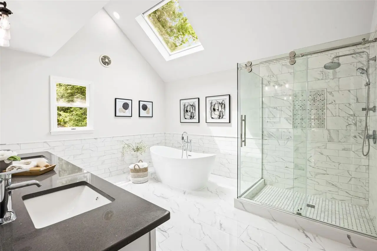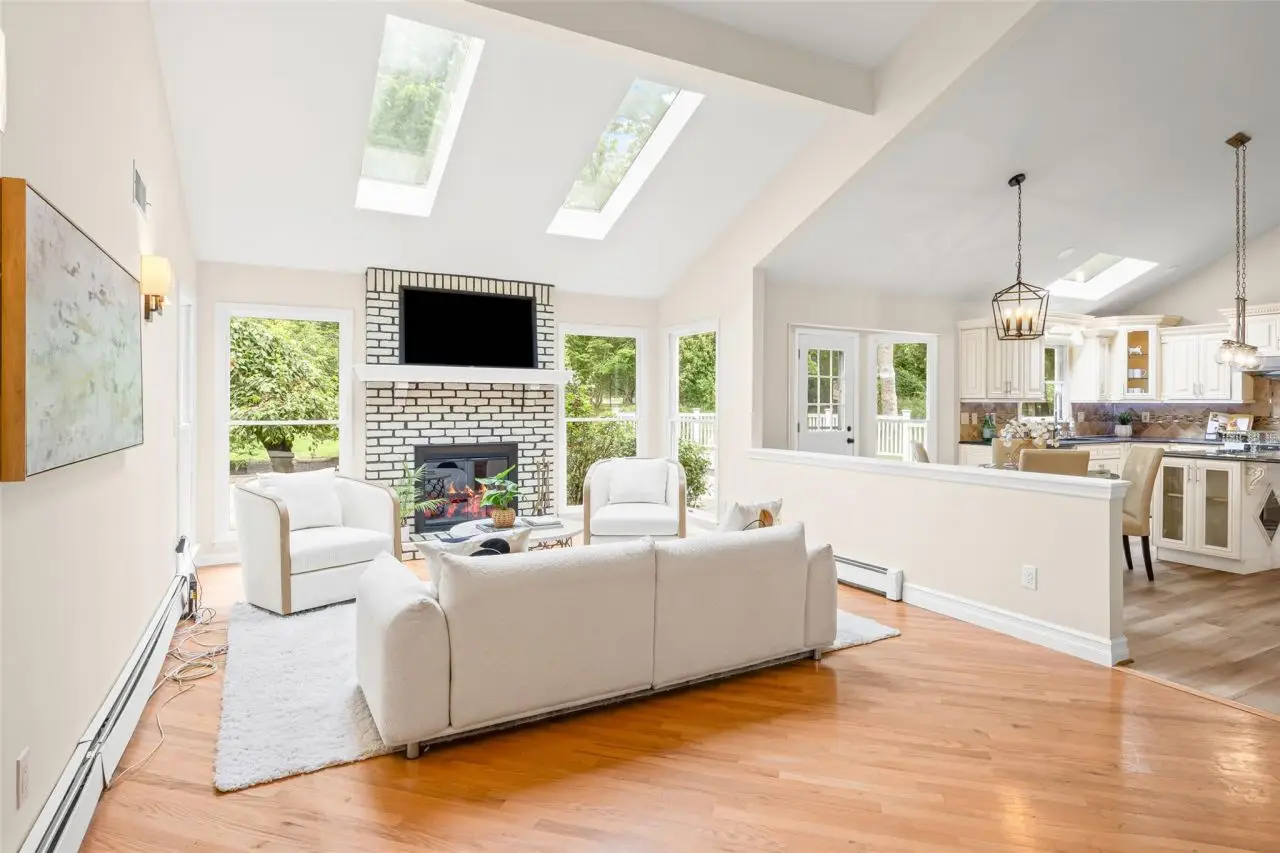 Nestled on a private one+ acre lot and framed by mature landscaping and water views 2 White Pine Lane offers an incomparable lifestyle opportunity in a peaceful setting surrounded by natural beauty. The picturesque waterside community of Poquott offers residents beautiful stretches of private beaches and the prime location of this home ( steps away from Van Brunt Manor Beach) makes it the perfect location to enjoy your own private beachfront retreat and numerous waterfront recreational activities. This well-built Farm Ranch has great curb appeal that is highlighted by colorful plantings, a covered front porch, side entry Carraige style garage doors, white picket fence and cultured stone accents. A spacious & gracious entrance foyer welcomes you to the sun filled interior and the unique floor plan offers a great combination of formal and open concept living spaces. There is also a main level primary suite with a brand new & beautifully renovated spa like bathroom, a large updated eat in kitchen overlooking backyard where you can enjoy relaxing by the pool or entertaining family and friends on the lovely decking overlooking park like grounds. Additional amenities include oak flooring, recessed lighting family room with fireplace, updated bathrooms, second story loft area overlooking main living space and more! Additional Village amenities include deep water mooring and beach rights, private security, community dock, tennis, parks, playgrounds and year-round community events. Enjoy sunny days at the beach and magical sunsets at the dock, a priceless lifestyle opportunity awaits you!