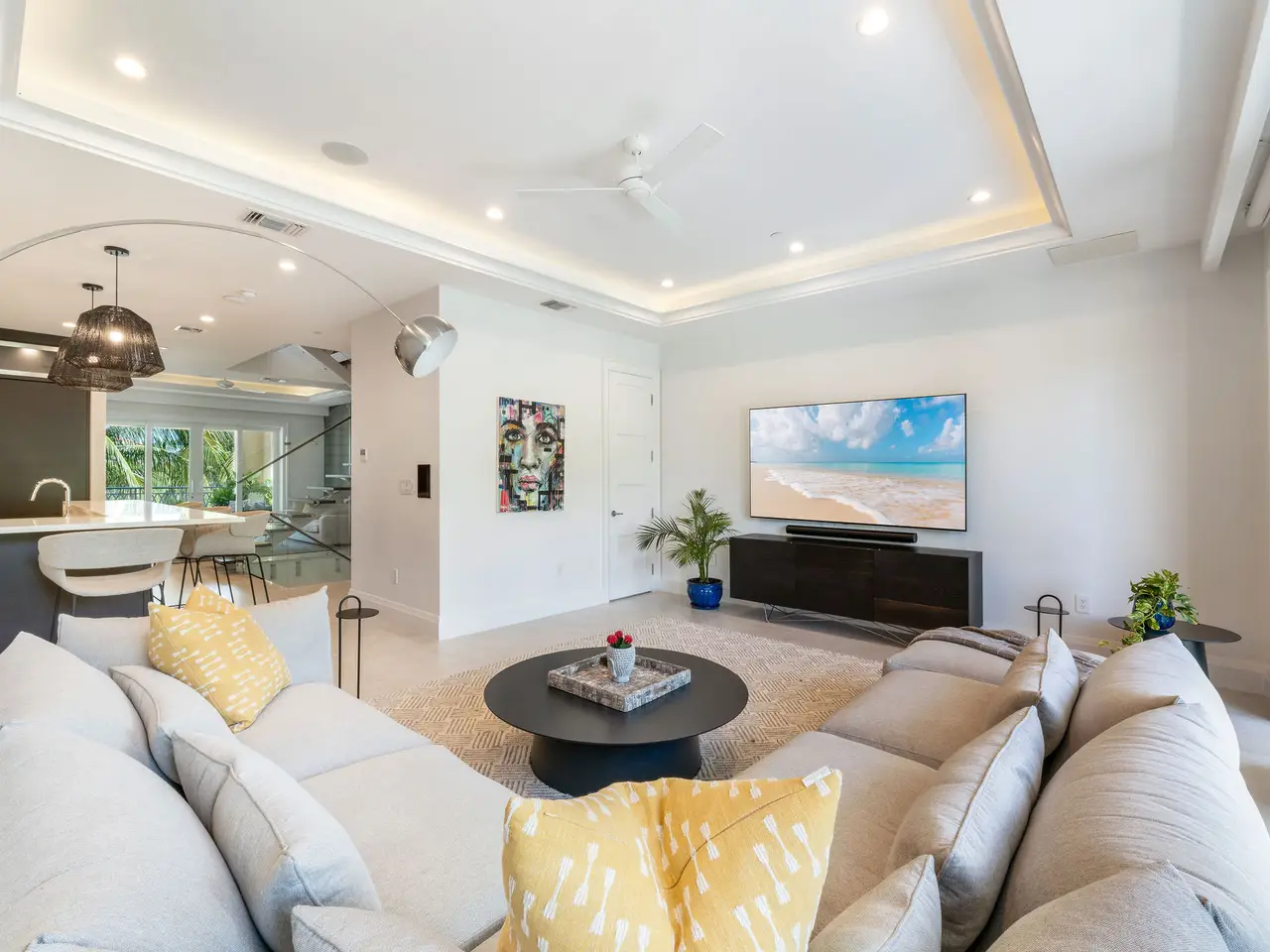 Experience the pinnacle of luxury living at The Residences of Stone Island, an exclusive haven within one of Cayman's most coveted waterfront communities. Perfectly positioned on a private island peninsula within the prestigious Yacht Club, this exceptional residence blends seclusion, sophistication, and world-class amenities amidst lush gardens, offering unparalleled privacy within a distinguished gated enclave. Indulge in the resort-style elegance of this remarkable community, where an expansive infinity pool invites relaxation, a scenic waterfront boardwalk offers serene strolls along the shoreline, and a shaded children's playground is artfully nestled amid tropical greenery. At the heart of this vibrant community lies the state-of-the-art owners' lounge, a sophisticated space featuring a fully equipped fitness center, a wine cellar, a 15-seat private cinema, and a dedicated children's club. This elegant venue is ideal for hosting private events, enjoying social gatherings, or simply unwinding with the daily coffee and tea service, ensuring a lifestyle of unrivaled convenience and comfort, all safeguarded by 24-hour security. This residence spans three generously proportioned floors, offering one of the largest floor plans in the community, with over 4,800 square feet of impeccably designed, open-concept living space. Natural light floods the interiors through expansive windows, further enhanced by vaulted ceilings in the upper bedrooms, creating a bright, airy ambiance that speaks to the very essence of refined island living. The upper-level primary suite serves as a private sanctuary, complete with tranquil canal views and an expansive en-suite bathroom reminiscent of a personal spa. The main level's botanical-rich balcony provides a serene retreat, perfect for relaxing while enjoying the picturesque canal vistas. Complemented by a secluded plunge pool set among lush greenery, it offers a private oasis ideal for unwinding in privacy. This residence has been meticulously upgraded to the highest standards, featuring full home automation, bespoke designer furnishings and lighting, premium fixtures, and custom closets, ensuring every detail reflects an uncompromising commitment to quality. A private 2-car garage further enhances the convenience of this exceptional home. Ideally located just minutes from Seven Mile Beach and the Yacht Club Marina, with its array of exquisite dining and entertainment options, The Residences of Stone Island offer unparalleled access to the best of Grand Cayman. For those who cherish the boating lifestyle, a private dock option provides direct access to the North Sound, including iconic destinations such as Stingray City and Rum Point. Blending sophisticated design with Caribbean charm, The Residences of Stone Island present an exquisite and refined way of life, offering a truly unparalleled experience in one of the world's most sought-after locations.