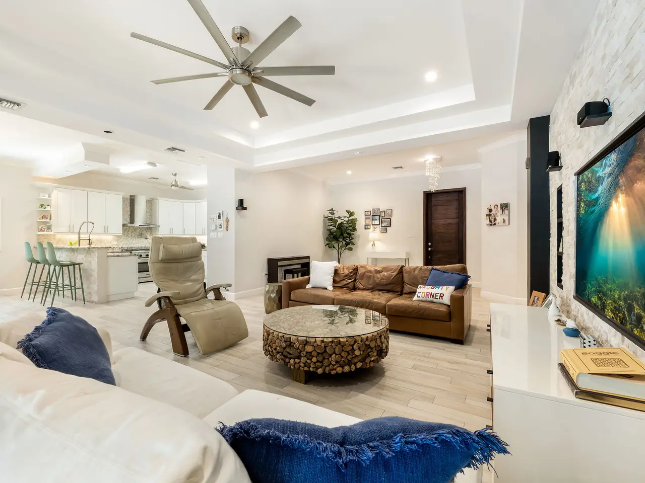 Set on a fully fenced 0.32-acre parcel in the prestigious Highlands community, this 5-bedroom, 4-bathroom residence embodies modern family living—combining privacy, comfort, and convenience in one exceptional property.Thoughtfully designed across two levels, the home offers a sense of openness and connection throughout. High-end finishes and quality craftsmanship are evident in every detail, while spacious living areas and a grand kitchen make entertaining effortless. A laundry room, enclosed 2-car garage, and two driveways add everyday practicality.Blending indoor and outdoor living beautifully, the rear doors open to a large garden filled with beautiful palm trees, a sparkling pool, and a functional outdoor kitchen—creating a private oasis perfect for gatherings or quiet weekends at home.Ideally positioned just minutes from Seven Mile Beach and the Seven Mile Corridor, yet tucked away in a peaceful neighborhood setting, this home offers the rare balance of convenience and tranquility.A true family home that delivers space, style, and sanctuary—without compromise.