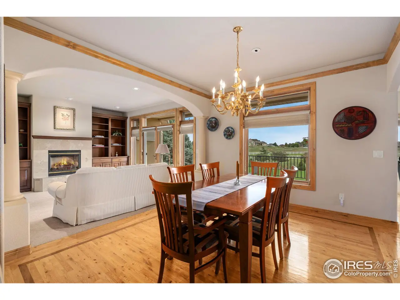 Located on over 5 acres in a gated cul-de-sac community, this property combines quality craftsmanship with superb maintenance. The home features hardwood inlay floors, arched doorways, solid wood doors, and abundant windows showcasing mountain and plains views. The finished walkout basement includes a wet bar, fireplace, and flexible living space, and the primary bathroom offers heated floors for comfort. Outdoor living is maximized with multiple patios and decks, mature landscaping with LED night lighting, and HOA-provided irrigation for crops or pasture. The barn is equipped with box stalls and a heated shop, ideal for equestrian or hobby use, with direct access to community horse trails, arena, and pedestrian paths. The garage is fully finished with epoxy flooring, and the home's condition reflects true pride of ownership-single owner, meticulously maintained, and move-in ready. Every window captures a view, creating a bright and inviting interior throughout. This property offers an exceptional combination of amenities: equestrian facilities, gated privacy, extensive outdoor spaces, and a residence that lives like a show home. A rare opportunity in a premier setting.