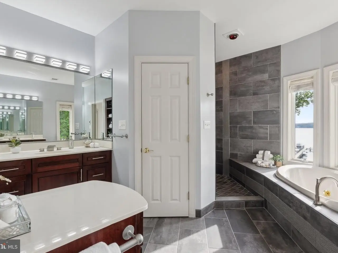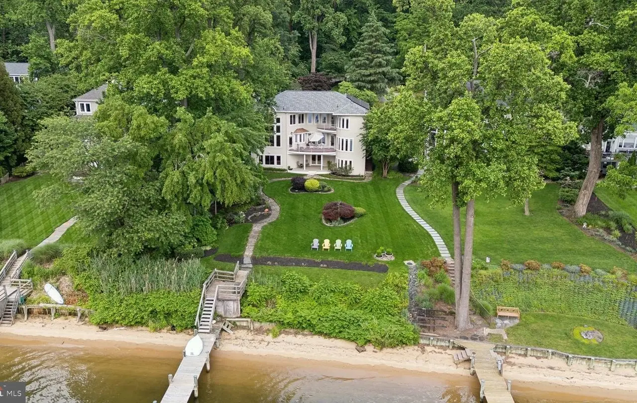 ""Sunset on the Severn"" - A gated, custom contemporary estate perched on 72 waterfront feet with a private pier, boat & jet ski lifts. A dramatic two-story great room with floating catwalk and wall of glass serves as the heart of this entertainer's dream. Just 15 minutes from downtown Annapolis, this Severna Park residence offers refined seclusion with seamless access to the heart of the Chesapeake. Designed to open upward and outward-toward light, toward water-every inch of this home invites you to embrace the surrounding beauty and live in rhythm with it. The main level blends form and function, anchored by a spacious eat-in kitchen and breakfast bar that flow effortlessly into both formal and informal living areas. A tucked-away family room with custom built-ins creates a cozy retreat, while art niches and clean architectural lines lend a sense of curated calm. Upstairs, the expansive primary suite features a private balcony with tranquil views, a custom walk-in closet, and a spa-like bath with dual vanities, a jetted tub, and a walk-in shower. A rear staircase leads to two additional bedrooms, a full bathroom, and a dedicated upstairs laundry. The walkout lower level is built for entertaining, featuring a stunning antique Victorian bar and a generous recreation room with an additional bedroom and a full bath. Just outside, a stone patio and manicured gardens offer a peaceful escape where birdsong and river breezes create a sense of timeless calm. Additional highlights include an oversized three-car garage with extensive storage, solar panels for year-round efficiency, a stone-paver motor court, a lily pad pond, and a garden path that gently winds to the private waterfront. Here, you don't just live by the water-you live in rhythm with it. Affectionately named Sunset on the Severn for its breathtaking evening views, you will absolutely love being home.