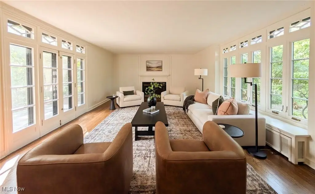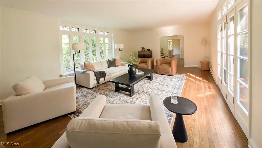 Stunning brick and stone Tudor that has been skillfully restored by craftsmen from the Woodland Design Company. Upon entering, you're welcomed by a dramatic two-story foyer with a curved reverse staircase and intricate wrought iron detailing. Beautifully re-finished hardwood flooring throughout. The Foyer opens to a Library featuring rich wood paneling, built-in bookshelves, fireplace and French doors leading to a rear stone patio. The sun-drenched Living Room boasts a large bay window, wood-burning fireplace and opens to a stunning terrace overlooking a landscaped and private backyard perfect for indoor-outdoor living. Remarkable floor to ceiling French Door windows creates a unique formal Dining Room that flows seamlessly into a new custom gourmet Kitchen, showcasing white marble countertops, custom cabinetry, high-end stainless steel appliances, and a large banquette. Designed with both entertaining and family living in mind, the kitchen offers an abundance of storage and prep space. The second floor features six Bedrooms and four luxurious, newly renovated spa-like Bathrooms. The Primary Suite includes a generous Bedroom, a walk-in closet with built-ins, and a marble tiled bath with double vanity sinks. A newly created Laundry Room is conveniently located on the second floor. The third floor offers two additional Bedrooms, a large Multi-Purpose Room, and a newly renovated spa-style bath =ideal for guests, au pair quarters, or office space. The lower level provides excellent utility space and a large Recreation Room featuring yet another fireplace. Additional upgrades include architectural grade replacement windows. Truly, the upgrades are too numerous to list.