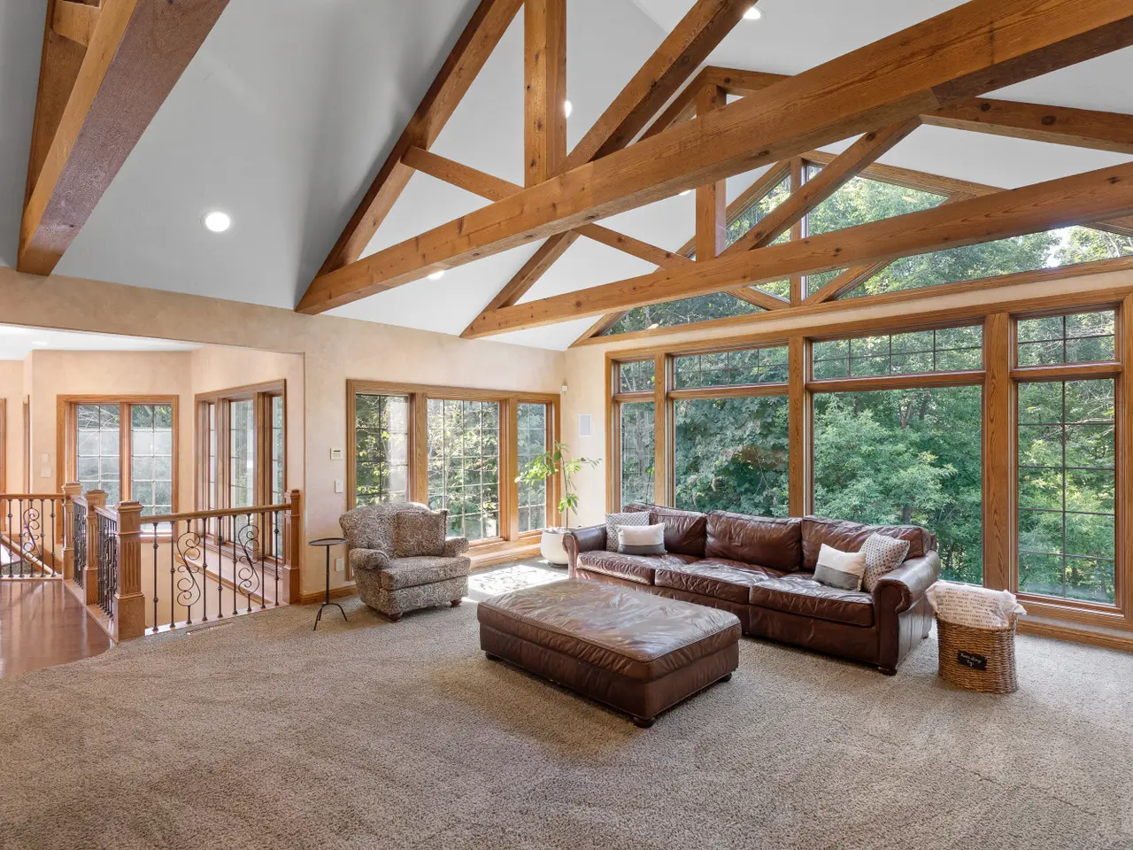 This owner has cared extensively for this quality craft-built home. Rare to find features: striking stone entry, gorgeous stone fireplaces, curved staircase, gables, walls of light filled windows, unparalleled Ann Sacks tile + beamed, wooded, vaulted, & tray ceilings throughout. Walking in is like a magazine! You'll love the design, the feel in the sunroom, the space, gourmet kitchen, architecture, screened porch, multi-level decking, brick patio, mature landscape, motif, and how it's set magnificently on a .9 acre wooded lot. Privacy w/ conservation behind + a short walk to the Pigeon River or pathway to Pine Hills Country Club/Golf. Please call for a showing & list of recent upgrades not limited to roof, skylights, gutters, hardwoods, Wolf/Bosch/Sub-Zero appliances, new bedroom & MORE!!