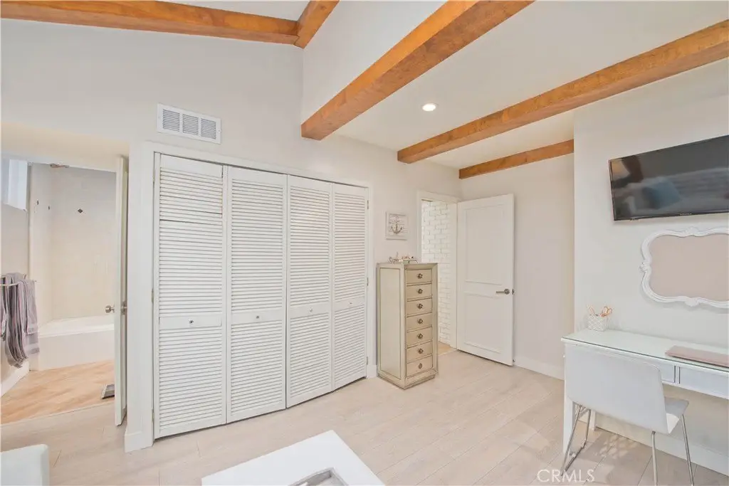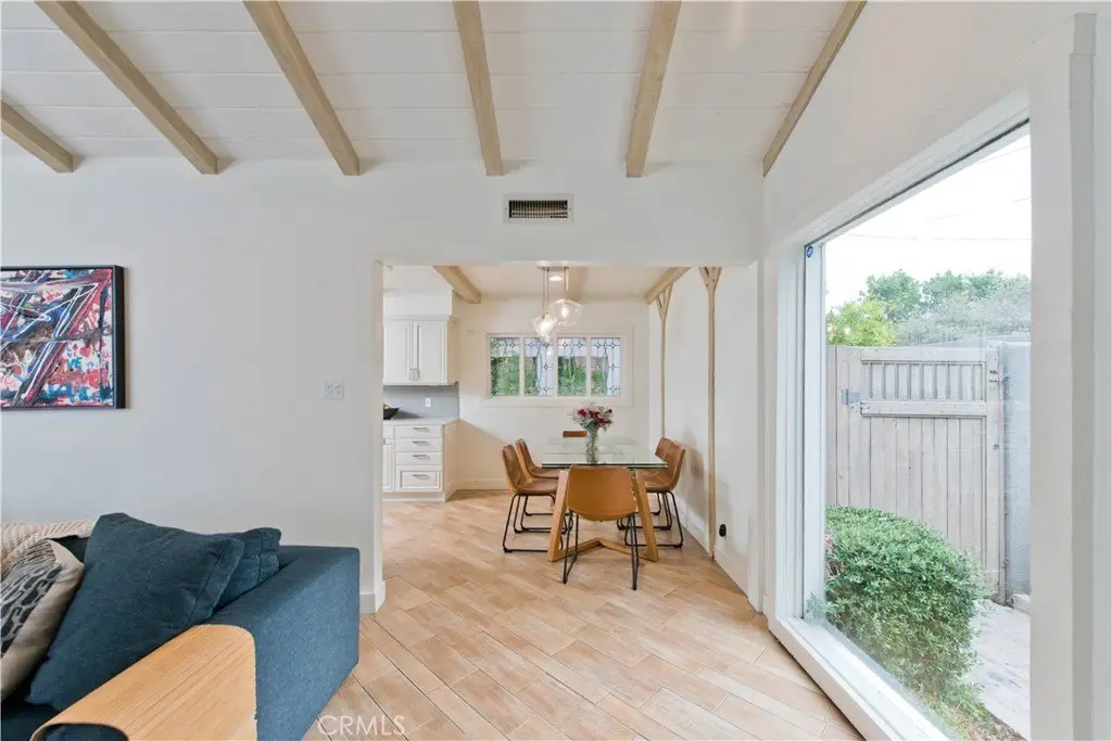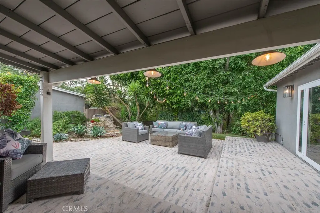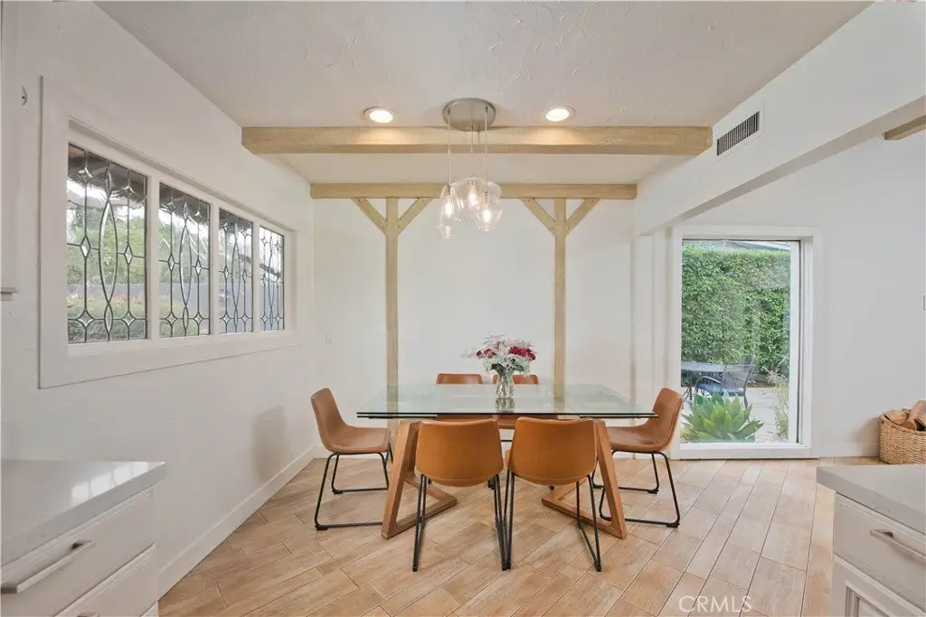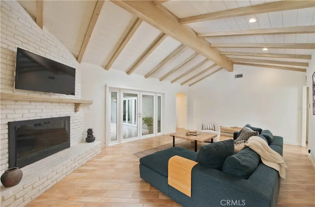 Nestled down a secluded, gated private driveway in the highly desirable Fashion Square district, this exceptional single level residence is highlighted with elegant wood and tile floors, loads of natural light and its timeless designer details. Upon entering the main living area, you are immediately captivated by the dramatic space, enhanced with its soaring ceilings, central fireplace, generous picture windows and French doors that pour in natural light. Opening from the living room is the expansive dining room that flows naturally into the perfectly updated kitchen, equipped with stainless steel appliances, custom cabinetry, and beautiful quartz countertops. Both the primary and secondary bedroom feature updated en-suite bathrooms, both enhanced by their luxurious wood beamed ceilings, with the oversized third bedroom offering direct access to the private rear yard patio. Step outside and decompress in the ultra-private rear yard with expansive entertaining areas surrounded by mature landscape, enhanced by the tranquil sound of its custom water feature, enjoy a round at your private putting green or explore the rear garden set under a canopy of lush trees. This home offers a rare combination of privacy and convenience tucked away from it all, yet moments from premier shopping and dining venues. Don’t miss this opportunity to enjoy a timeless home with distinctive character and beautiful updates in a premier Sherman Oaks location!