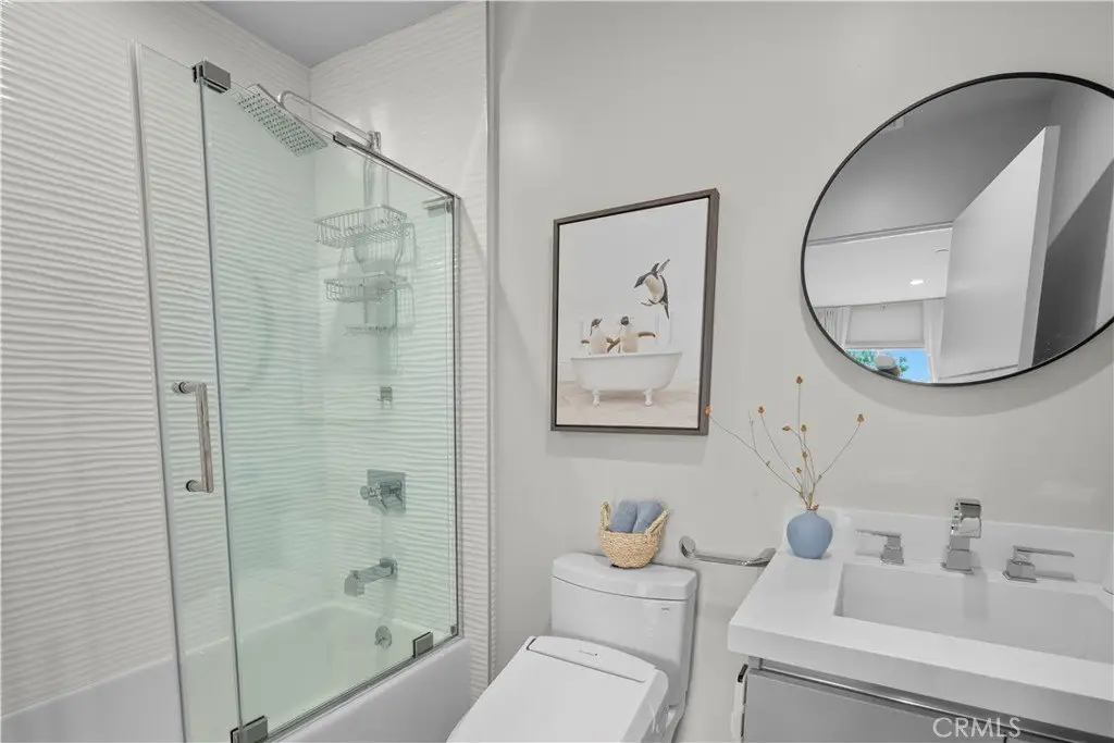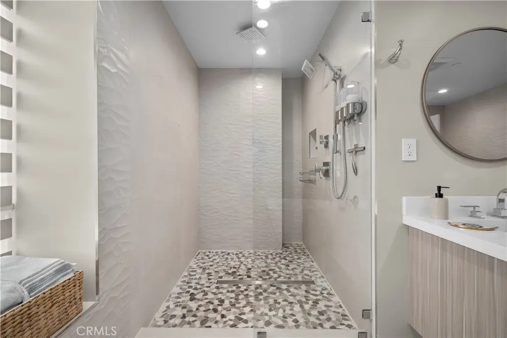 Elevate your everyday experience with this brilliantly designed living space that blends luxury with sleek functionality. Every inch of this home has been thoughtfully designed with custom, European-inspired millwork and architectural wall treatments that balance modern minimalism with depth and texture. The layout is equally impressive, starting with an unmatched entertainment level spanning forty-four feet of soothing ambiance from softly sunlit windows and a statement-making backdrop of white oak slats that adds organic depth to its modern minimalist vibe. An open dining space has room for your biggest dinner gatherings. It flows to a pristine kitchen with European-style slab cabinetry finished in luminescent lacquer for an ultra-modern aesthetic and clean lines, yet also functional with easy cleaning and deep, soft rolling drawers with room for all your favorite chef's toys. Upstairs, you'll find an expansive primary suite and a generous walk-in closet fully outfitted with custom organizers for maximum efficiency, and a luxurious en-suite bath for maximum relaxation. A floating double vanity with a natural wood veneer enhances the airy spa-like vibe and seamless drawers, maintaining the home's minimalistic design. The freestanding oval soaking tub, set against a textured accent wall, creates a spa-worthy focal point that invites long, luxurious soaks. Downstairs, you'll find the perfectly versatile room to be reimagined to that unique space you've been dreaming of; an in-home movie-theatre room, a family fitness gym, a bowling game room with bar, or even a convenient in-home business consult, and the freedom to reimagine it as your needs evolve. The three-car garage wasn't left out of this home's noteworthy design. Featuring EV parking, two entrance options, and a full-view garage door with frosted glass panels for a natural sunlit garage-glow that you never knew you needed. Manicured privacy hedges complete the corner-lot curb appeal, making this home a perfect blend of design and comfort for an elevated lifestyle.