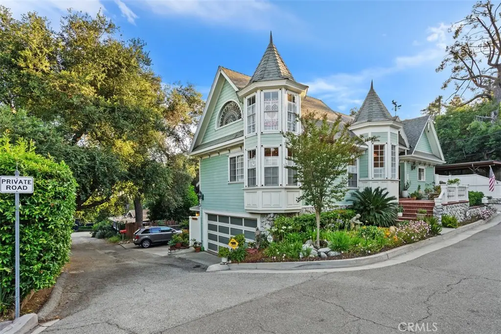Tucked away, in a historic town called Sierra Madre. At the foothills of the San Gabriel Valley and below the southern edge of the Angeles National Forest. Surrounded by lush green trees and beautiful wild flowers, the wind whistles through. Crisp air and occasional wild life make for a peaceful setting no matter the time of day. This timeless Victorian masterpiece, is now open for new memories to call your own. Newly built in 1989, with the great outdoors in mind, windows were placed throughout the home to welcome the nature that surrounds. Backed to a Private Road is a 2 car garage. A third option carport is on the North-West side of the property. Morning coffee or afternoon tea favorite spots are out front on the porch bench or in the covered sun room open breezeway. Meticulously maintained and well-loved. Upon entering is a cozy living space. An open floorplan makes for a spacious feel. The expansive master suite is located on the main floor. A gorgeous wooden staircase provides optional separate living with 2 additional bedrooms, a full bath, and a sitting room. French doors lead to a near wrap around patio currently enjoyed as an outdoor lounge area. Additionally, an estimated 300 square foot attic space (not included in advertised square footage) with high ceilings has been converted into a fully functionally living space. Feel like taking a walk or hike? This is the place to do it! Explore local beautiful sites, curbless roads, churches, and Downtown shopping and dining. With the city life close by, you will find this location, the perfect getaway, to call home.