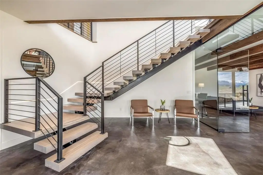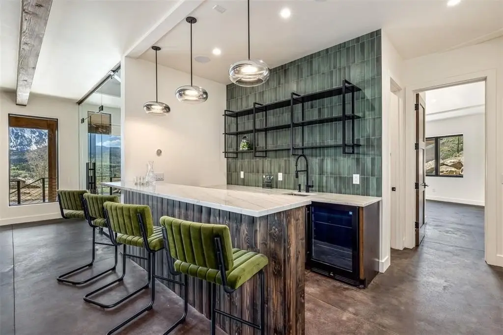 This new contemporary masterpiece has been thoughtfully site-planned to capture some of the most inspirational views available in today's market. The clean wooden beams support a modern roofline that gently transitions upward to frame the Tenmile and Gore Ranges through expansive walls of windows. The artful design of the residence boasts an open floor plan with exceptional visual connectivity between spaces, perfect for the most intimate or the most social of gatherings. The stunning kitchen is outfitted with Monogram and Dacor, bringing in the latest in gourmet technology. The grand suite is dedicated to its own private wing off the main level for the utmost convenience. The owner will enjoy a sumptuous sanctuary with a modern-styled bath and inspiring sunrises that will start each day with purpose. The gracious deck off the great room will surely accommodate all of your friends and family, providing a perfect spot to toast to the day and enjoy breathtaking sunsets. The lower level of the home anchors the "fun zone" enjoyed by all ages, featuring a large family room and entertainment area served by a walk-behind bar. The enormous three-car garage has room for your Sprinter Camper Van and ceilings high enough to install lifts for your classic cars, rafts or drift boats. There is also a structurally isolated elevator shaft, giving the buyer the option to install an elevator in the future.