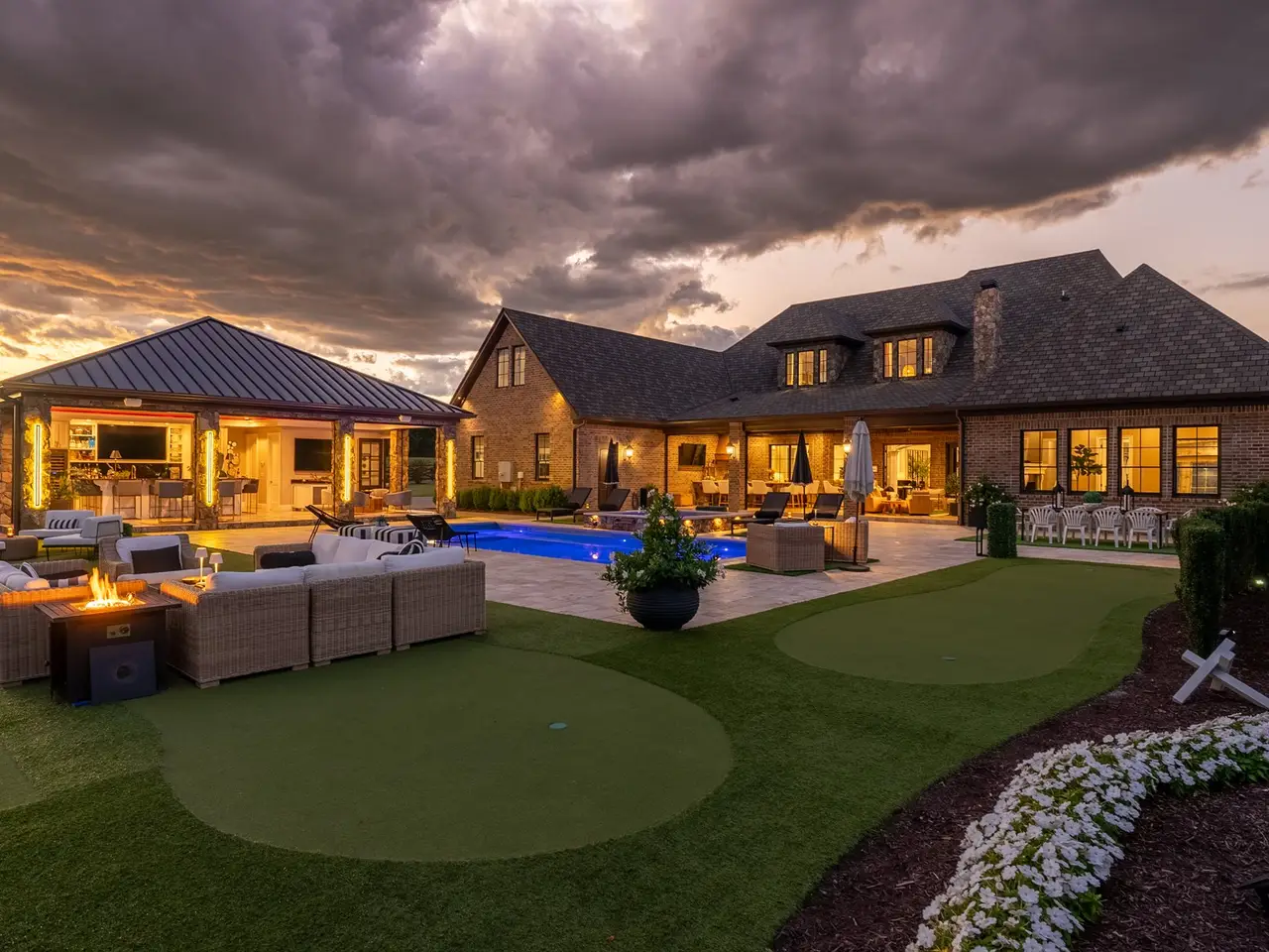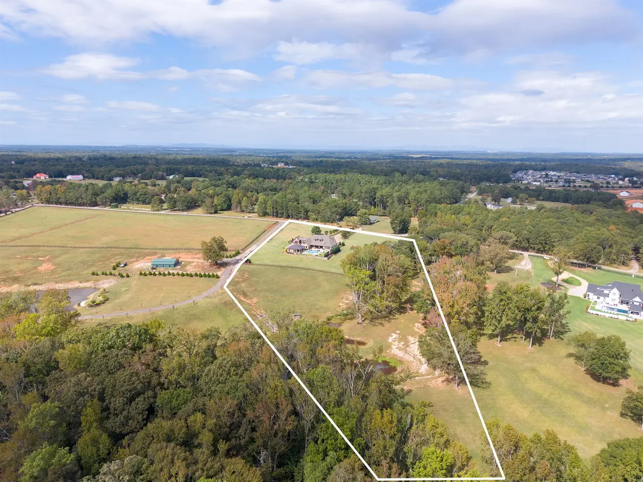 Imagine more than ten acres of pristine, perfectly curated land with an extraordinary home designed for entertaining at every level. Agape Acres Estate is tucked behind private gates, down a tree-lined paver driveway where a graceful fountain welcomes you home. This grand estate feels worlds away from everything, yet remains perfectly positioned close to all modern amenities in Simpsonville, SC. While every corner holds its own charm, the backyard truly steals the show- breathtaking, functional, and unforgettable. A sparkling saltwater pool with a spillover spa glistens beneath the Carolina blue sky, with a nearby putting green ready for friendly poolside competitions. An expansive covered porch spans the width of the home, featuring an outdoor living room, wood-burning fireplace, and full kitchen/grilling area. This space can be fully enclosed and climate-controlled for year-round comfort. Perfect for hosting holiday gatherings that flow effortlessly from indoors to the outdoor fireplace. Enjoy your morning coffee as the mist rises off the pond or unwind fireside beneath the stars. From game days to quiet nights, all the outdoor space has been intentionally designed for every South Carolina season. The pool house feels like a private resort suite, luxurious, stylish, and perfectly situated in the Carolina countryside. Inside, you'll find a hotel-inspired bedroom with ensuite luxury bath overlooking the lush backyard, an additional full guest bath, laundry area, and an attached garage with extensive storage. The poolside kitchen features a large hibachi grill ideal for brunches or alfresco dinners, and like the main porch, this entire area can be fully enclosed, and temperature controlled. These are the spaces where good food and laughter linger long after the plates are cleared. The land itself invites exploration, whether by four-wheeler or alongside a few barnyard friends. Horses or goats would feel right at home here, grazing by the pond stocked with Large Mouth Bass and Bream. The perfect spot for a quiet afternoon of fishing. Roughly four acres are fully fenced, offering a sense of peace, privacy, and panoramic views at every turn. Inside, the same sense of warmth and refinement continues. Rich hardwoods and elegant tile run throughout, with no carpet in sight. The great room, anchored by a grand fireplace and custom built-ins, flows seamlessly into the chef's kitchen, breakfast area, and elegant dining room. The formal dining space feels both sophisticated and inviting, complete with an adjoining bar that turns dinner parties into lasting memories. Imagine hosting the upcoming holidays in this elegant yet comfortable setting. The main-level primary bedroom suite is a serene retreat with a showstopper gas-log fireplace, sitting area, and two custom closets with washer/dryer area. It has the most amazing view of the backyard/pool. Two additional bedrooms with full ensuite baths, an elegant office or sitting room with a gas fireplace, and a home theater room with a wet bar/kitchenette for movie nights are all located on the main level. You'll also find two conveniently placed powder rooms and a spacious walk-in laundry room on this floor. Head to the second level to find two additional ensuite bedrooms, each with beautifully custom-tiled baths, along with an extra office, and a spacious recreation/living area featuring a well-appointed kitchenette. This home is ideal for multi-generational living or hosting long-term guests. With over ten acres of land, there's enough room to add future home sites or additional amenities. Every detail of this grand estate has been carefully curated, from the custom ceiling designs and designer lighting, to the fully finished, epoxy-coated five-car garage. Every closet custom, and every space designed to showcase exceptional craftsmanship. This is a home that seamlessly blends indoor and outdoor living spaces together. You will certainly have a hard time choosing your favorite spot.