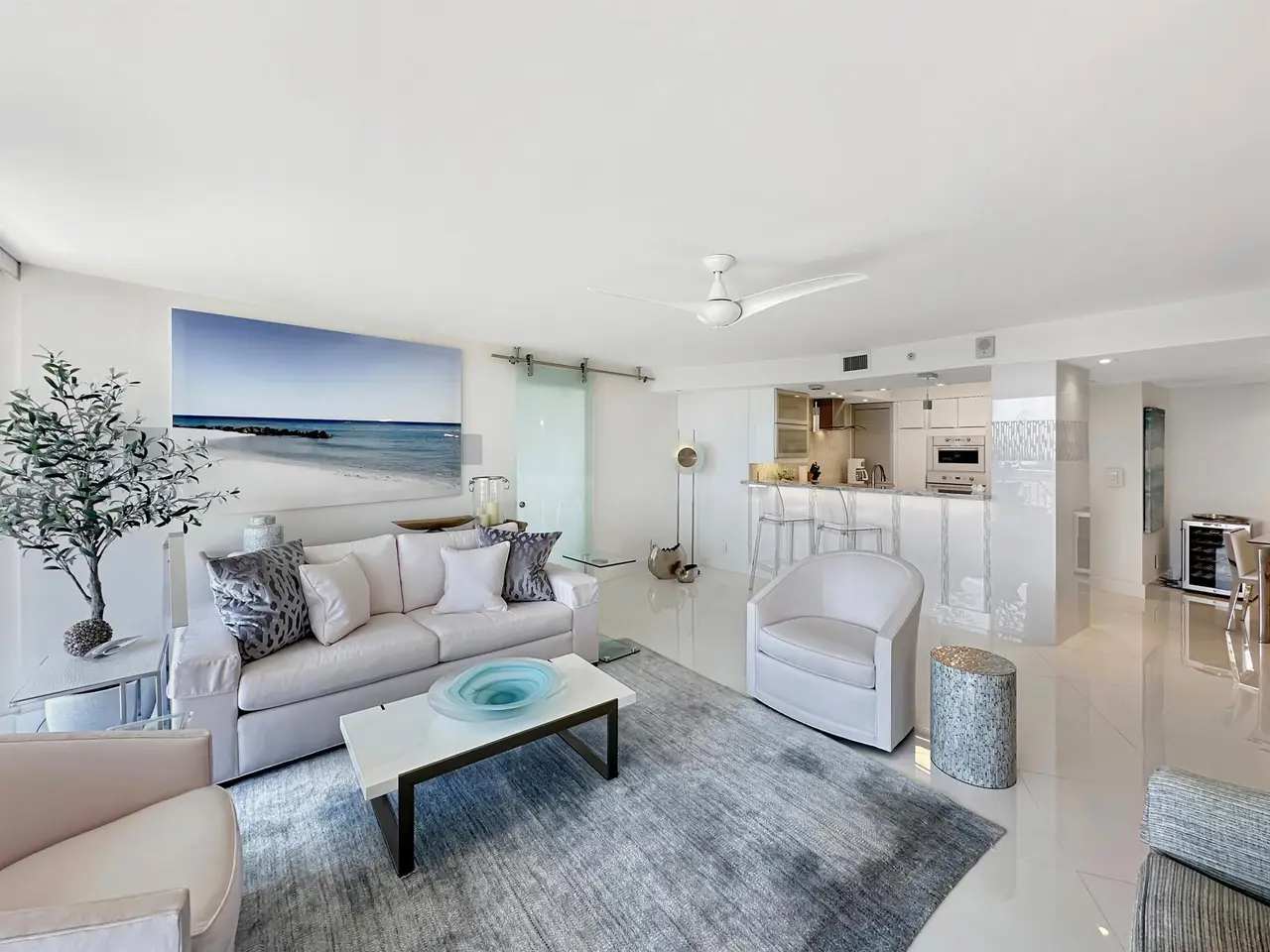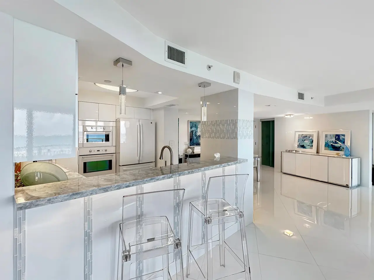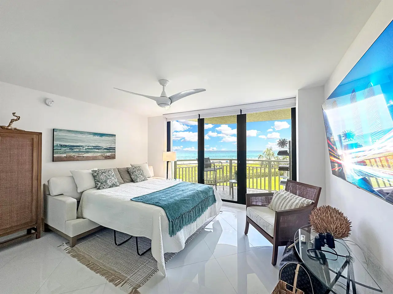 Oceanfront elegance AND a smart investment in a well-maintained building. This home feels like your private beach house w/ views from every room of seagrapes, sand and sparkling Atlantic. Meticulously upgraded & maintained, this unit offers high end finishes throughout including a well-equipped custom kitchen w/ quartz countertops, luxury appliances & wine cooler. Large format tile flows seamlessly through each room. All windows feature remote controlled blinds & translucent doors to bathe the home in light. Enjoy the ultimate entertainment experience w/ a custom AV system. California closets round out the details that define this beautiful home. Tiara offers a resort lifestyle with 24 hr concierge, valet, 2 restaurants with delivery, fitness centers, tennis, pickleball and much more.