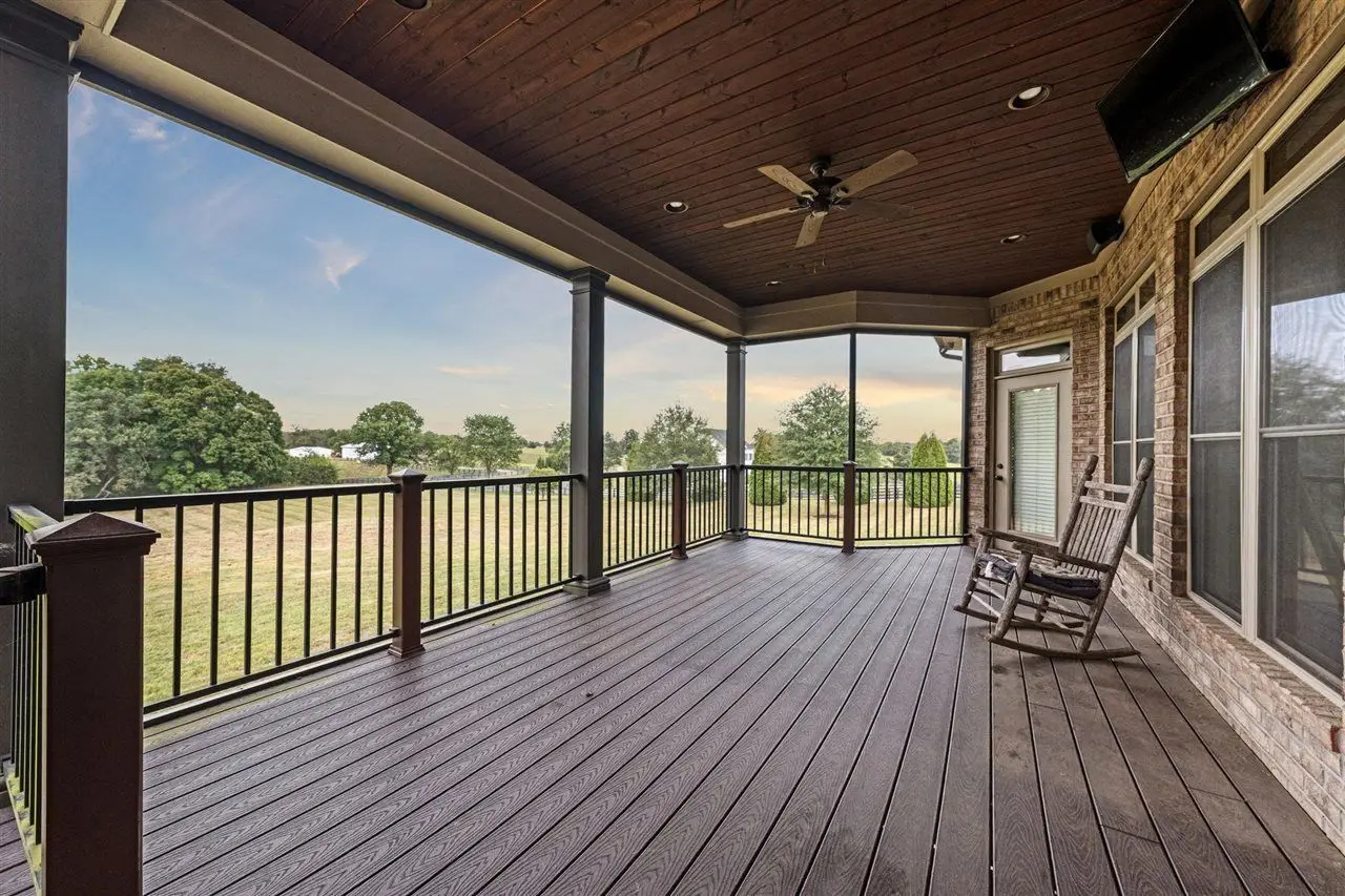 Nestled on seven beautiful acres, this stunning four-bedroom, four and a half-bath custom built home offers elegance, comfort, and functionality. A sweeping, spacious yard welcomes you to the property, providing plenty of room for outdoor activities, gardening, or simply enjoying the serene surroundings. Inside, the open-concept floor plan is filled with natural light and enhanced by thoughtful details such as coffered ceilings, designer selections and a cozy fireplace, creating a warm and inviting atmosphere. The kitchen is designed for both everyday living and entertaining, featuring a large walk-in pantry and easy flow to the dining and living spaces. The primary suite is a true retreat, complete with dual closets, a soaking tub, and a beautifully tiled shower. The fully finished walk-out basement expands the living space, offering a second kitchen, whole home surround sound system, and abundant storage. Perfect for gatherings or private guest quarters, this level provides flexibility for a variety of needs. Additionally the basement offers an extra finished space that can serve as a home gym, office or a secondary garage with exterior garage door access. Outdoor living is equally enjoyable with a screened porch ideal for relaxing evenings. Additional highlights include a three-car garage, tankless water heater, and thoughtful upgrades throughout. With its expansive acreage, modern amenities, and luxurious touches, this home combines peaceful country living with upscale comfort truly a must-see property.