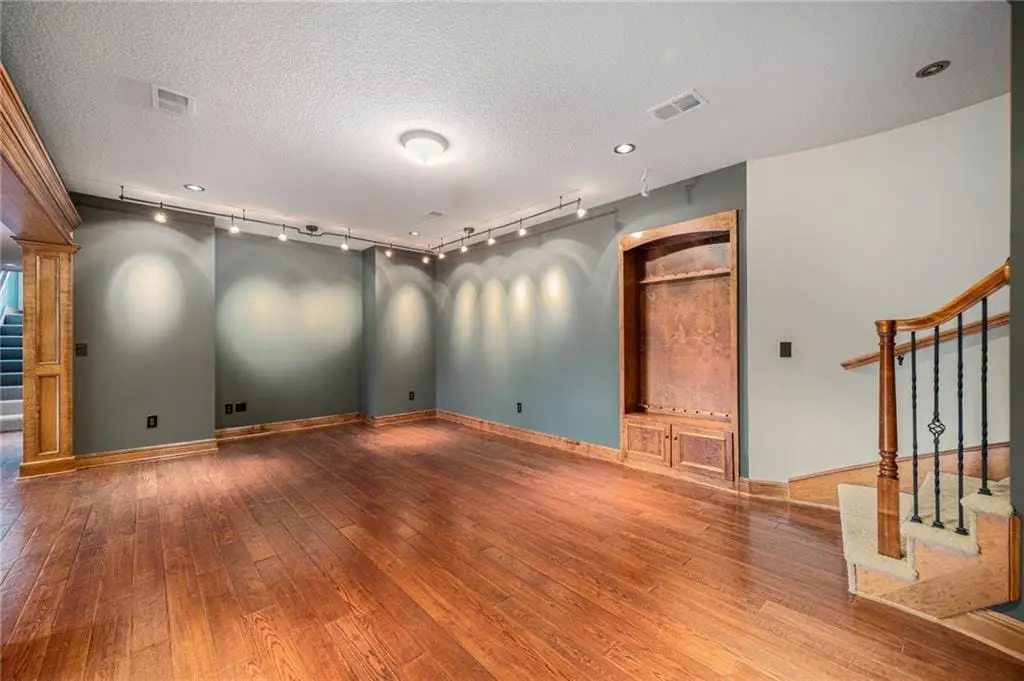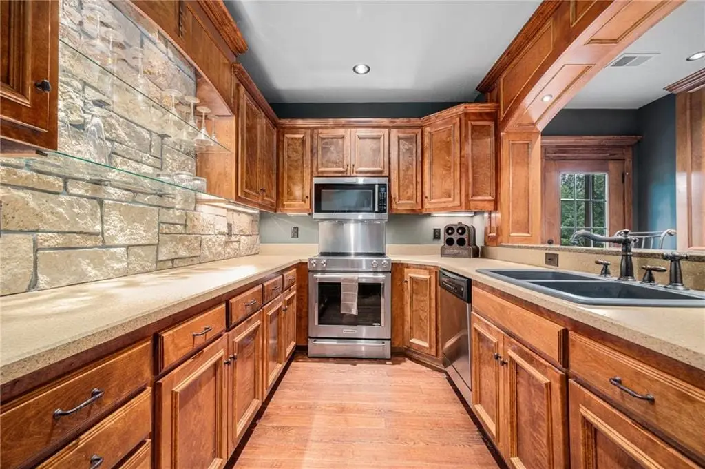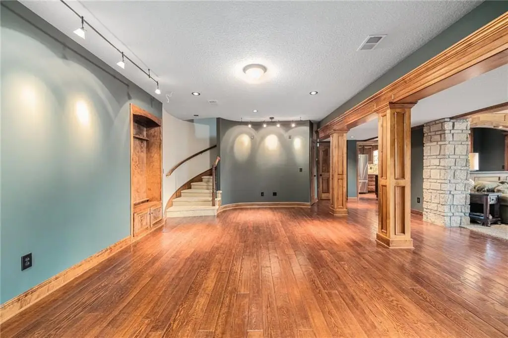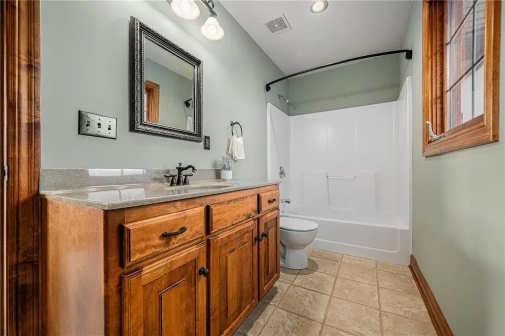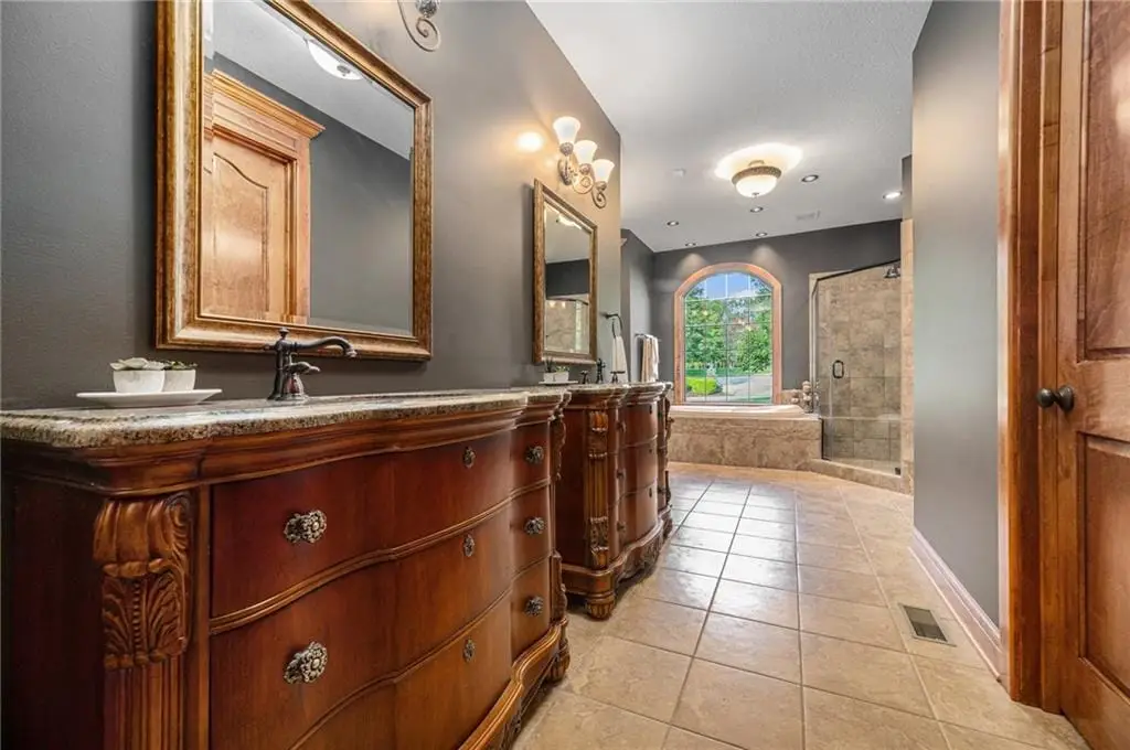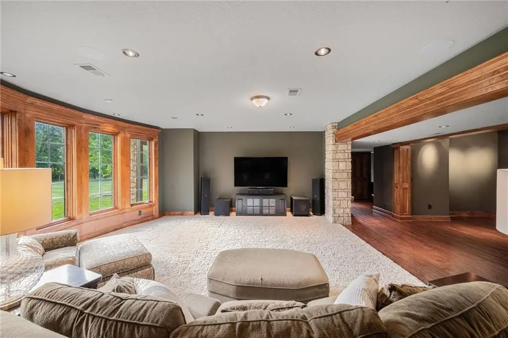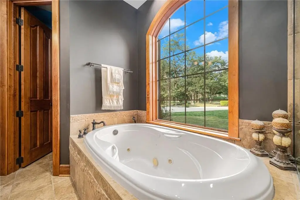Tucked away on a quiet cul-de-sac in the desirable Strawberry Hill development, this impressive 1.5 story residence rests on a sprawling 1.76 acre lot. With quick access to The Litton Center, scenic walking trails, a play park & nearby Smithville Lake, the location offers both convenience & recreation. From the moment you arrive, the exterior showcases pride of ownership w/timeless curb appeal & meticulous care. Step inside to be greeted by a dramatic foyer featuring a curved staircase, soaring 2-story ceilings & rich, moody-traditional design details. Recently refinished hardwood floors, 2 geothermal HVAC systems (both in ground loop), computer-controlled Vantage Luxury Lighting, structured wiring & thoughtful upgrades throughout set this home apart. The great room makes a bold statement w/an arched wood entry, a striking stacked-stone fireplace flanked by custom built-ins & a wall of windows filling the space with natural light. The gourmet kitchen is designed for the chef at heart, offering knotty alder cabinetry, stone countertops, tile backsplash, built-in refrigerator, gas cooktop, oversized island & an exceptional walk-in pantry. Enjoy meals in the elegant formal dining room or the inviting 3-season room overlooking your private backyard. The main-level primary suite is a true retreat, boasting a coffered ceiling, spa-inspired ensuite w/dual custom vanities, large walk-in shower, jacuzzi tub & an expansive walk-in closet. Upstairs, discover 3 generously sized bedrooms, each with ample closet space & private or jack-and-jill bath access. The finished walkout lower level is designed as a full secondary living space - perfect for guests or multi-generational living. It includes a 2nd full kitchen, bedroom, bathroom, recreation/living areas, garage access & abundant storage. For entertaining, there’s even a theater/media room ready for movie nights or game day. Outside, the expansive backyard is ideal for gatherings, grilling, or tossing the football with friends.