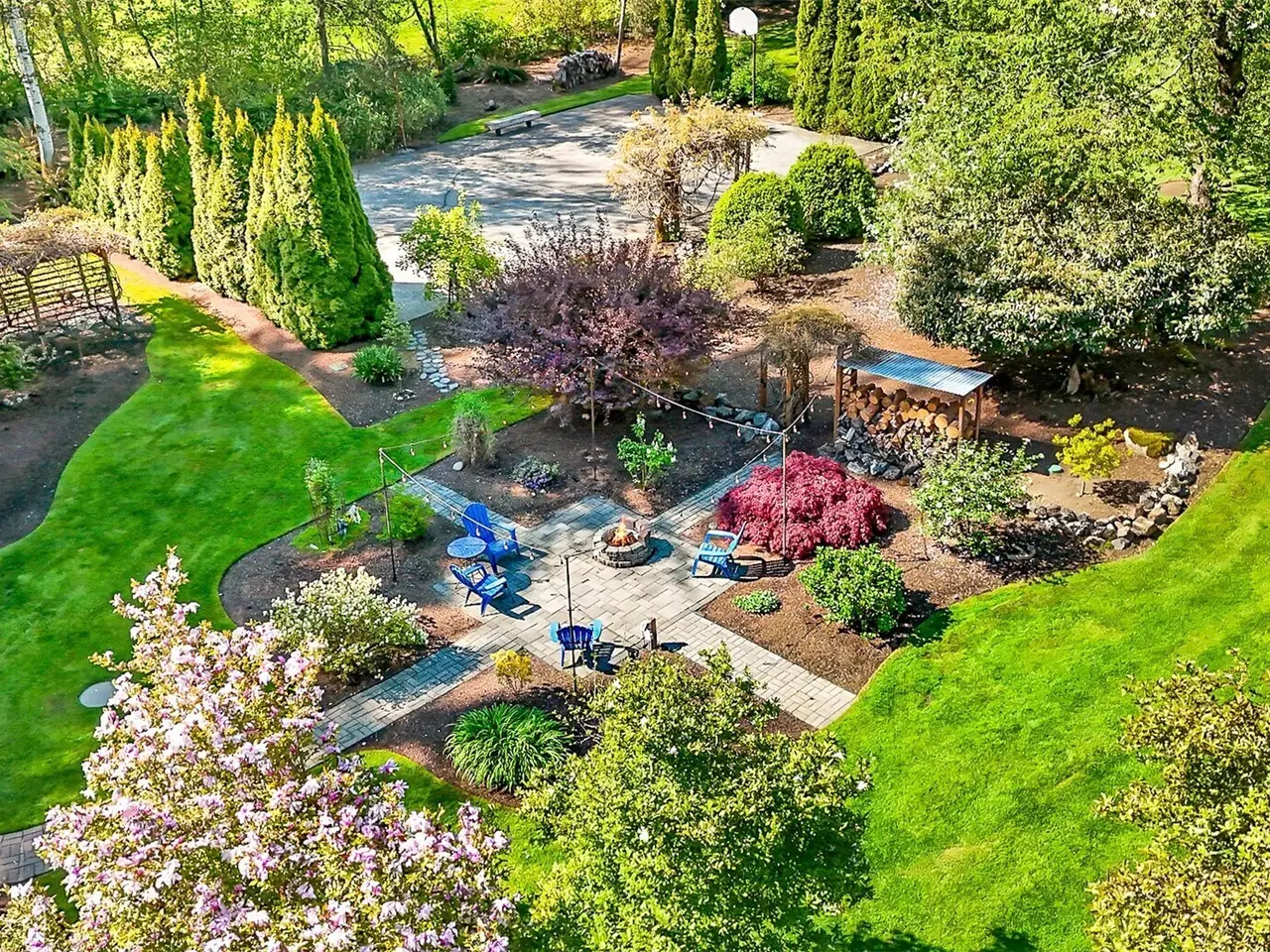 Paradise found! 2+ manicured acres at end of private cul-de-sac, close to Echo Falls County Club & includes separate heated 1,600 sf shop! Over $1M in RENOVATIONS & UPGRADES within the last 7 years. Wolf appliances in new kitchen, custom backlit Italian onyx in new primary bath, designer fixtures and custom stairs – so much more. MAIN FLOOR PRIMARY SUITE, large sport court, fruit trees, berry bushes, chicken coop w/ covered run and back yard is fully fenced for dogs. Custom paver double driveway - attached 3- car garage w/ EV charger – additional 5 car parking with RV space in shop! Stunning Low voltage lighting in front and back - spectacular at night. Storage galore – Rare find close to Woodinville and SR 522.
