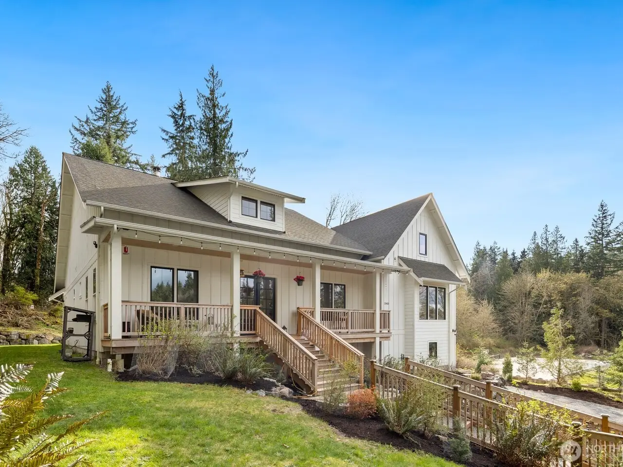 First time on the market! This custom-built modern farmhouse sits on 6.8 serene acres, just steps from Lord Hill Park's scenic trails. Inside, enjoy an open-concept design, vaulted ceilings, and oversized windows flooding the space with natural light. The gourmet kitchen boasts premium appliances, custom countertops, and a spacious island with private deck access--perfect for entertaining. The primary suite features a spa-like bath and walk-in closet. Relax on the expansive porch, host gatherings, or explore renowned wineries just minutes away. W/ breathtaking views, modern comforts, and endless adventure, this one-of-a-kind retreat offers luxury, privacy, and the ultimate PNW lifestyle--& a 3rd room w/ 3/4 BA upstairs for guests/office.