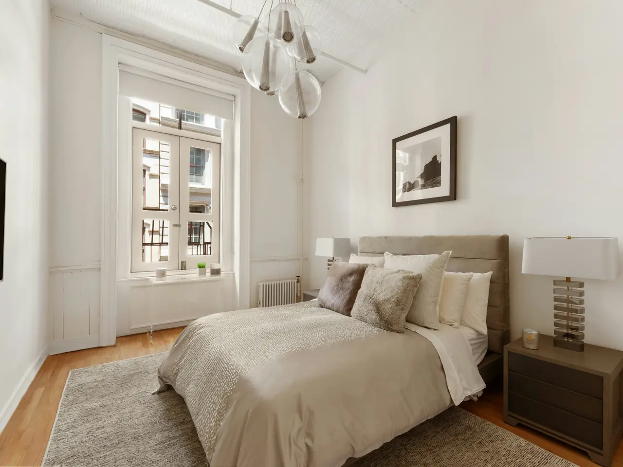 Classic Soho Charm This rare and authentic condominium loft is located right in the heart of Soho's historic Cast-iron District and features grand proportions and charming original details throughout. Enter to a dramatic Living/Dining room with 12-foot pressed-tin ceilings, classic Corinthian columns and bright afternoon light from enormous double-hung windows. The oversized chef's kitchen with center-island is open to the entertaining space and features granite countertops, abundant custom cabinetry and top-of-the-line stainless steel appliances. At one end of the loft you'll find the bright king-sized primary bedroom with a large fitted wardrobe and access to a tastefully renovated marble bathroom. At the opposite end of the loft, you'll find a large interior guest room, a separate study nook and an oversized guest bathroom clad in marble with a deep jetted Kohler tub. Additional amenities include multi-zoned central air-conditioning, an LG washer-dryer, numerous storage closets and custom lighting on dimmers throughout. Built in 1872 and converted to condominium in 2016, the boutique 6-story cast-iron building offers a key-locked elevator, brand new Seidel video intercom system, a common roof deck and low monthly charges. And of course there's the prime Soho location, putting you on charming cobblestone block surrounded by alluring retail storefronts with great restaurants, cafes and the best that Downtown has to offer right at your doorstep. Recently renovated and available for immediate occupancy!
