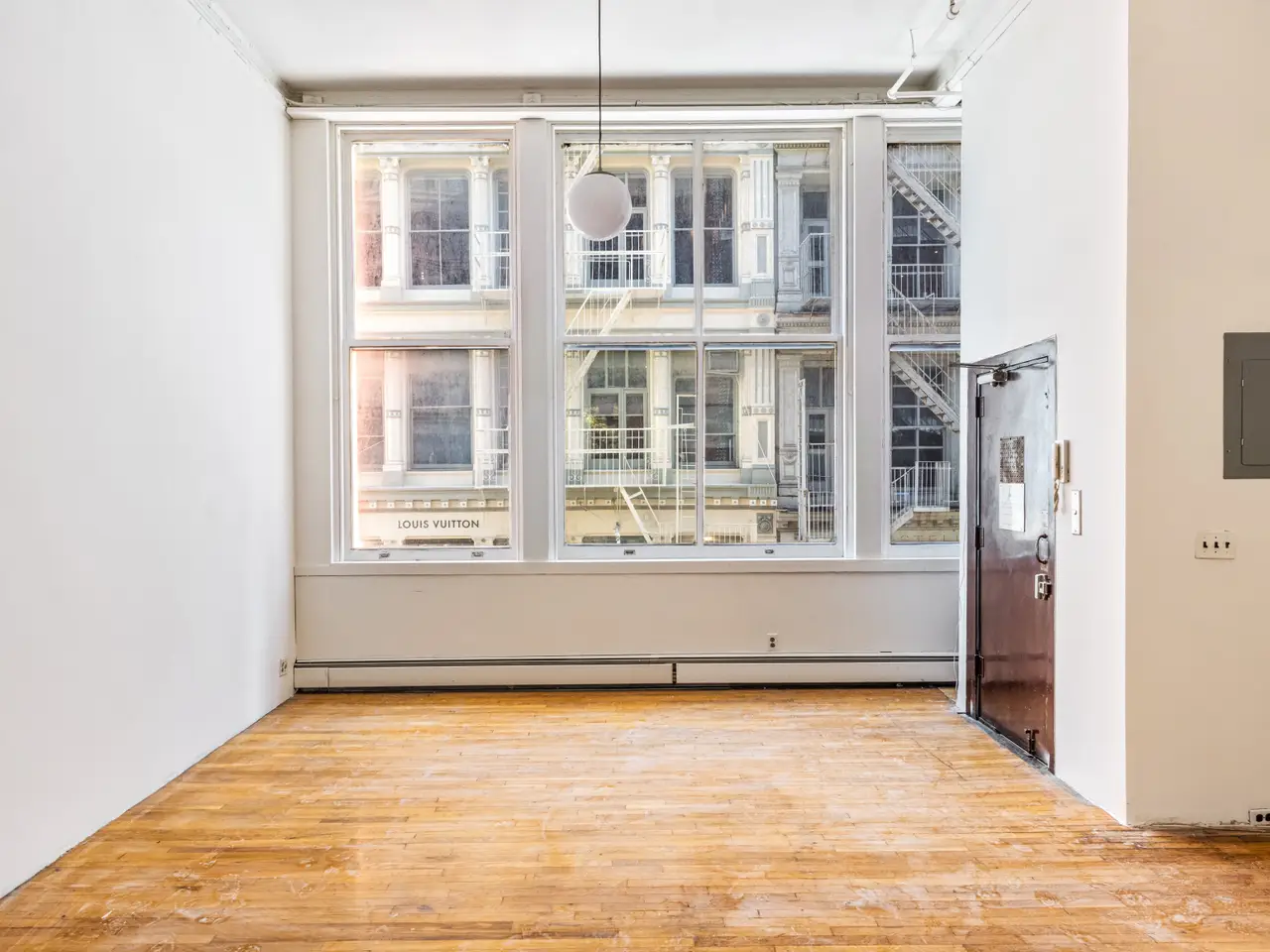 First time on the market. Raw 2,063 square-foot loft boasts some unusual features that make it an exceptional find. Thirteen windows on all four sides, each measuring over 4-feet by 9-feet, bring an incredible amount of light at all times of the day and the soaring ceilings of 13'6" throughout provide a grand sense of space and light. The generous size and number of windows also allow for numerous and flexible layout options. Current layout features one bathroom and no interior walls or bedrooms, however the possibility exists for the creation of additional bedrooms and bathrooms. Built in 1900, this intimate cast-iron elevator loft building is situated on one of the most sought-after cobblestone blocks in the heart of the SoHo-Cast Iron Historic District. Greene Street is filled with great historic significance especially starting with the settling of renowned artists to the neighborhood in the 1960's. 113 Greene Street is surrounded by the greatest collection of cast-iron architecture in the world, not to mention immediate neighbors like Dior, Versace, Stella McCartney and Louis Vuitton. Geographically at the center of Downtown Manhattan, it is a most convenient neighborhood and also within a short distance of all of the restaurants, shops and culture that make this such a desirable neighborhood. The co-op does not have an underlying mortgage and the financials are stellar.
