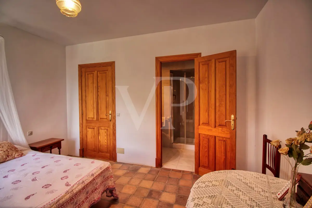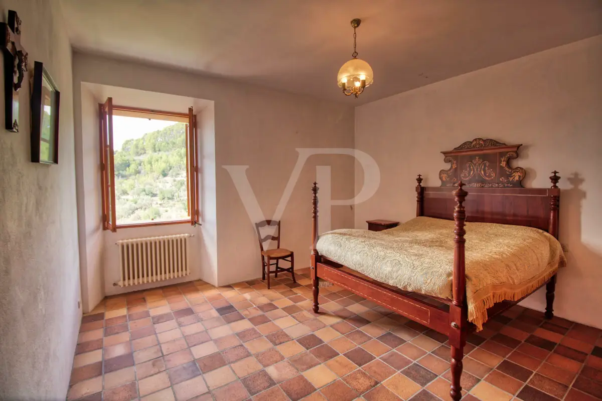 Situated on a fantastic hill at approximately 180 meters altitude, this spectacular property of almost eight hectares with a renovated eighteenth century house is for sale in Soller. A spacious and beautiful hall leads to this interesting property, a spacious living room with fireplace, a large room with a total of about 70 square meters. With direct access to a pleasant terrace of about 30 square meters. Fantastic rustic fitted kitchen open to the dining room with a slight slope and access to a covered terrace of approx. 60 meters with a built-in barbecue, as well as a pantry and cellar. On the upper floor there are five slightly sloping bedrooms and two large bathrooms, one of which is en suite. On the lower floor is the sixth bedroom suite. It also has a large office connected to the hall. In the basement floors it still retains its two old oil tanks with the possibility of reusing or reusing it for a cellar, the engine room as well as a warehouse and a cellar. One car garage in main building, plus large separate garage with space for four cars. Extensive olive grove in production, fruit trees such as 145 orange trees of the Valencia Late variety with drip irrigation, grape vines, apricots, medlars, lemon trees, kiwis, pomegranates... It has solar energy for sanitary water, city lights, oil central heating. With a large "safereig" water tank of 120,000 liters, two own unused water wells thanks to its two water sources that provide the necessary water all year round. Mallorcan shutters made of iron and wood in very good condition. A property that with just a few updates and improvements can become an exclusive property. There is also the possibility to build a swimming pool, thanks to its large plot. The property is in excellent condition and in an excellent location.