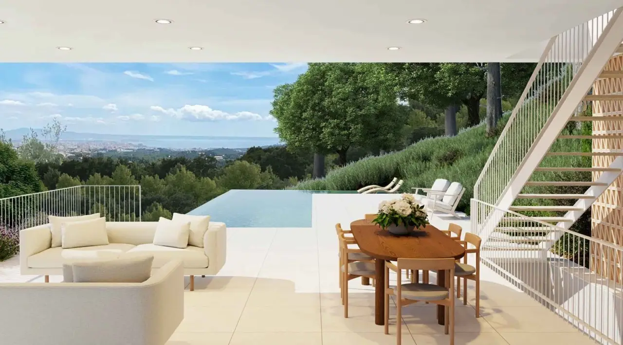 Discover an incomparable jewel in the privileged location of Son Vida, Palma - one of the last available building plots with an approved project and breathtaking sea views. This impressive plot with an area of 2,094 m² offers you the unique opportunity to realize your dream home in one of the most sought-after areas of Mallorca. On the adjacent plot there is a protected green area on which no other house can be built. This means that the project plot is protected on this side by a large group of trees. This sophisticated project combines modern elegance and luxurious living comfort to create a harmonious whole. The planned property offers approx. 587 m² of constructed area, comprising 5 exquisite bedrooms and 5 first-class bathrooms. Enjoy the perfect combination of modern elegance and luxurious living comfort, surrounded by the natural beauty of this exclusive residential area. The proximity to a first-class golf course underlines the prestigious character of this address and offers you relaxing leisure opportunities all year round. Become part of the illustrious community of Son Vida and realize your vision of a stylish home in a historic yet avant-garde area of Palma. This is undoubtedly a unique offer, with both an enchanting location and the potential for architectural masterpieces. Seize this rare opportunity and create a home with unparalleled charm and a breathtaking backdrop.