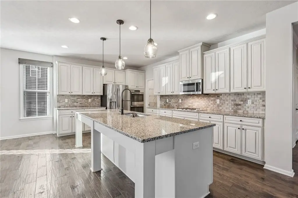 Welcome to 4462 Walnut Ridge, a stunning 4-bed, 5-bath home with a 3-car garage and open floor plan. The living room features a gas fireplace and flows into the dining area and gourmet kitchen with granite countertops, stainless steel appliances, walk-in pantry, and soft-close cabinetry. A private den with French doors, engineered hardwood floors, and elegant mouldings offers space for a home office or playroom. A mudroom with built-in storage is located at the garage entrance. The dining room opens to a concrete covered patio with sun shades, recessed lighting, ceiling fans, and serene views of the fenced backyard. Upstairs, the primary suite boasts 2 walk-in closets and a spa-like bath. Three additional bedrooms and two baths, a study nook, and laundry room complete the second floor. The finished lower level includes a game room with live edge bar and barrel sink, an exercise room, and full bath. A truly spectacular home - where luxury, comfort, and convenience merge in perfect harmony.