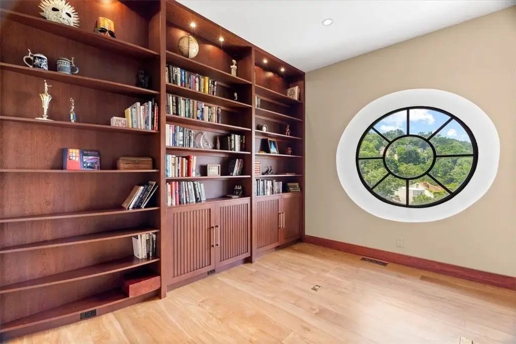 En el mar de monotonía de las nuevas construcciones en el panorama inmobiliario urbano, esta es una casa que destaca por encima de todo. The Tower at 1 Pius es una residencia histórica única que alberga la torre del reloj de la antigua iglesia de San Miguel. El propietario original de este espacio imaginó y construyó cada nivel de esta unidad. Esta joya arquitectónica se eleva por encima del bullicio de la ciudad, ofreciendo tranquilidad, privacidad, vistas y lujo. Convenientemente ubicada a minutos del centro y las Parkways; fácil acceso al aeropuerto, el East End, el Strip District, universidades y centros tecnológicos, médicos y financieros. Lujosos pisos de madera noble a medida y muebles empotrados, escaleras de diseño artístico, iluminación automatizada personalizable. Electrodomésticos de lujo: estufa Wolf, Subzero (refrigerador principal, vinoteca y mininevera). Lavadora y secadora apiladas Electrolux. El baño principal cuenta con piedra a medida, suelo radiante, ducha de vapor y una elegante bañera profunda. Patio privado junto al dormitorio principal y la sala de estar. El impresionante Aqua Hall cuenta con un gran acuario de agua dulce.