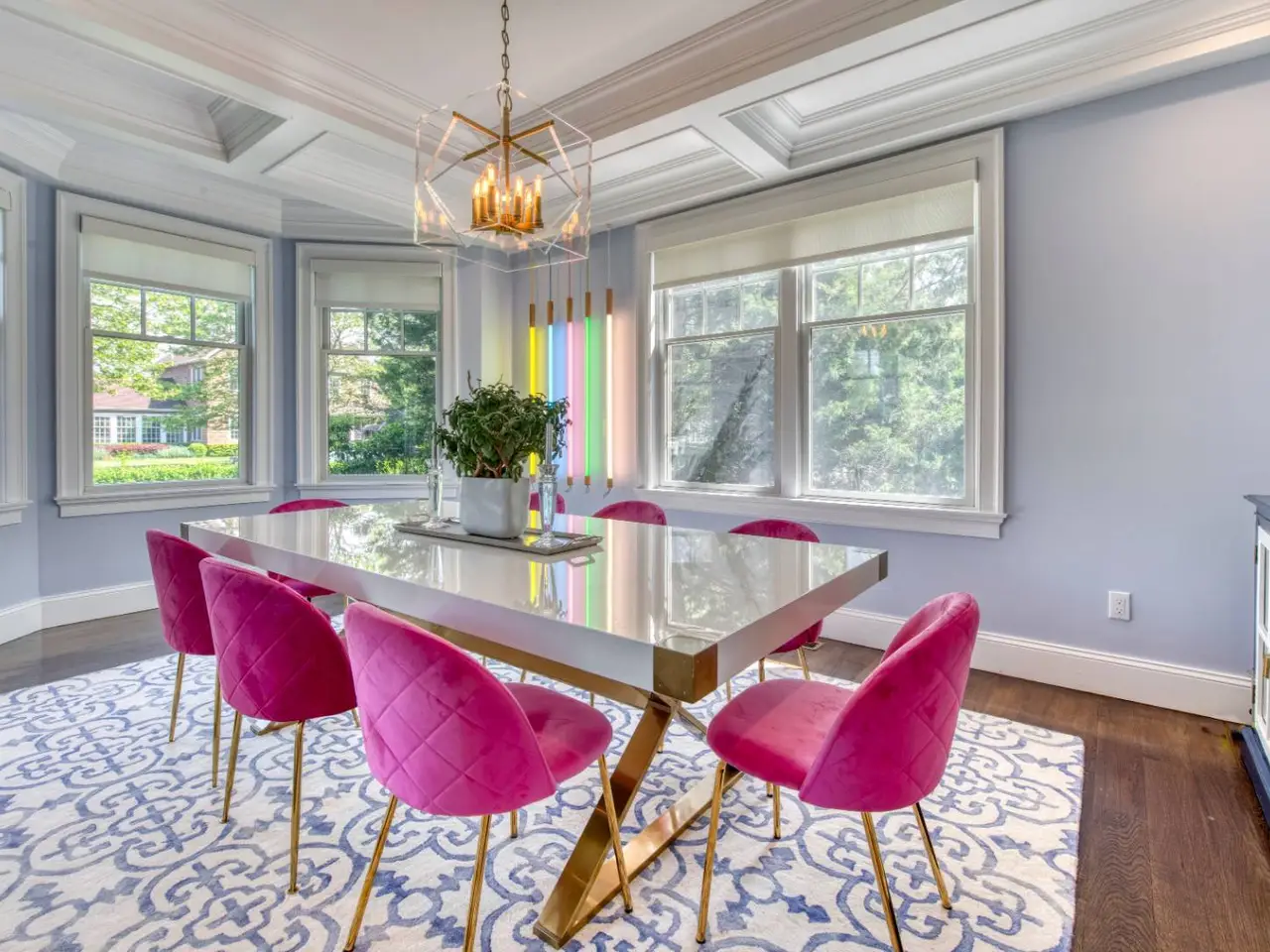 Formal dining room with coffered ceiling