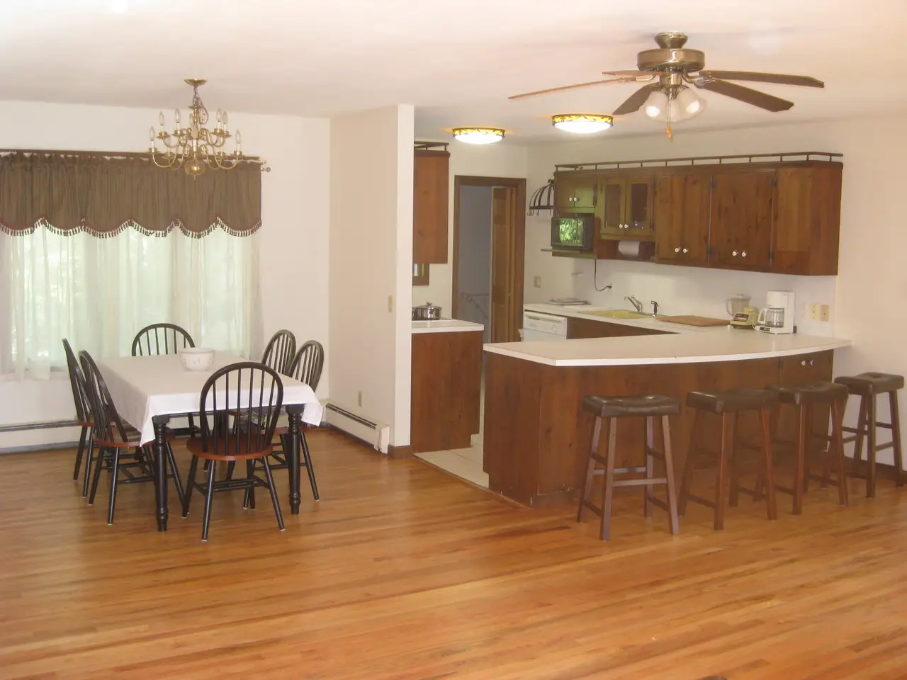 Rental Reg. # RP250481: This cedar sided ranch home is nestled on just over an acre on a cul de sac in a quiet Southampton community. Enter the spacious and open living room with dining room with its wood burning stove, then entertain onto over 350 square feet of decking that overlooks a new pool and acres of open town land. There are four bedrooms, two full baths, breakfast bar in the kitchen, full basement, and attached two car garage. The home features hardwood floors throughout. Listing ID: 735788