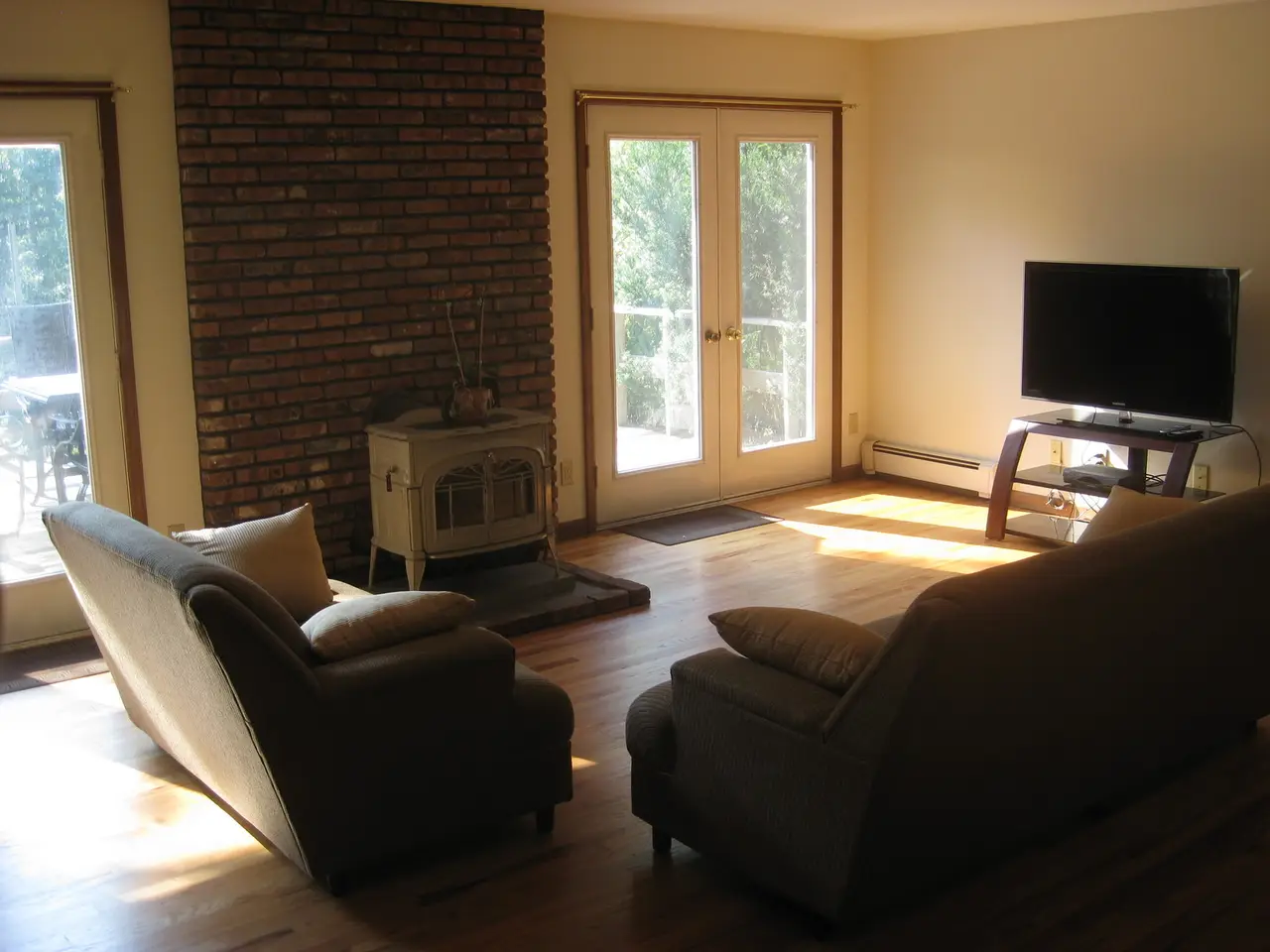 Rental Reg. # RP250481: This cedar sided ranch home is nestled on just over an acre on a cul de sac in a quiet Southampton community. Enter the spacious and open living room with dining room with its wood burning stove, then entertain onto over 350 square feet of decking that overlooks a new pool and acres of open town land. There are four bedrooms, two full baths, breakfast bar in the kitchen, full basement, and attached two car garage. The home features hardwood floors throughout. Listing ID: 735788
