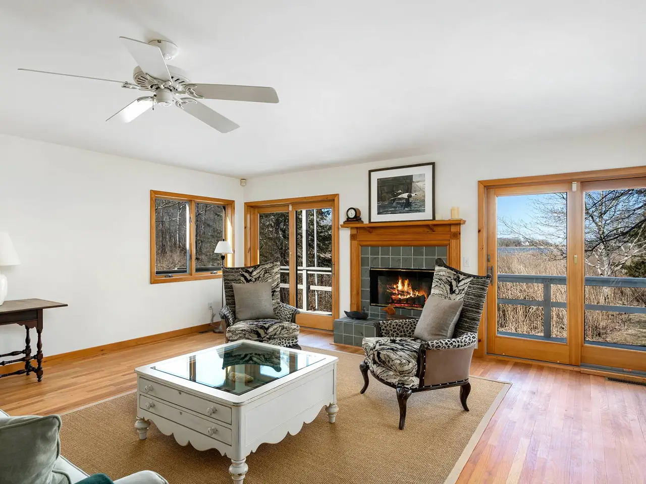 RP240645 - Enjoy tranquil water views and sunsets daily from this contemporary four bedroom, three and one half bath home. Open kitchen, living and dining area with cozy fireplaces make this a wonderful place to to entertain your summer guests. Take advantage of living on the water, one is able to moor a boat in Bullhead Bay in the summer with a permit. Located near 4 world class golf courses, Wolf Swamp Sanctuary and Scallop Pond Preserve this home is in a quiet and natural area to be enjoyed every day.