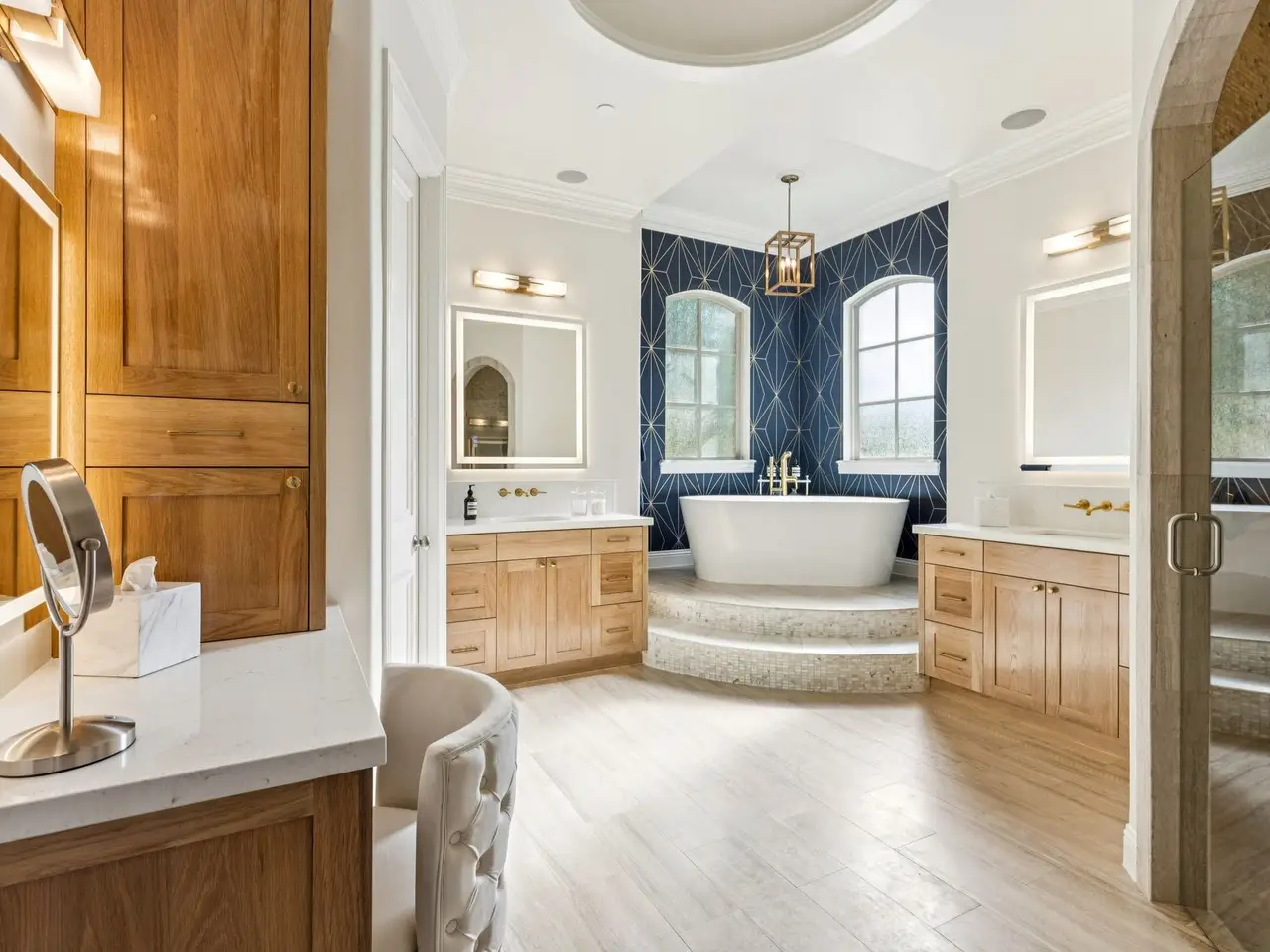 One of a kind Private Southlake Estate in Coveted Carroll ISD Backing to Pond & Greenbelt! Tucked away and nestled beside a lush greenbelt with sweeping views of a private pond and beautiful fountain, this exquisite Custom Estate offers the ultimate in Privacy, Luxury, and Convenience. Located in the heart of Southlake with easy access to Hwy 114 and just minutes from Southlake Town Square, this one-owner home is a rare gem in Carroll ISD. Thoughtfully designed with high-end finishes and an open-concept layout, this home features a show-stopping Kitchen with gorgeous countertops, a pebble ice maker, new Wolf range, Wolf steam oven, walk-in pantry and a spacious Prep Kitchen all while being open to the family room + 1st floor Media Room which makes it perfect for everyday life as well as entertaining. The formal Dining-Living boasts a serve bar with wine storage, bar refrigerator that makes it effortless for hosting. The main level also boasts a private Guest Suite and a recently updated Owner's Retreat that has a spa-inspired Bathroom, a custom walk-in Closet, and hidden storage. As you go up the sweeping Stairway you will find a private mezzanine level with a well appointed study with custom cabinetry, custom beams and gorgeous views to the lush lawn outside. Upstairs offers three spacious en-suite Bedrooms with large walk-in closets + hide away spaces and a generous sized Game Room. The oversized 2 car garage is just off the prep kitchen along with an expansive single car garage that includes a 10 door ideal for boat or RV storage along with additional storage. Step outside to your own personal Oasis with an outdoor Kitchen and Living area, gorgeous Pool with a vanishing edge, full pool bath and serene Views overlooking the private pond, fountain and greenbelt - creating the perfect backdrop for both everyday relaxation and grand entertaining. This is a rare opportunity to own a private, designer-finished estate in one of Southlakes most desirable locations.
