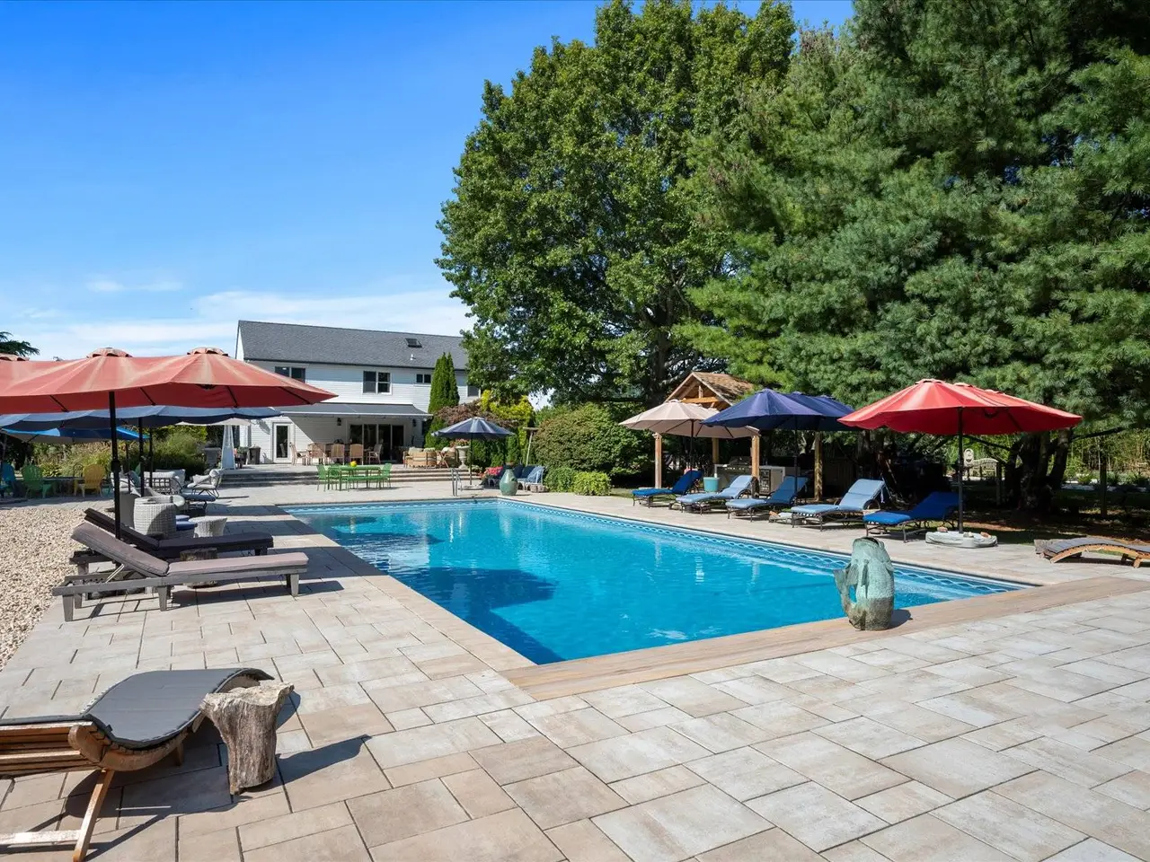 This recently renovated home offers 4 en suite bedrooms, including a ground floor primary suite, and a total of 5 and one-half baths. The sprawling, very private 2.4 acre property features resort-like amenities including a 20x50 heated salt water pool, fully equipped outdoor kitchen with multiple seating areas and more. Inside, the open floor plan flows from the living room with vaulted ceilings and a gas fireplace, to a dining room overlooking the outside patio, and a kitchen boasting a 9' wide quartz stone island. Perfect for entertainment and gatherings. The lower level includes a comfortable media center and game room. Sandy South Harbor beach on Peconic Bay, is at the end of the block. Close proximity to Southold Hamlet Center with it's charming shops, restaurants, numerous North Fork wineries and farms. Just a short drive to Greenport Village. Listing ID: 927160