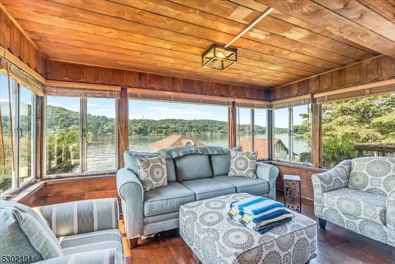 LAKE MOHAWK LAKEFRONT - Great location between the gates of the West Shore of Lake Mohawk along with a Boat House and Private Dock! This "Crane" style home is situated on level property, enjoy the expansive views all four seasons! Living Room with Beamed Ceiling and Stone Fireplace leads to Family/Recreation Room with wall of windows overlooking Lake Mohawk! Equipped Kitchen updated with Dining area and access to the oversized deck for outdoor enjoyment! Two Bedrooms and Full Bath complete the main floor. Second Floor - Bedroom, Multi-purpose room/storage and Updated Full Bath complete this level. Lower Level - Additional Office/Bedroom own entrance, Garage and Laundry Room. Property includes a Custom Boat House and Dock! Central Air, Natural Gas Heating! Lake Mohawk Country Club offers so much, beautiful Club House with Members Room, Ball Room for functions, Outdoor Dining, Tiki Bar, Playground, Beaches and more! Swim, Fish, Kayak, Boating, Water Ski and more! Stroll the Boardwalk and White Deer Plaza which offers an array of restaurants, ice Cream, and Shops! Close to major roadways, multiple Lakeland Bus Stops too! Less than hour from NYC. Come see Beautiful Lake Mohawk and all it has to offer all year round!