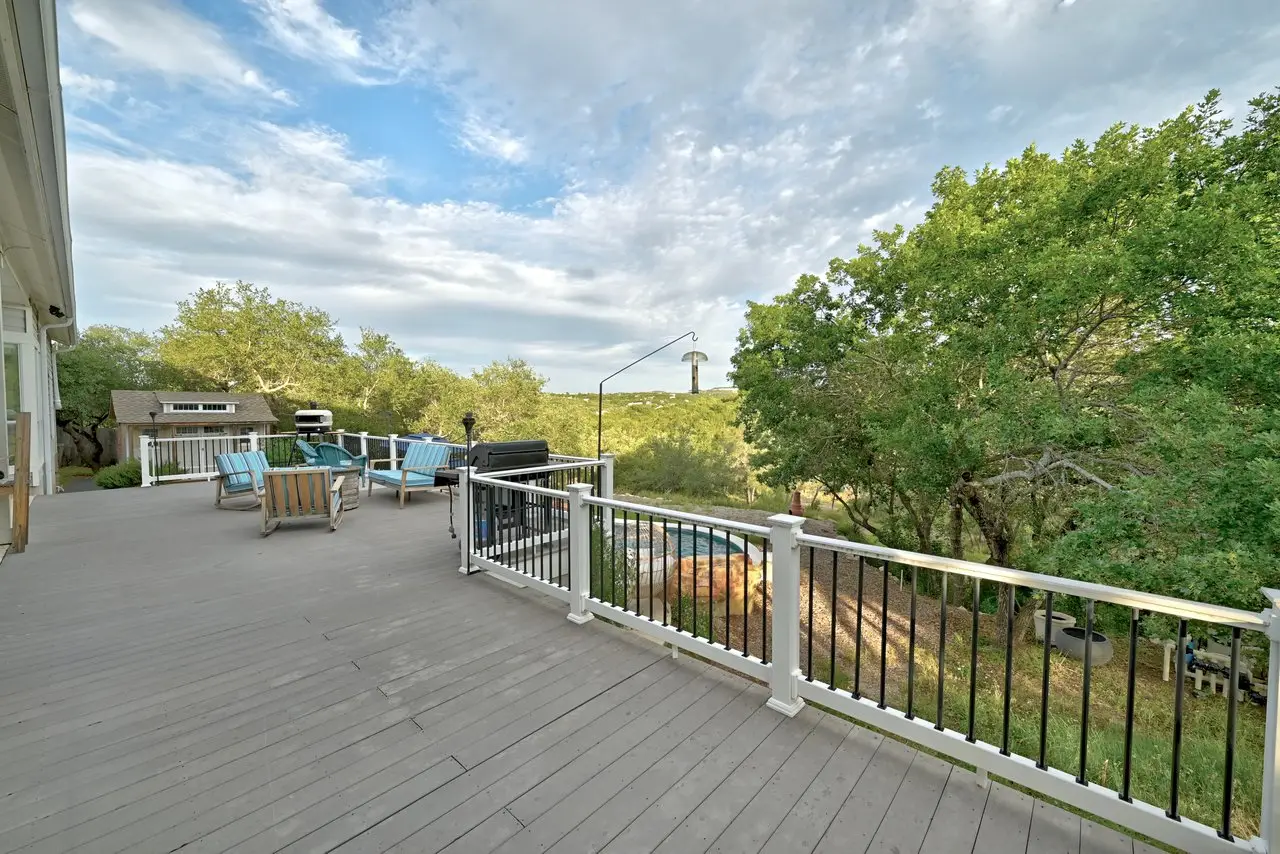 Beautifully UPDATED SINGLE-STORY near Bee Cave with panoramic Hill Country views, pool, creek, and 1.72 acres of utter privacy and serenity! Thoughtful updates and natural beauty combine in this low-tax, convenient community with private Lake Travis access. A natural rock wall and trellis-covered path lead to the front door, where a charming fountain welcomes you. Inside, abundant natural light fills the open layout, featuring two flexible spaces—ideal for offices, sitting areas, or formal dining. One includes a walk-in closet and can serve as a 4th bedroom with access to the guest bathroom. The open kitchen/living area is lined with windows capturing sweeping views and seamless indoor-outdoor flow. The kitchen boasts light gray cabinetry, honed marble counters, farmhouse sink, reverse osmosis filtration, wine fridge, and a commercial-grade 6-burner + griddle gas range with double ovens. No carpet—just upgraded lighting and flooring throughout. The private owner’s suite features a spa-like bath with a tiled rain shower, soaking tub, dual vanities, and walk-in closet, plus an attached Zen den for yoga, nursery, or office. The guest/kids wing has its own flex space for a playroom or another office option. A newly added "moody mudroom" enhances functionality and style with custom storage and designer wallpaper. Outside, enjoy a resort-style backyard with a quartz-plaster UV-purified pool, splash pad, and expansive patio. Sustainable living is supported by a raised garden with drip irrigation, private well, rainwater collection, tankless water heater, and water softener. The oversized 3-car garage offers a workshop area, decked attic storage, and additional storage beneath the back deck. All just 10 minutes from Hill Country Galleria, in acclaimed Lake Travis ISD, with ~1.6% tax rate.