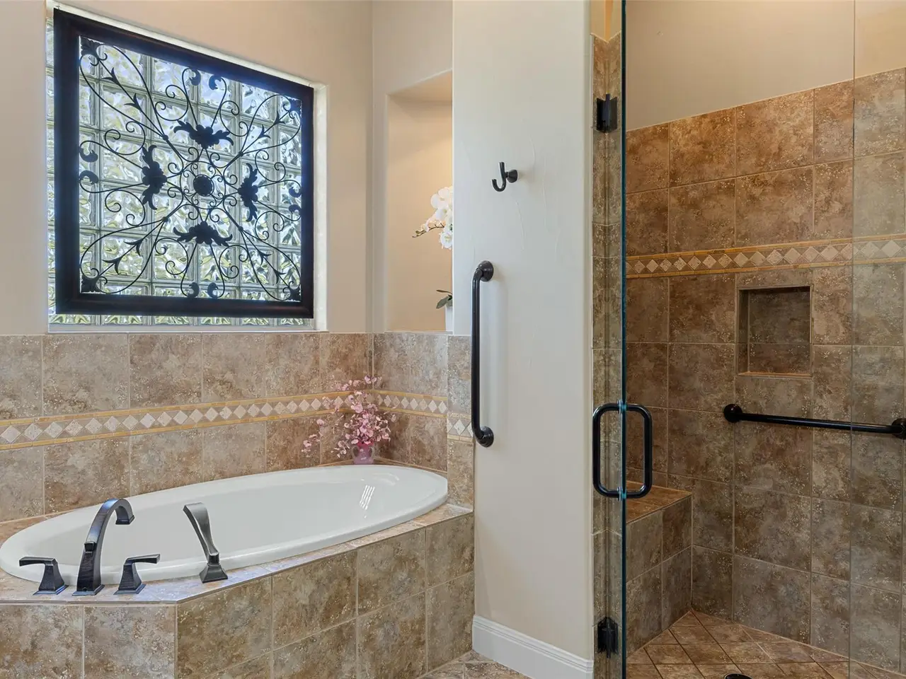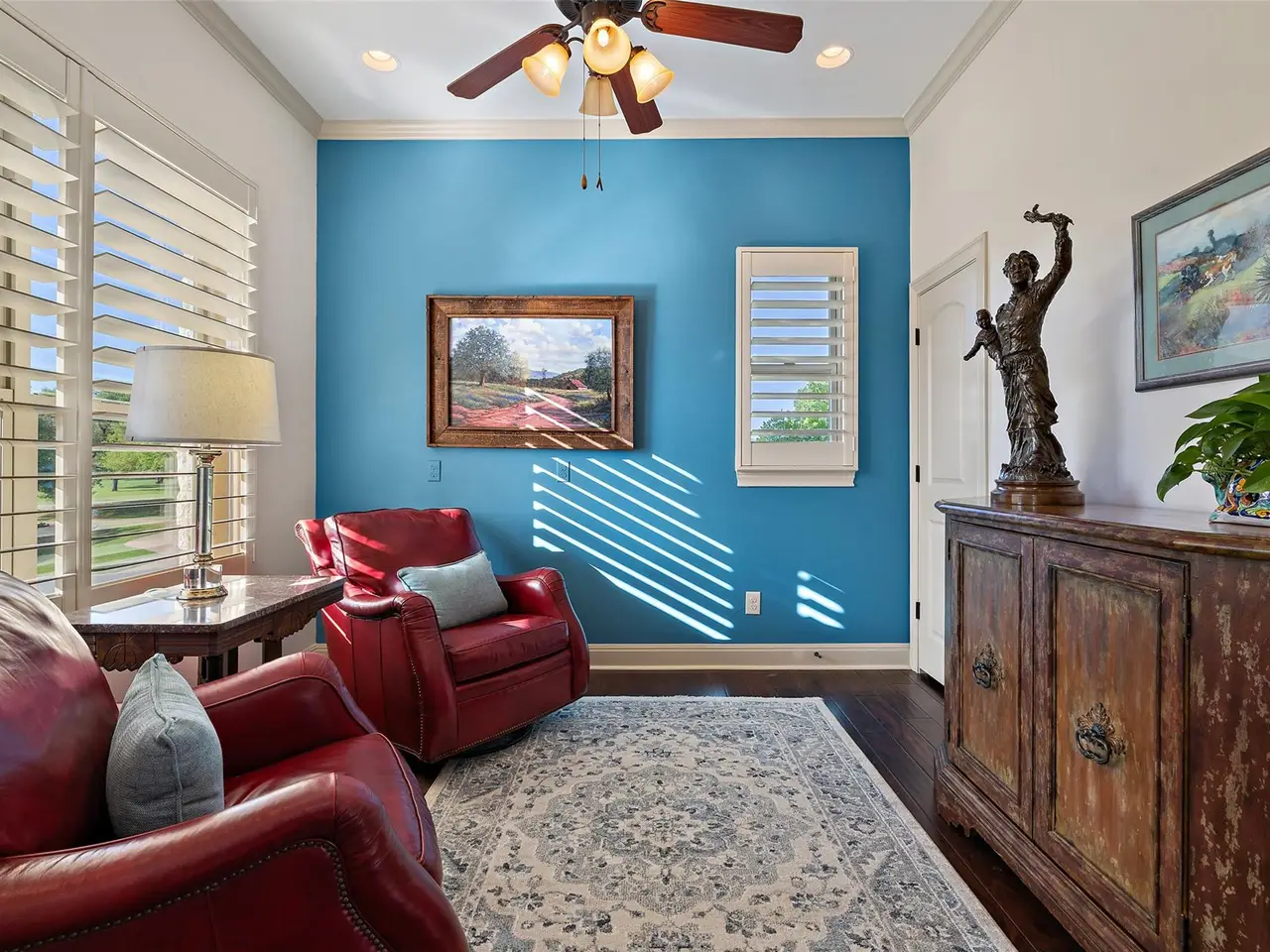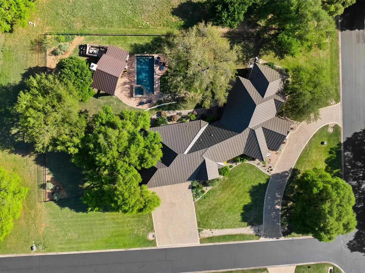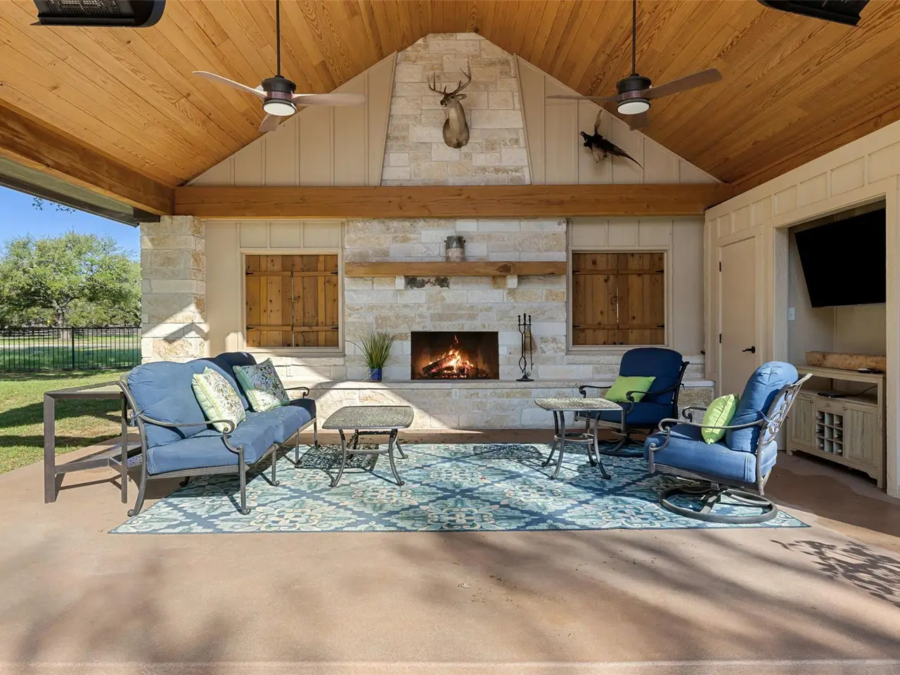 Located in the prestigious gated and guarded Barton Creek Lakeside community, this single-story custom home offers a seamless blend of Hill Country charm and modern comfort. Situated on a large 0.68-acre corner lot, the property is surrounded by mature oak trees and features a wide paver driveway and spacious covered patios perfect for outdoor living. The open-concept living and kitchen area is highlighted by a large center island, granite countertops, and wood shutters throughout. With an in-law floor plan and wide entryways, the home is designed for accessibility and ease of living. One of the bedrooms, located privately at the rear of the home, is ideal as a guest suite, office, or hobby space and includes its own bathroom & outdoor patio. Additional features include a 3-car attached garage, plantation shutters, a laundry room with utility sink, and beautiful wood and brick flooring. The expansive covered back patio and fenced yard provide a tranquil setting to enjoy the peaceful Hill Country surroundings. Barton Creek Lakeside offers access to a private country club with an 18-hole Arnold Palmer-designed golf course, fitness center, tennis courts, Olympic-sized pool, and Lake Travis access. Just a short drive to Spicewood and the surrounding Hill Country, this home combines quality construction, generous space, and resort-style amenities in a quiet, upscale community.