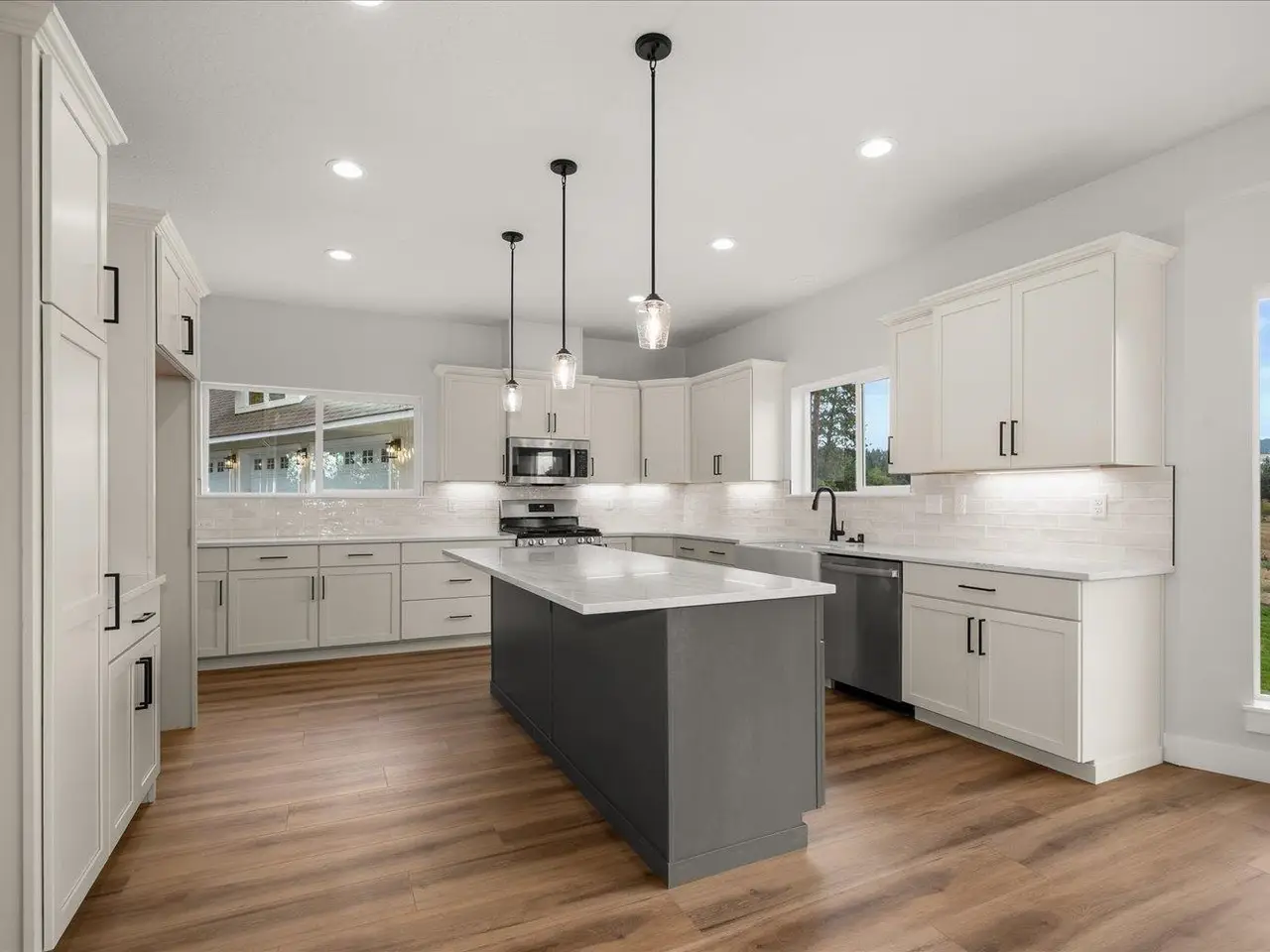 New white kitchen with huge island