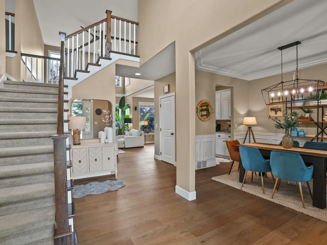 Greeted with an open & inviting entryway, this home offers 6 bedrooms, 4 bathrooms & tasteful updates. With a thoughtful & ideal floor plan, the natural light gleams throughout. The gorgeous kitchen is a chef‘s dream, providing dbl sinks, updated appliances, & plenty of hard surface counter space for creating your best recipes. Directly connected to the kitchen is a large formal dining area to enjoy those perfect delights! Entertain in the main level great room or for a more secluded space there’s a living area on the 2nd floor or a basement living area ready for your theater system. Plenty of spacious bedrooms to choose from, but the primary suite is amazing with a walk-in closet, full bathroom & private deck to enjoy that morning coffee. The fully fenced backyard oasis caters to anyone, with gorgeous landscaping, patio area, & sports court, all tucked away on an oversized corner lot. The attached 3 car garage access is ideally connected to a cul-de-sac with a convenient location that suits all your needs!