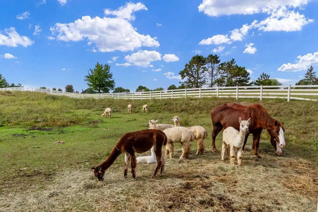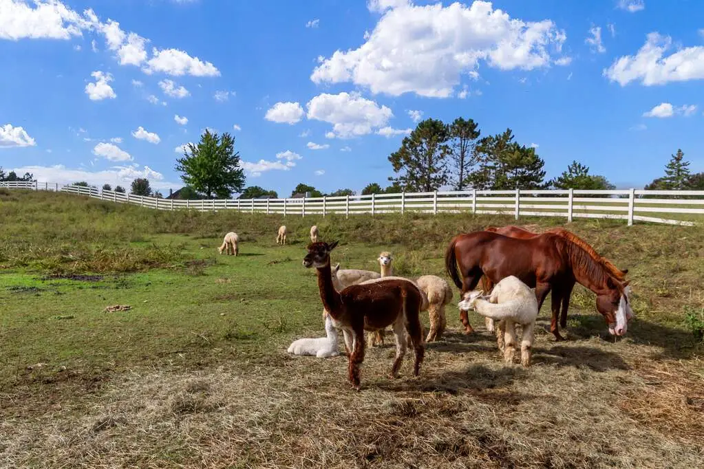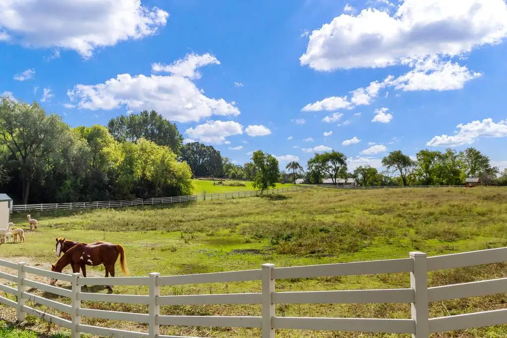 Welcome to one of Spring Grove's most captivating equestrian estates, where luxury, functionality, and natural beauty come together on over 9 acres of wooded and pasture grounds. Designed for those who dream of both refined living and wide-open space, this property is truly a destination. Your first stop is a versatile outbuilding thoughtfully designed with box stalls for small animals, generous storage, a large garage which can hold up to 14 vehicles and a remarkable event space. Complete with a full kitchen, two half baths, and expansive room for gatherings, it's the perfect setting for hosting celebrations, weddings, or private retreats. Opposite that are 2 pastures with their own barns for additional animals. The working farm currently has horses, goats, sheep, alpacas, ducks and chickens and a full time caretaker. The outdoor areas also consist of full size Italian bocce court, volleyball court and large children's playground. The entire property has European style lamp posts throughout which illuminates the entire property from front to back. The main residence, an impressive 9,000 square feet, offers an exceptional lifestyle. With 5 spacious bedrooms and 5 bathrooms, the home is built for comfort and entertainment. The home is built off a ravine which allows it beautiful views for miles of the valley. A full size theatre room invites movie nights at the highest level, while a dramatic wet bar with a custom live-edge wood top sets the stage for evenings with friends. A large party room all decked out in cedar wood can hold parties for up to 150 guests. Hidden behind a speakeasy-style entry lies an impressive wine cellar and tasting room - a true showstopper that exudes sophistication and charm. All custom built wine racks, a 20 foot live edge dining table, and custom built designed ceilings give it that true cave feeling for up to 20 of your friends. House was recently remodeled from top to bottom, all HVAC are new. Roofs have all been redone recently. State of the art whole house water filtration and softeners have recently been installed. Master bath has been recently remodeled with all Italian marble and views for miles from the bedroom. Entire property has been wired for sound, which includes both indoor and outdoor speakers to listen to your favorite music. Owner's private office has been completely restored by wood artisans to bring back the original feel of the wood from many years ago. Every detail is elevated by the backdrop of nature. Backing directly to Chain O'Lakes State Park, the property's entire back line touches the 7000 acre state park. Which offers hunting, fishing, and hiking. This property is truly one a kind offering unmatched privacy and panoramic views that stretch for miles. Whether enjoying the wooded trails, riding your horses across the pastures, or simply watching the sunset from your private retreat, this estate offers a lifestyle that is both extraordinary and rare. Call today for a private showing of this spectacular estate!