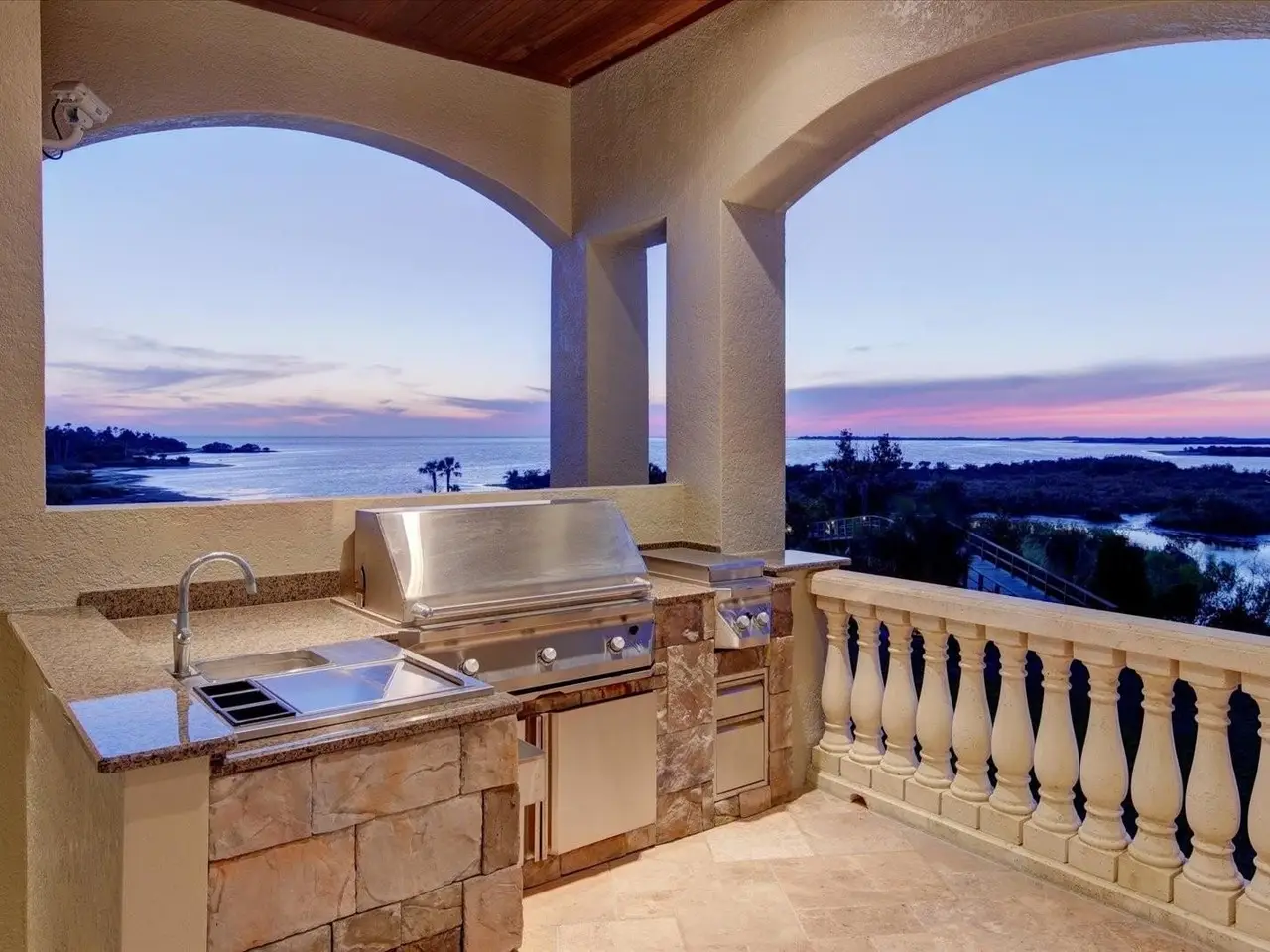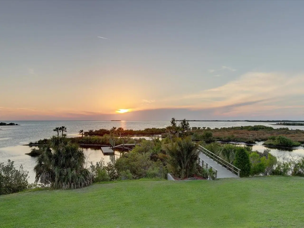 BUILT TO WITHSTAND A CAT 5 HURRICANE, LIVING SPACE OF THE HOME COMPLETELY UNTOUCHED BY HURRICANE HELENE! Some repairs being made to outbuildings and garage doors below the home. MOVE IN READY! TROPICAL GULF OF MEXICO LUXURY ESTATE – This stunning Gulf front property, comprised of over 23 acres, with over 1,100 feet of waterfront on the Gulf of Mexico, with incredible water views from every room is a one-of-a-kind opportunity. The residence is comprised of 5 bedrooms and 5/2 bathrooms in over 8,950 sq ft of living area. Bathed in sunlight, the split plan residence comprises a large entrance hall, living room, generous dining room, butler’s pantry, gourmet kitchen, 350-bottle wine cellar, large walk-in pantry, informal dining area, family room, billiard room, library, professional built 28 seat home theatre, exquisite master suite, opulent en-suite, all showcasing breathtaking views of the Gulf of Mexico. Gated, safe & secure, with a generator that will run the entire home for a month. Outside, a magnificent west facing terrazzo terrace extends the entire length of the home, with an outdoor kitchen with breathtaking Gulf views. Outdoor highlights also include a boat ramp, rustic boat house, a historical rustic guest house, a bridge which leads to an island with a floating boat dock, and double (lighted) tennis courts all amid the beautiful coastal wilderness. A car collectors dream featuring a 40+ car garage, with height for car racks and 12 garage doors, including a utility door, for Helicopter or RV and spans the entire space under the home. The 30,000 sq. ft. motor court makes landing a helicopter easy! The region is a prime spot for water sports and fishing. One of Florida’s most captivating Gulf Coast homes, this private, opulent home is cleverly designed to maximize its position overlooking the Gulf of Mexico.