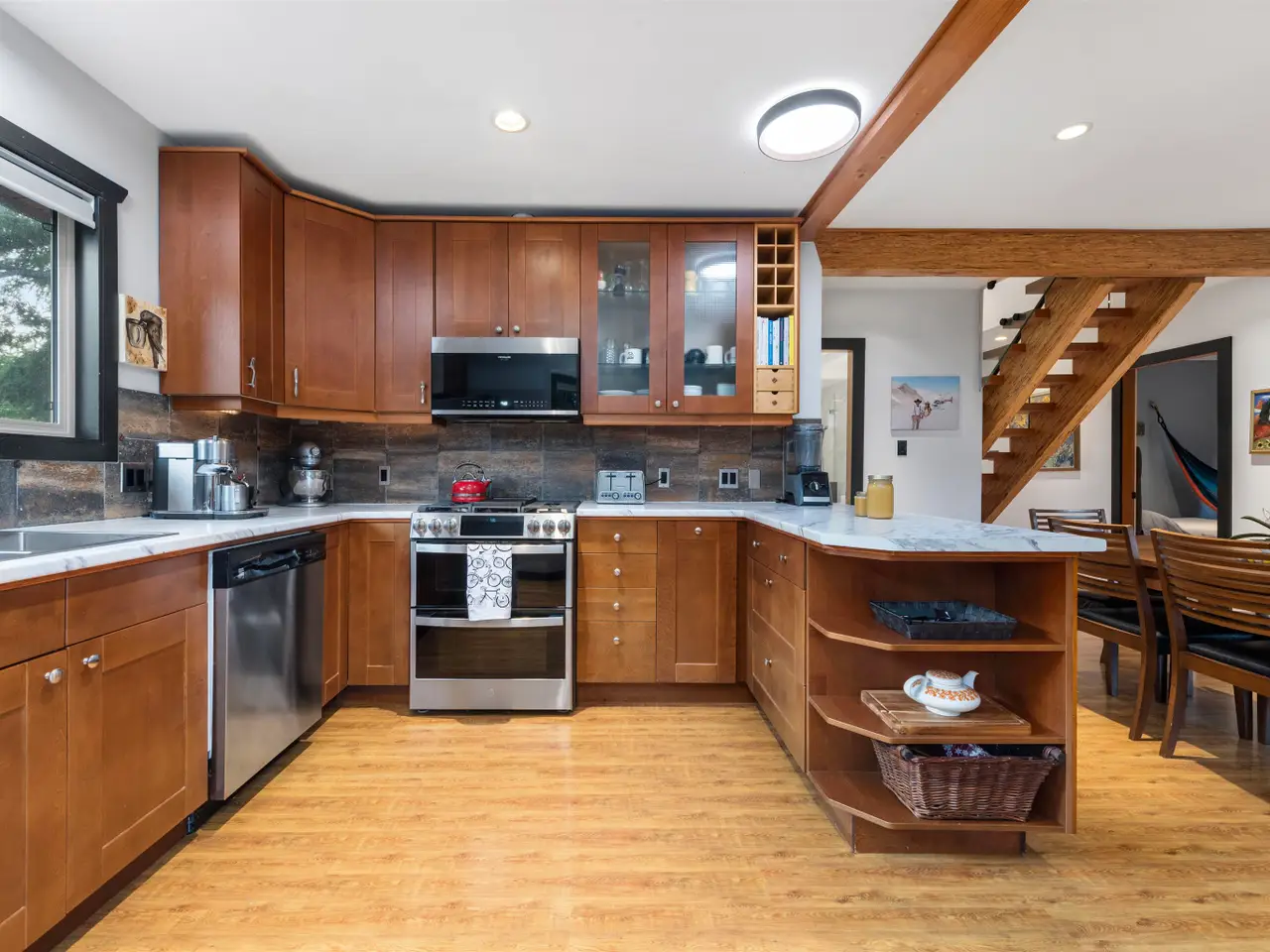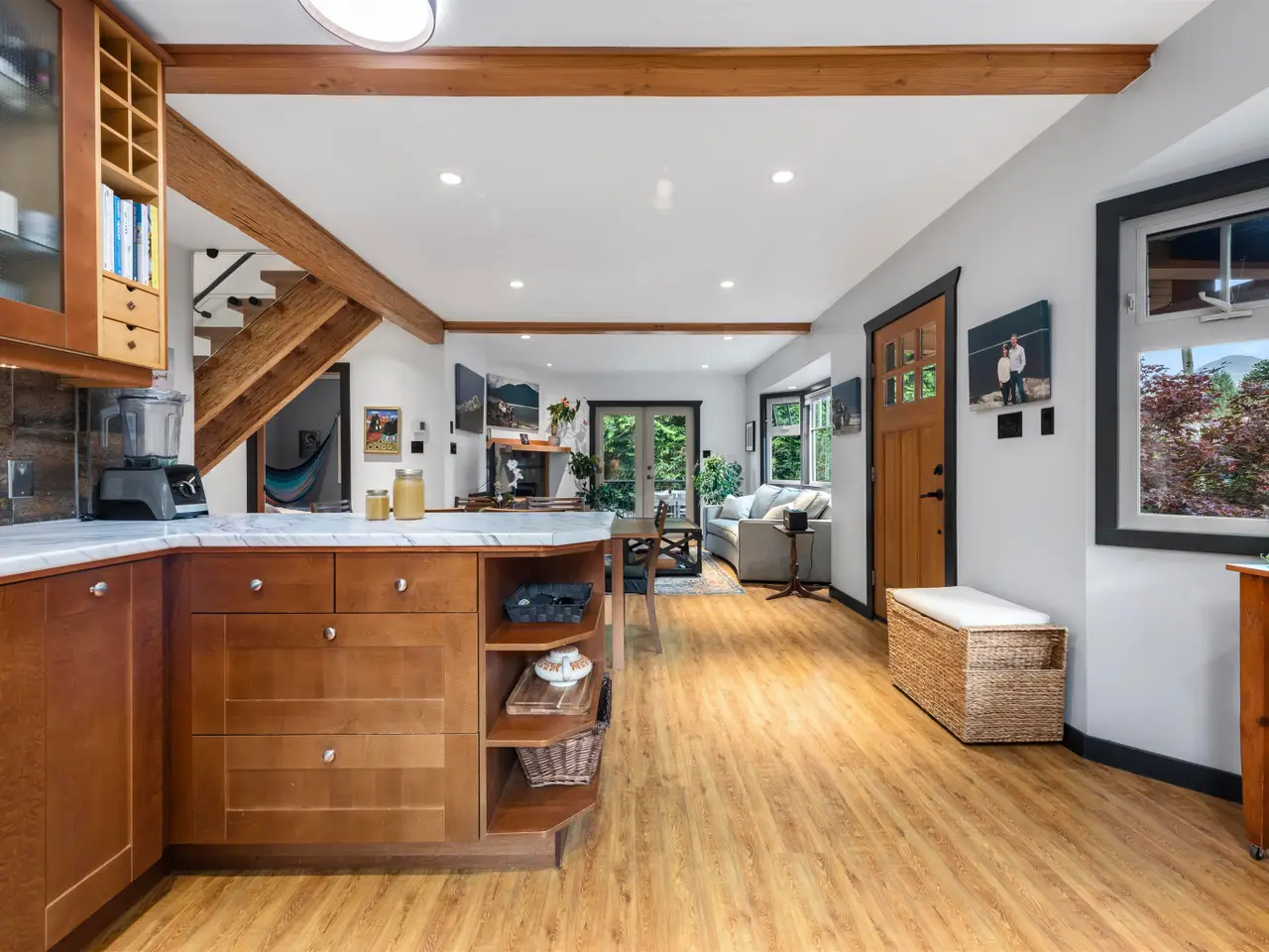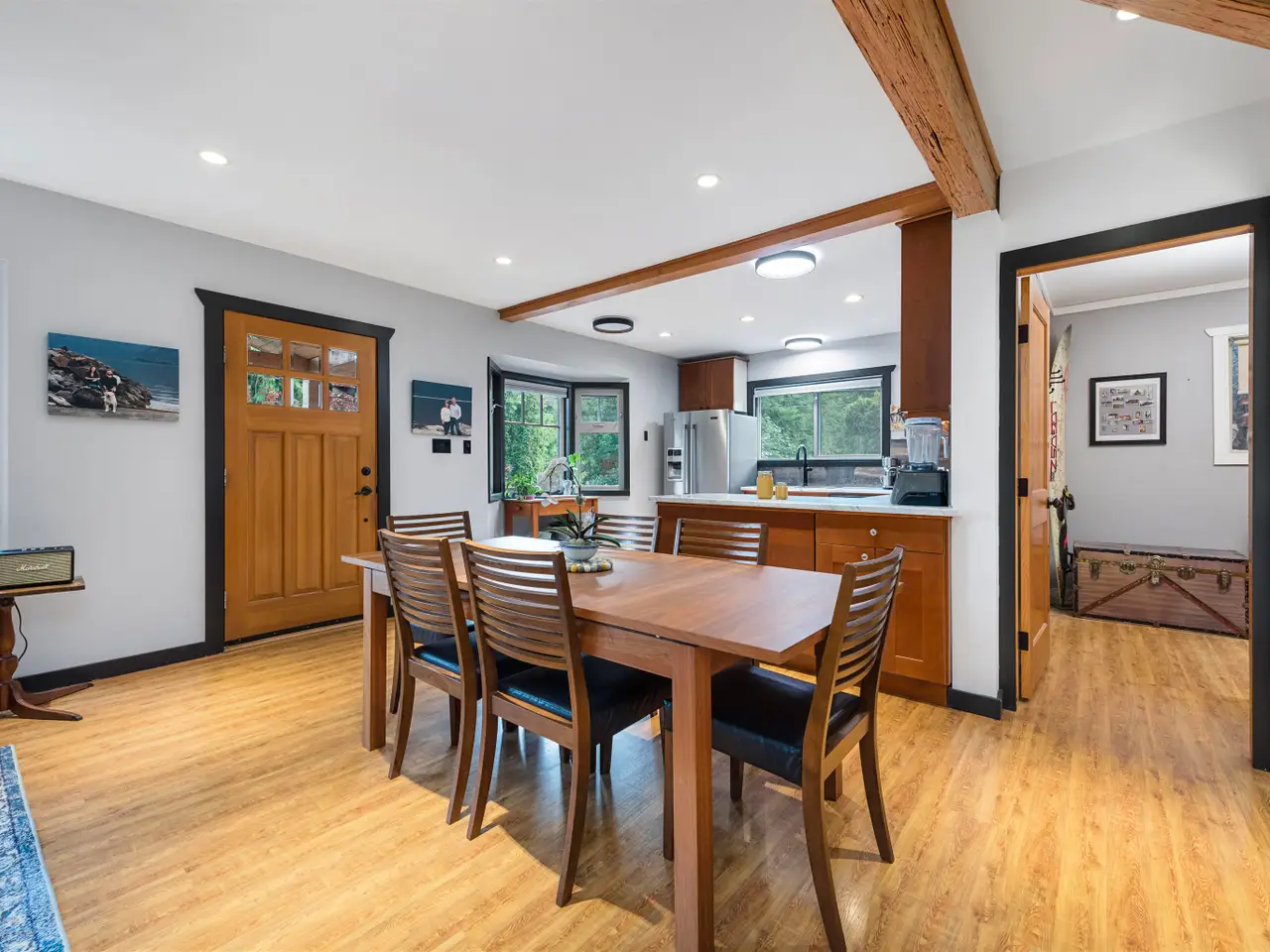 Exposed timber beams