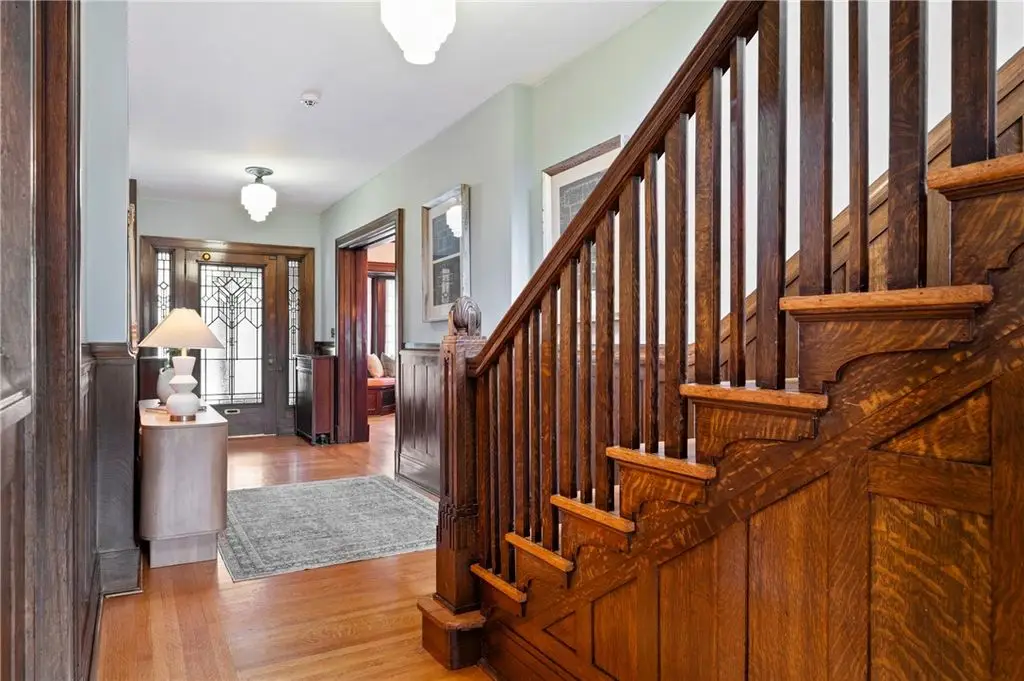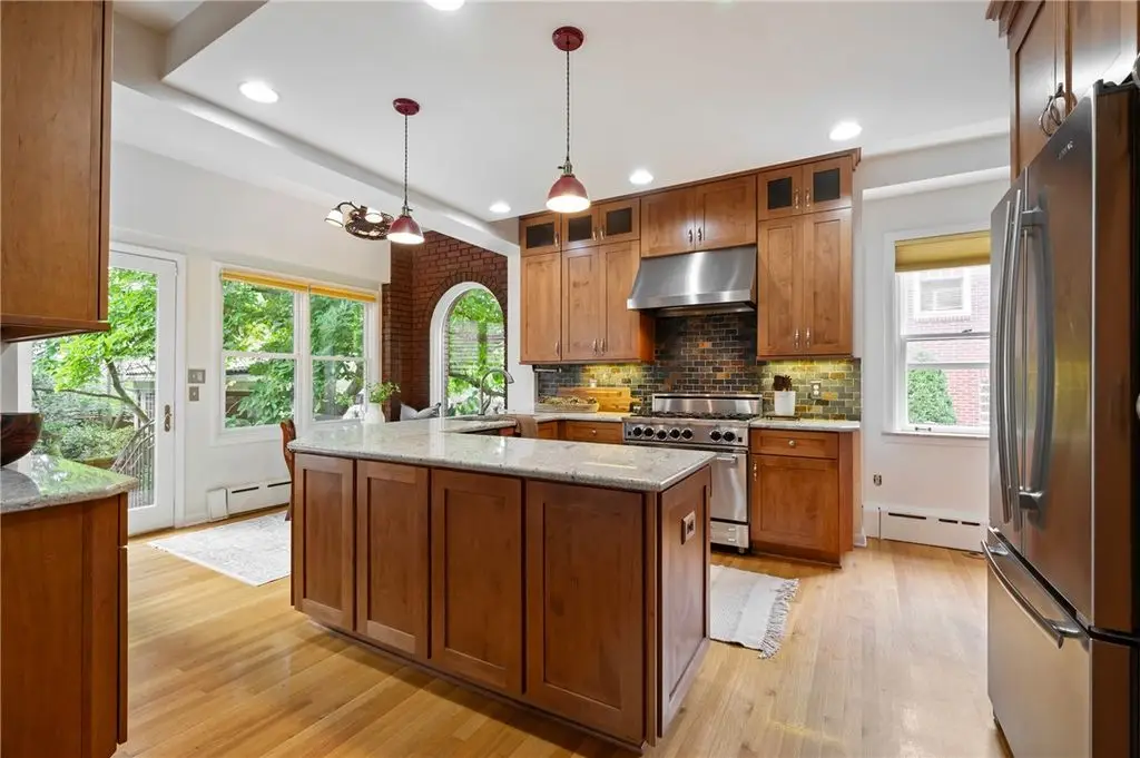 This gorgeous brick center hall home graciously unites historic architecture with modern refinement. Incredible location just steps from the vibrant cafes, boutiques, & restaurants of Squirrel Hill, this stately home offers enduring curb appeal, a charming front porch, & more than 4,500 square feet of thoughtfully updated living space. Inside, 6 bedrooms & 4.5 bathrooms provide comfort & versatility. The main level is ideal for both entertaining & daily living, featuring elegant formal rooms, a spacious den, & a meticulously renovated kitchen. The expansive eat-in kitchen boasts a BlueStar range, abundant cabinetry, & sleek finishes that complement the home's original character. The finished lower level offers a flexible space for recreation or casual gatherings. Outside, an enclosed backyard & lovely patio create a private retreat. Blending classic charm with contemporary comfort, this exceptional property is nestled in one of Pittsburgh's most walkable & desirable neighborhoods.