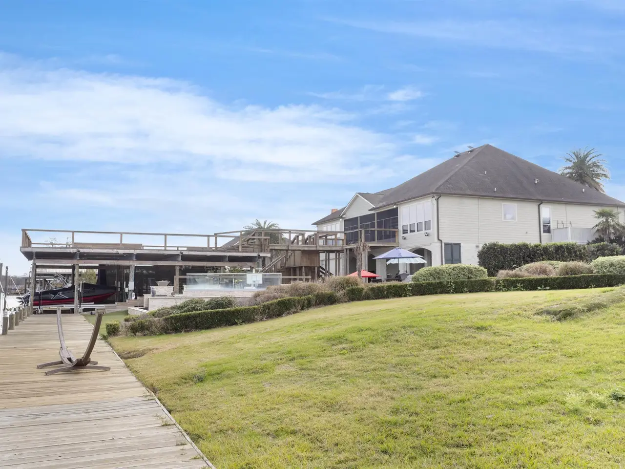 It’s All About the Water Luxury Waterfront Living on the Diversion Canal If your dream home starts with the water, this is the one. From the panoramic canal views to the private boat lifts and tranquil surroundings, this 5-bedroom, 4.5-bath waterfront estate delivers the ultimate in coastal-inspired luxury and outdoor living. Nestled on the peaceful Diversion Canal, this stunning residence offers peacefulness and seclusion, with no neighbors across the canal—just endless water views and natural beauty. Start your mornings with a boat ride from one of your three private lifts, and end your evenings soaking in the hot tub, watching the sun dip below the horizon. The backyard is a resort in itself: Sparkling infinity pool with a tanning ledge Relaxing hot tub, Fire pit for cozy nights, Expansive screened-in patio, Fully equipped outdoor kitchen made for entertaining, Oversized deck with panoramic views—your favorite new coffee spot Inside, the home is designed to complement the setting with floor-to-ceiling windows that frame water views from nearly every room. The open floorplan flows effortlessly, into 2 Master suites and each offers a spa-like en suite for a personal retreat feel. The game room on the lower level adds the perfect dose of fun and flexibility. Unique touches like a double-sided garage that opens toward the water and an optional third lot for added boat slips or guest parking make this property as functional as it is breathtaking. Whether you’re a boating enthusiast, an entertainer, or someone seeking peace on the water, this property is your dream realized. At the Diversion Canal, it’s all about the water—and this home lets you live it fully