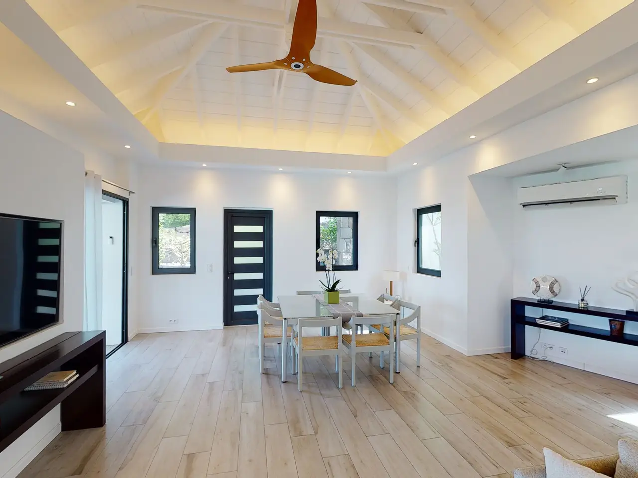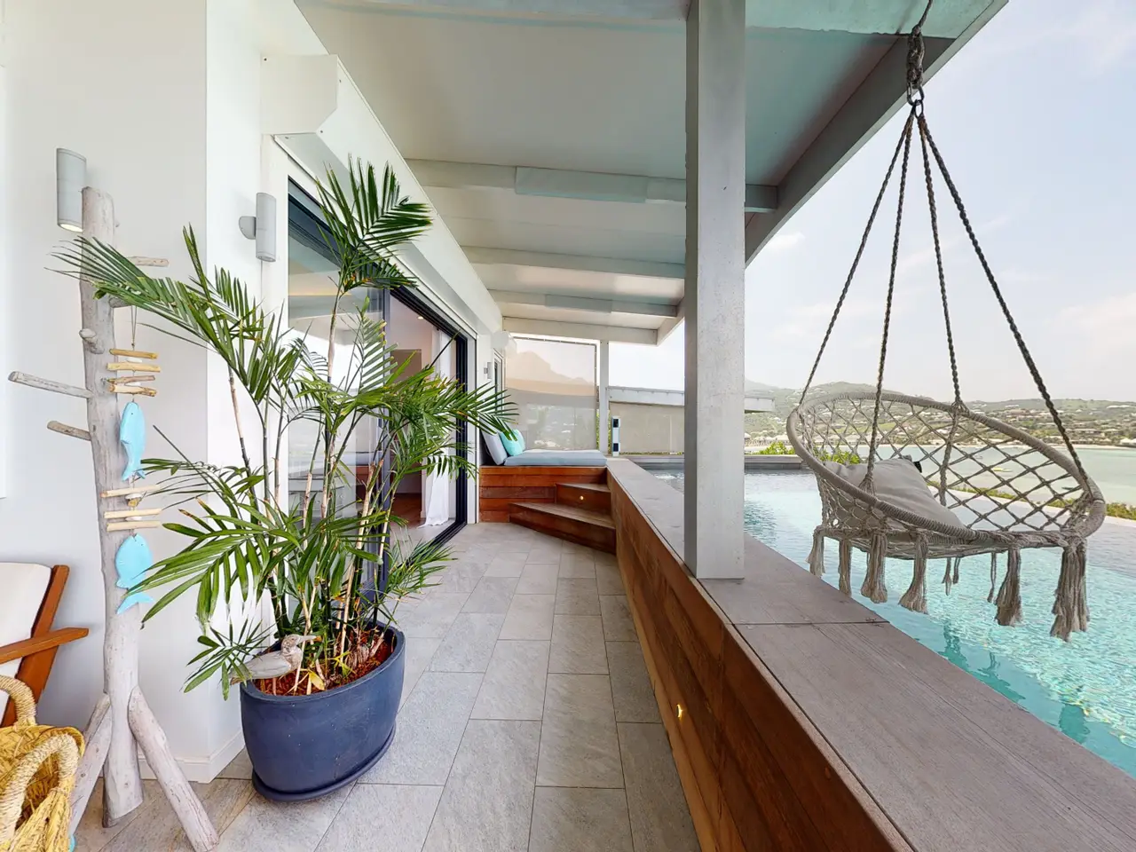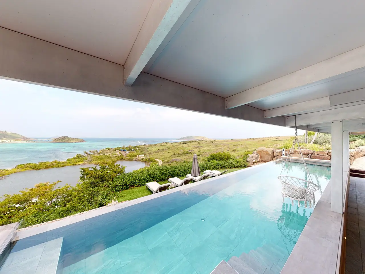 Welcome to the prestigious Villa Yolo, a stunning multi-level sanctuary for sale on the exclusive island of St. Barths. This architectural gem boasts three meticulously appointed en suite bedrooms, making it an ideal purchase for those seeking a luxurious escape in a world-renowned destination. As you approach Villa Yolo along a secluded lagoon-side road, you're transported into a realm of tranquility and luxury. The villa's heated pool, a remarkable feature, extends the entire width of the property, reflecting the vibrant blues of the Caribbean Sea. The design harmoniously blends indoor and outdoor living, with expansive white interiors highlighted by vivid turquoise and blue accents, elegant tiling, and warm wood touches. The high vaulted ceilings in the living area enhance the airy, open feel, inviting relaxation and social gatherings alike. The living space, designed for both comfort and aesthetic appeal, includes plush seating that faces the stunning outdoor views of the deck, pool, and sea. Adjacent to this, the open-plan kitchen is fully equipped to cater to culinary enthusiasts, alongside an indoor dining area perfect for intimate meals. The option for al fresco dining on the shaded deck offers a delightful alternative for enjoying meals outdoors. Privacy and exclusivity are paramount at Villa Yolo. Two of the bedrooms offer serene ocean views and are sanctuaries of peace, each with its own private terrace or garden area. The master bedroom, with its sweeping sea vistas and king-sized bed, promises a restful haven, while the remaining bedrooms provide queen-sized accommodations, each with Apple TV, air conditioning, and a private en suite bathroom. Villa Yolo is more than just a home; it's a lifestyle investment in one of the most coveted locations worldwide. Embrace the opportunity to own a piece of paradise in St. Barths, where luxury, comfort, and breathtaking beauty come together seamlessly.