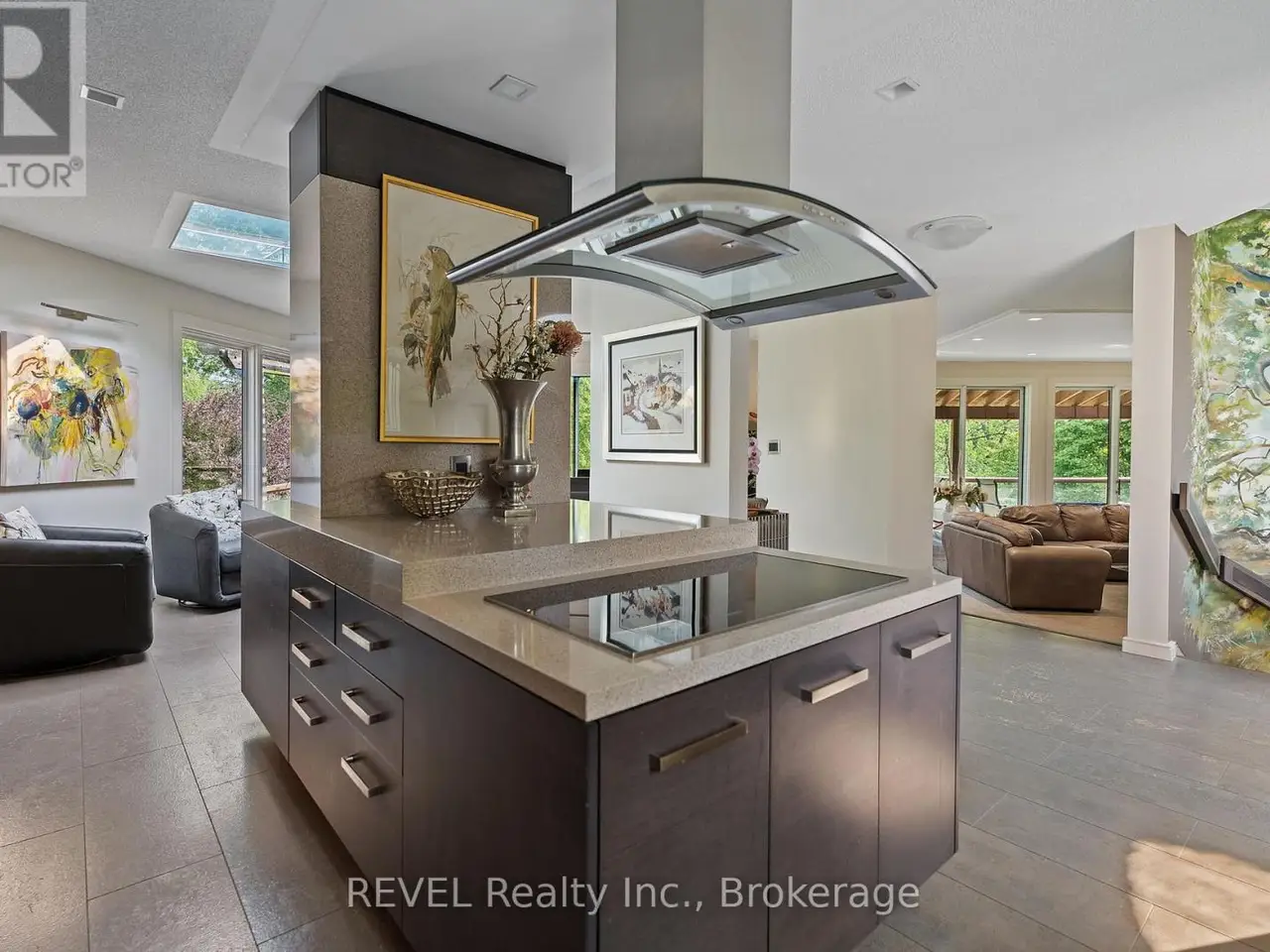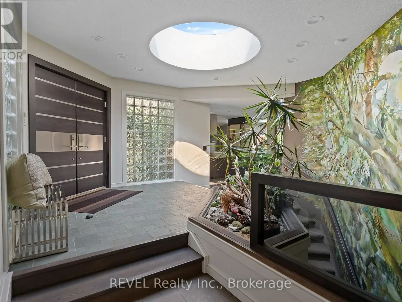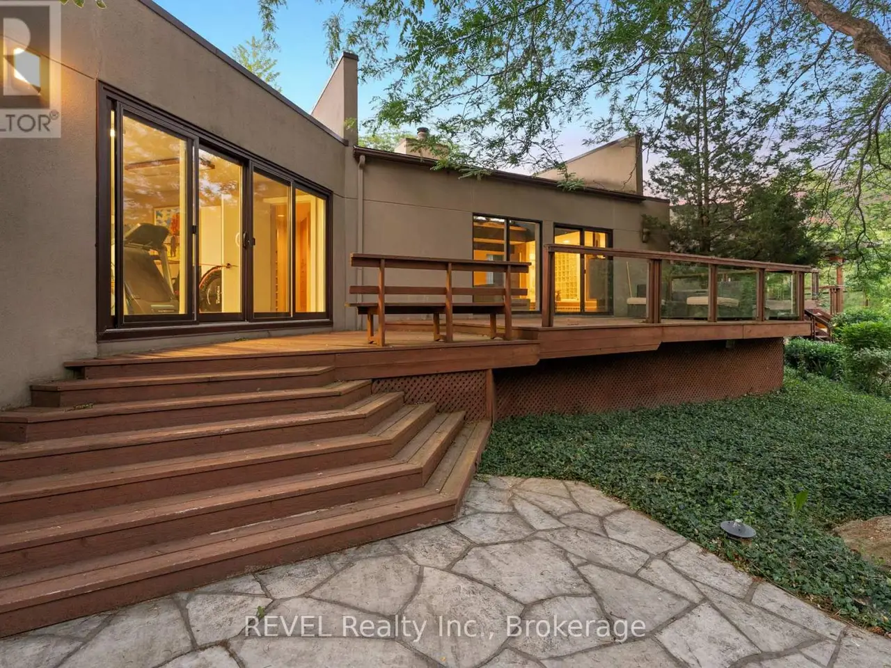 Iconic luxury living locally renowned as 'The Driftwood' emerges from resplendent landscaped acreage on exclusive Decew road in St. Catharines, one of the most sought after and elite areas in the Niagara region. Situated in the midst of legendary Carolinian trees in the most tranquil of pastoral settings, this architecturally envisioned L-shaped bungalow offers escarpment views from every angle while hosting a fluid, sprawling floor plan seamlessly exiting to a virtual paradise of manicured gardens. Featuring separate primary bedroom with elevated ensuite privileges and appending exercise and office rooms, all with relevant views of the natural flora outside, this unique listing also offers a modern open kitchen anchored by a chef's choice of high end Miele appliances. Perfect for family gatherings and designed to accommodate any entertainment function, descend to a full walkout lower level that hosts, without exaggeration, a fully imagined Scottish pub with customized pool room and furniture, oak bar, and stain glassed accents to ideally characterize this exceptional living space. Venturing out from the walkout lower level from a recreation room, which also features a separate bathroom and sauna incorporating the possibility of in-law capability or nanny suite privileges, walk the extensive stone pathways throughout the 10 acre property, pass the gated spa designed pool area, before eventually strolling upon a fully updated and renovated separate, 1800sq.ft., guest home with four car garage. Buying two luxury homes for the price of one set on an idyllic landscape in the heart of the Niagara region and wine country, with exceptional proximity to golf courses, Brock University, wineries, new hospital, shopping centres, restaurants, the Meridian Centre, Ridley Private School and the downtown core of St. Catharines, only magnifies the majesty of such a setting and location. (id:7434)
