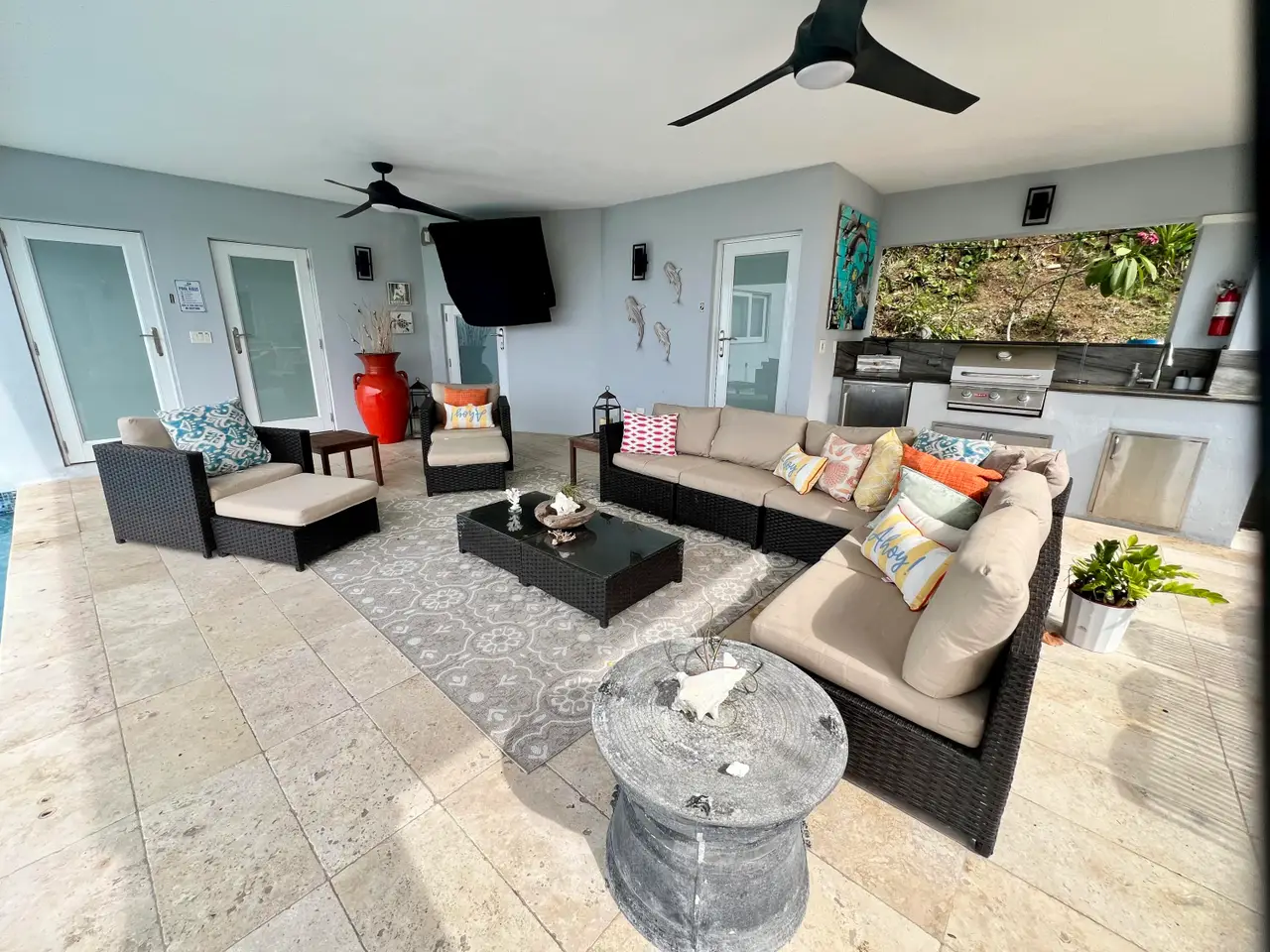 Experience Caribbean living on the lush North Shore with this hillside retreat at 195 La Vallee. The main home offers a custom kitchen, airy living spaces, and seamless flow to a covered gallery, perfect for indoor-outdoor enjoyment. The property includes an infinity pool, built-in grill patio, and a 2-story guesthouse with two en suite bedrooms. A private 2BR/2BA apartment below, complete with its own hot tub and entrance, enhances the rental potential. Just minutes from Cane Bay's renowned dive sites, scenic beaches, and vibrant restaurants.Welcome to your North Shore oasis at 195 La Vallee, where striking views, thoughtful design, and income potential converge. Tucked into the hillside, this property offers an ideal blend of privacy and convenience, with quick access to Cane Bay Beach one of St. Croix's most scenic and lively coastal areas, known for world-class diving, oceanfront dining, and a friendly island atmosphere.