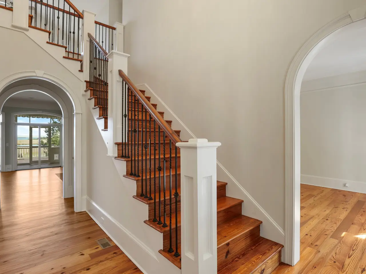 Located at 381 Fripp Point Road, this stunning Lowcountry home offers over 4,300 square feet of luxurious living space with breathtaking views of the marshes & deepwater of Coffin Creek & the Morgan River. Enjoy spectacular vistas of the southern tip of the Ace Basin, Edisto Island, and Morgan Island, making this a truly remarkable waterfront property. The home features a spacious and open layout, with the primary suite conveniently located on the first floor. The bedroom has a screened in porch and overlooks the stunning view. The primary bathroom offers a luxurious steam shower, a walk-in whirlpool tub, and elegant fixtures. The large gourmet kitchen boasts custom honey maple cabinets, granite countertops, Subzero and stainless steel appliances, as well as a large bar area in the great room, complete with a new ice maker, wine refrigerator, and sink perfect for entertaining. The great room includes a gas fireplace and offers a seamless connection from this room to the deck to the expansive outdoor scenery. Flow to the beautiful living room and formal dining room for extra entertainment areas. Upstairs, you'll find four freshly painted and newly carpeted bedrooms, 2 full baths and a spacious common area. The interior has been freshly painted and features newly refinished heart pine floors throughout. The primary bedroom has a screened in porch and overlooks the stunning view. This home is designed for convenience, with an elevator providing easy access from the garage to the top floor, full house generator, a central vacuum system, and two Rinnai hot water heaters. Other notable features include lovely wainscoating, crown molding, beveled glass windows and transoms, a laundry chute straight in to the laundry room from the upstairs bedrooms, an outdoor shower, and ample storage space, including a walk-in attic. The deepwater dock is ideal for boating and waterfront activities. Not included in the square footage is an expansive 2,500 + square feet of garage space that offers room for two cars and more, along with a massive amount of storage. This versatile space includes two more separate rooms with a full bath, perfect for a variety of uses such as storage, an exercise room, or a garden room. Limitless possibilities await. There's ample room for boats, kayaks, sporting equipment, or even game space. Additionally, a large room features wood flooring, a mini-split HVAC system, full bath, kitchenette, built-in bed, and a large desk ideal for a home office or guest suite. This exquisite property offers the perfect combination of luxury, comfort, privacy, quiet and unparalleled views in one of the most desirable locations in the Lowcountry. This material is based upon information, which we consider reliable, but because it has been supplied by third parties, we cannot represent that it is accurate or complete, and it should not be relied upon as such.