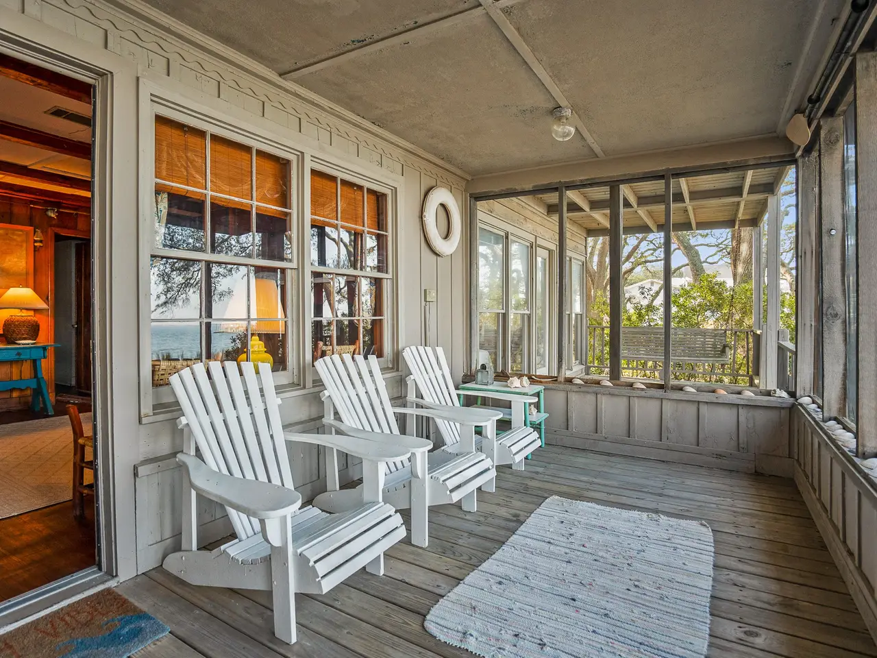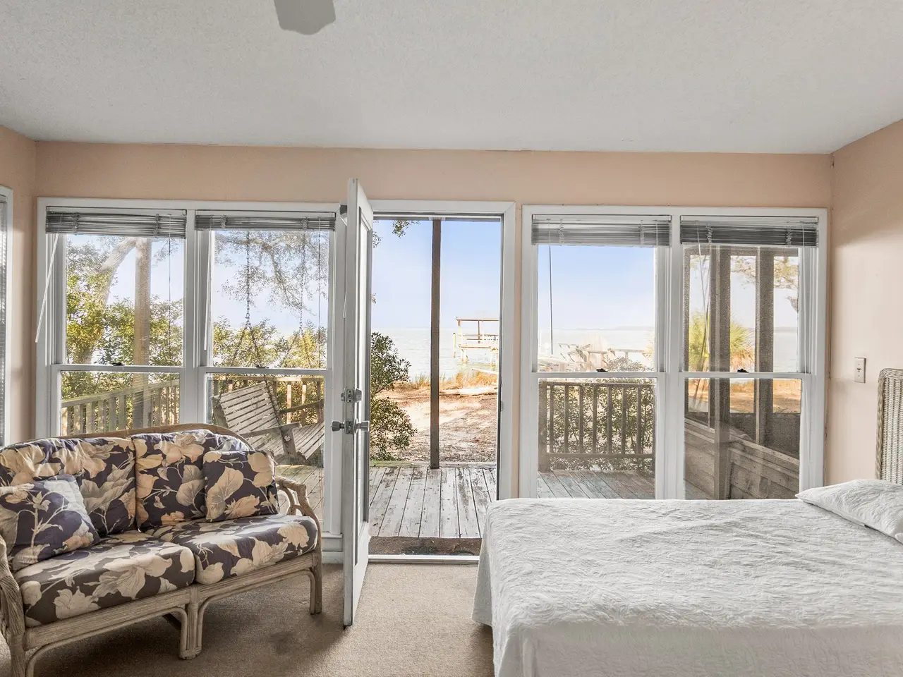 Nestled in a rare coastal setting of Lands End, 45 Bay Pt presents a unique deep water opportunity to own a stunning property with a private dock, complemented by two lots totaling nearly an acre. Positioned on the picturesque southwestern shore of St. Helena Island, this property boasts approximately 250 feet of stunning deep water along the Beaufort River and Port Royal Sound. Although needing some repair, a dock is in place with a pier head roof and boat lift. Oak trees gracefully adorn the landscape, offering shade and beauty, while the incredible water views create an enchanting backdrop that enhances the property's appeal. The residence itself encompasses just over 2,000 square feet. The living and dining areas are illuminated by natural light and framed by breathtaking water views. Each generously sized bedroom has its own en-suite bathroom, providing convenience and privacy. One of the downstairs bedrooms stands out with an entire wall of windows that frame panoramic views of the waterfront, offering direct access to a wooden deck, perfect for enjoying serene mornings or vibrant sunsets. The upstairs bedroom features expansive windows and a private outdoor balcony that overlooks the tranquil waters, making it an ideal spot to unwind and soak in the beauty of nature. The home offers plenty of outdoor living with both wooden decks and a screened porch. Seize this incredible chance to transform this house into your coastal paradise! Let your imagination run wild as you create a serene sanctuary that perfectly captures the essence of seaside bliss! The home is being sold AS-IS, no repairs will be made. This material is based upon information, which we consider reliable, but because it has been supplied by third parties, we cannot represent that it is accurate or complete, and it should not be relied upon as such