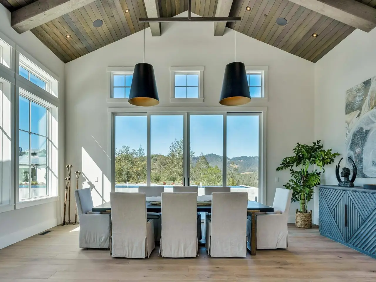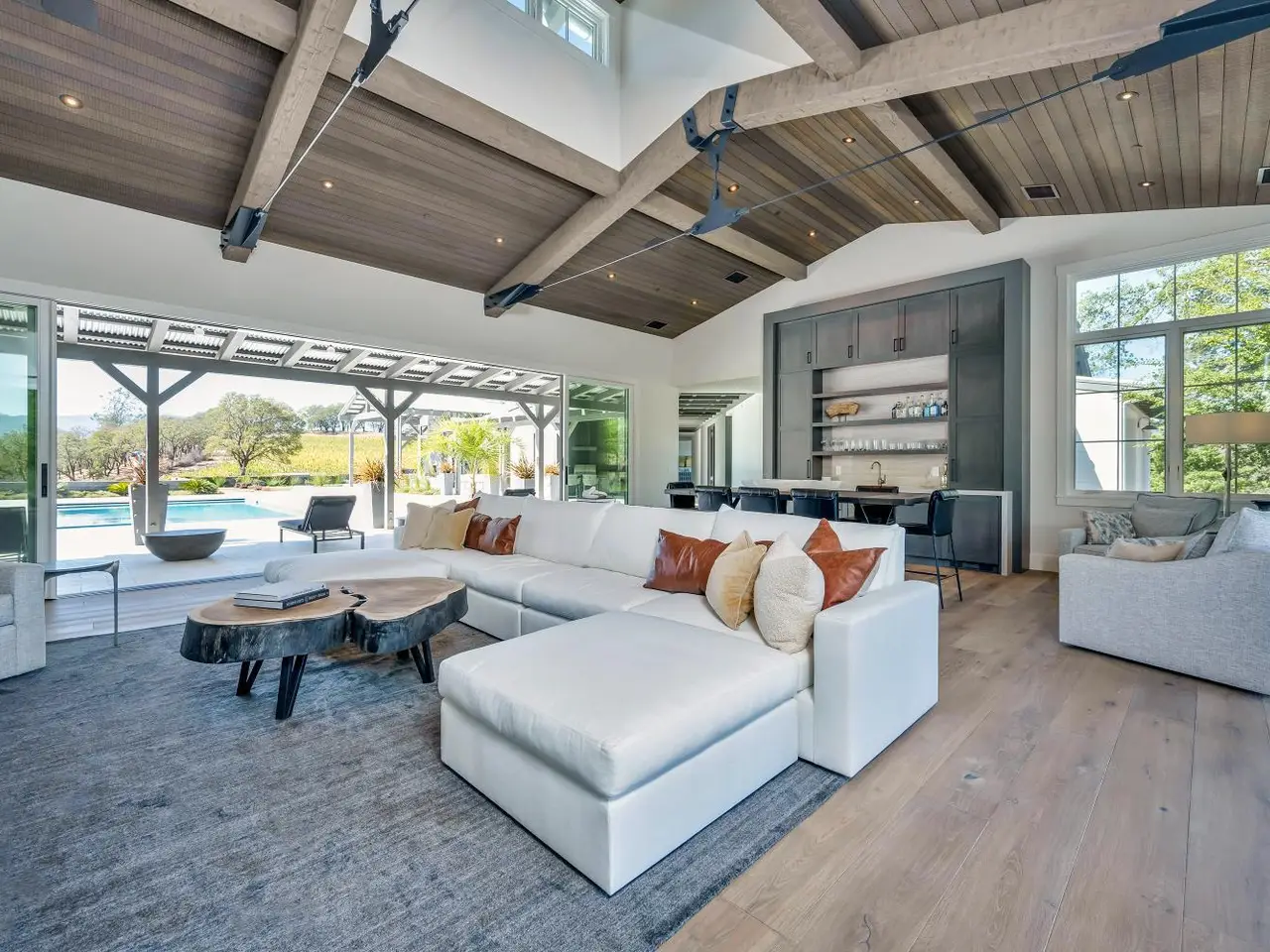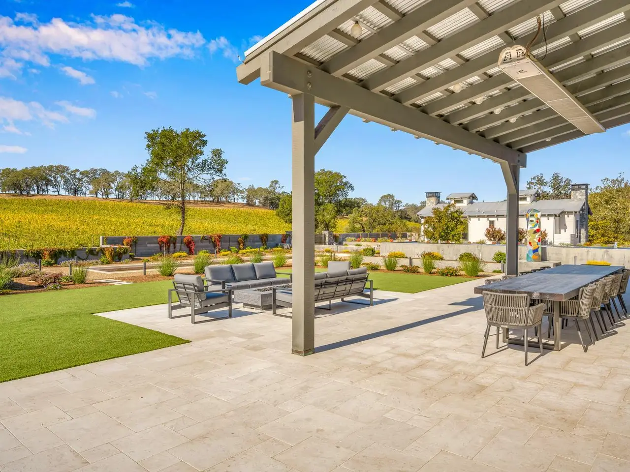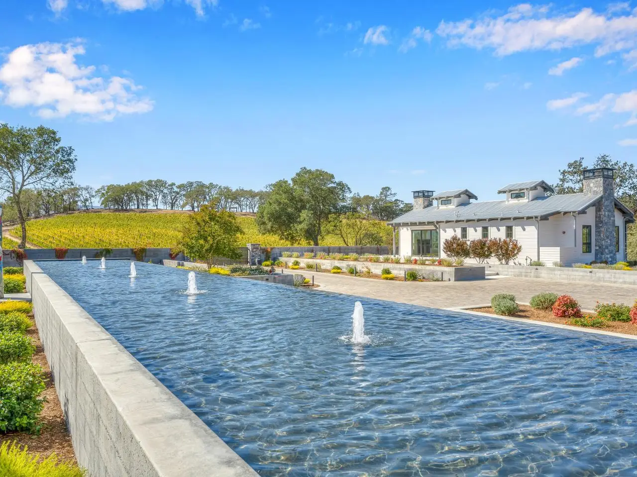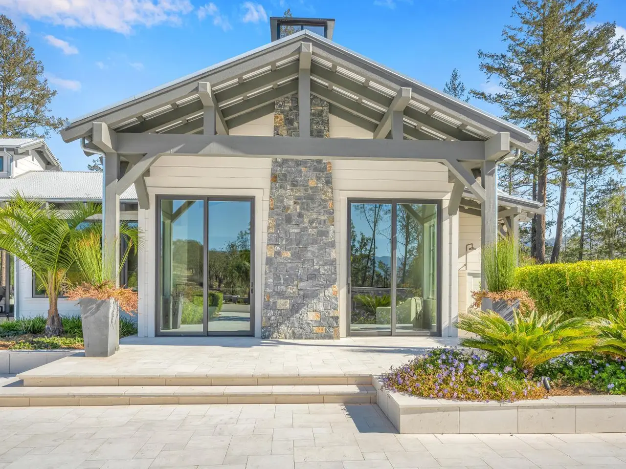A luxury estate set on 8.04 acres across from the famed upper ridge vineyards of Joseph Phelps, this property has been meticulously designed to maximize privacy, capture vineyard vistas, and harmonize with the surrounding topography. The 7,920 sq. ft. main residence showcases four bedrooms and is constructed with the highest quality materials and finishes. Inside, the home features a dramatic great room, a true chef's kitchen, office/study, walk-in wine cellar, media lounge, and a primary suite with its own private entry lounge. A secondary 1,200 sq. ft. dwelling offers two bedrooms, a full kitchen, living room, and covered patios at both the front and back, providing ideal accommodations for guests. Outdoor living is equally compelling, with more than 2,600 sq. ft. of covered space designed for seamless indoor/outdoor living. Expansive limestone patios lead to a fully equipped outdoor kitchen with pizza oven, resort-style pool and spa, two firepits, an outdoor fireplace, and a bocce courtall thoughtfully crafted for both intimate gatherings and large-scale entertaining.