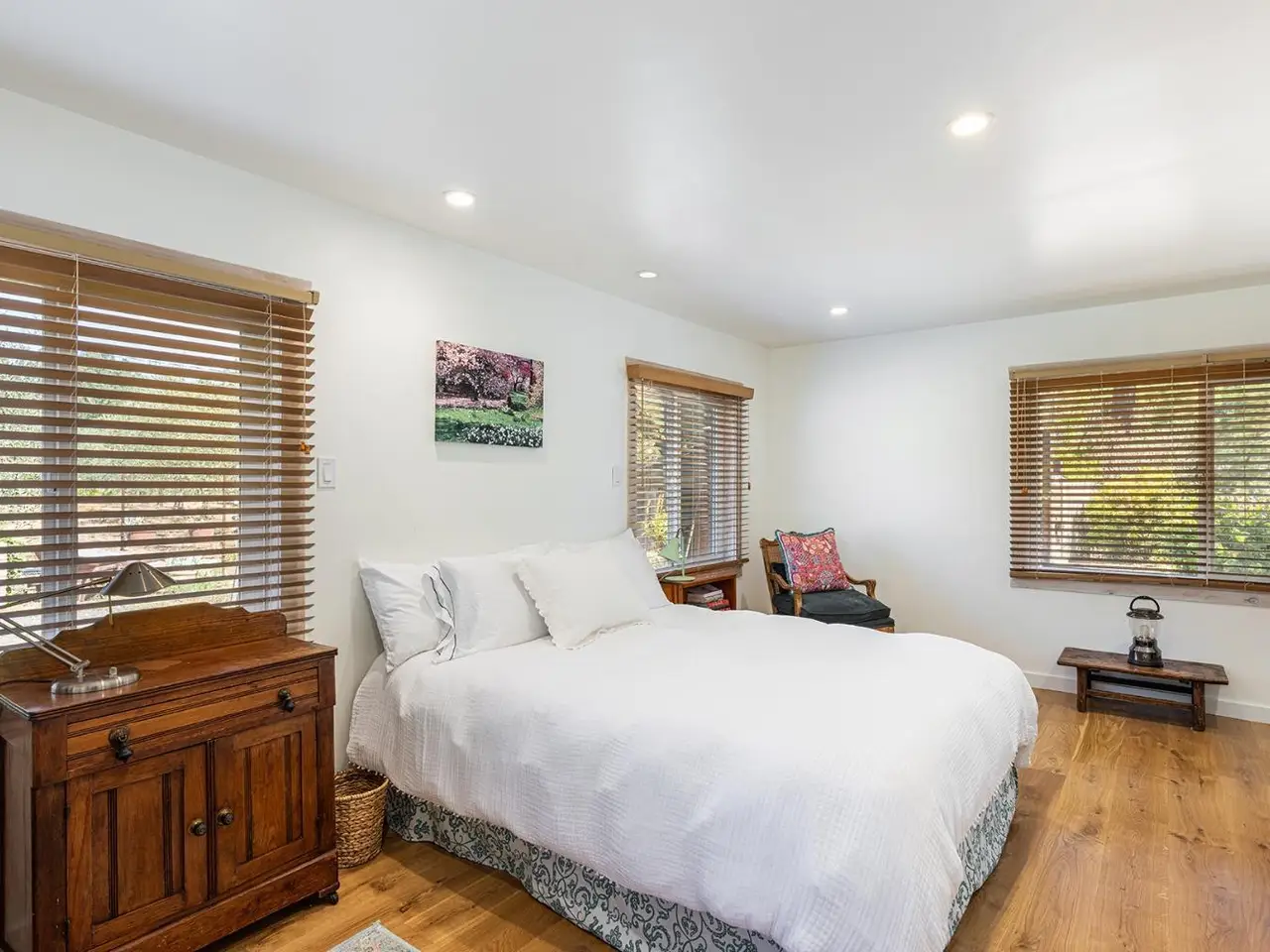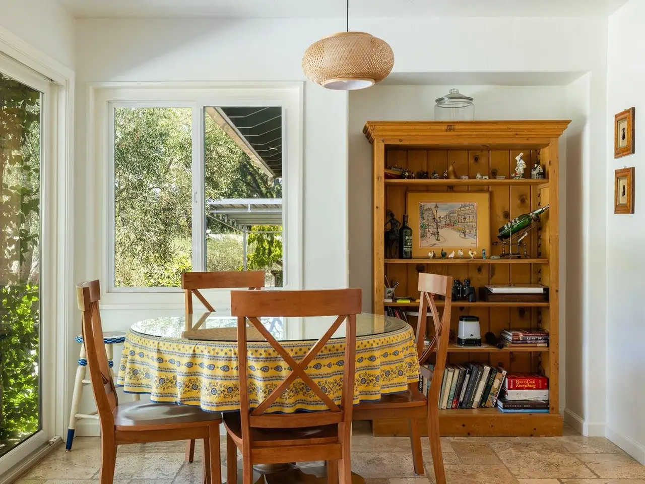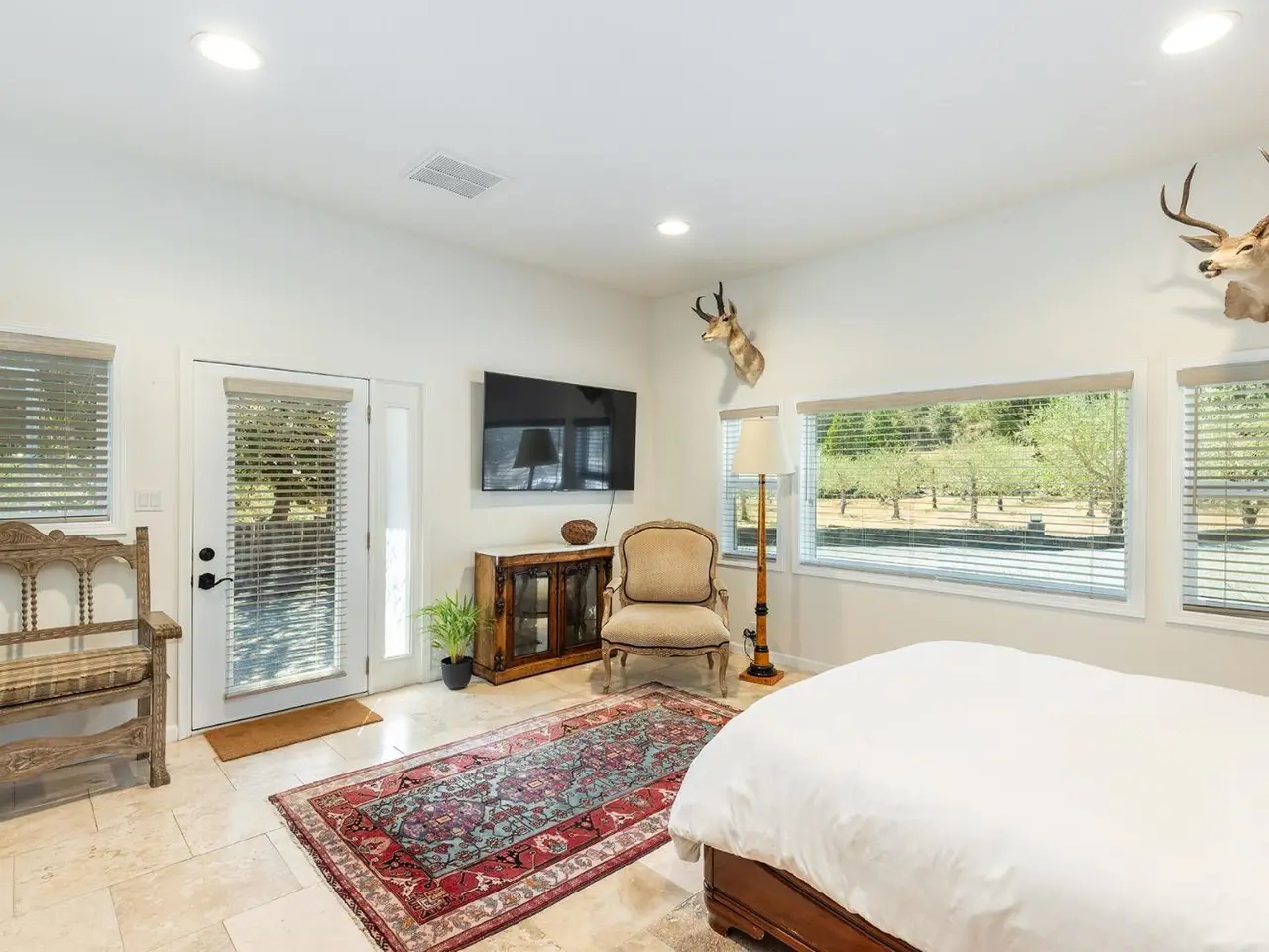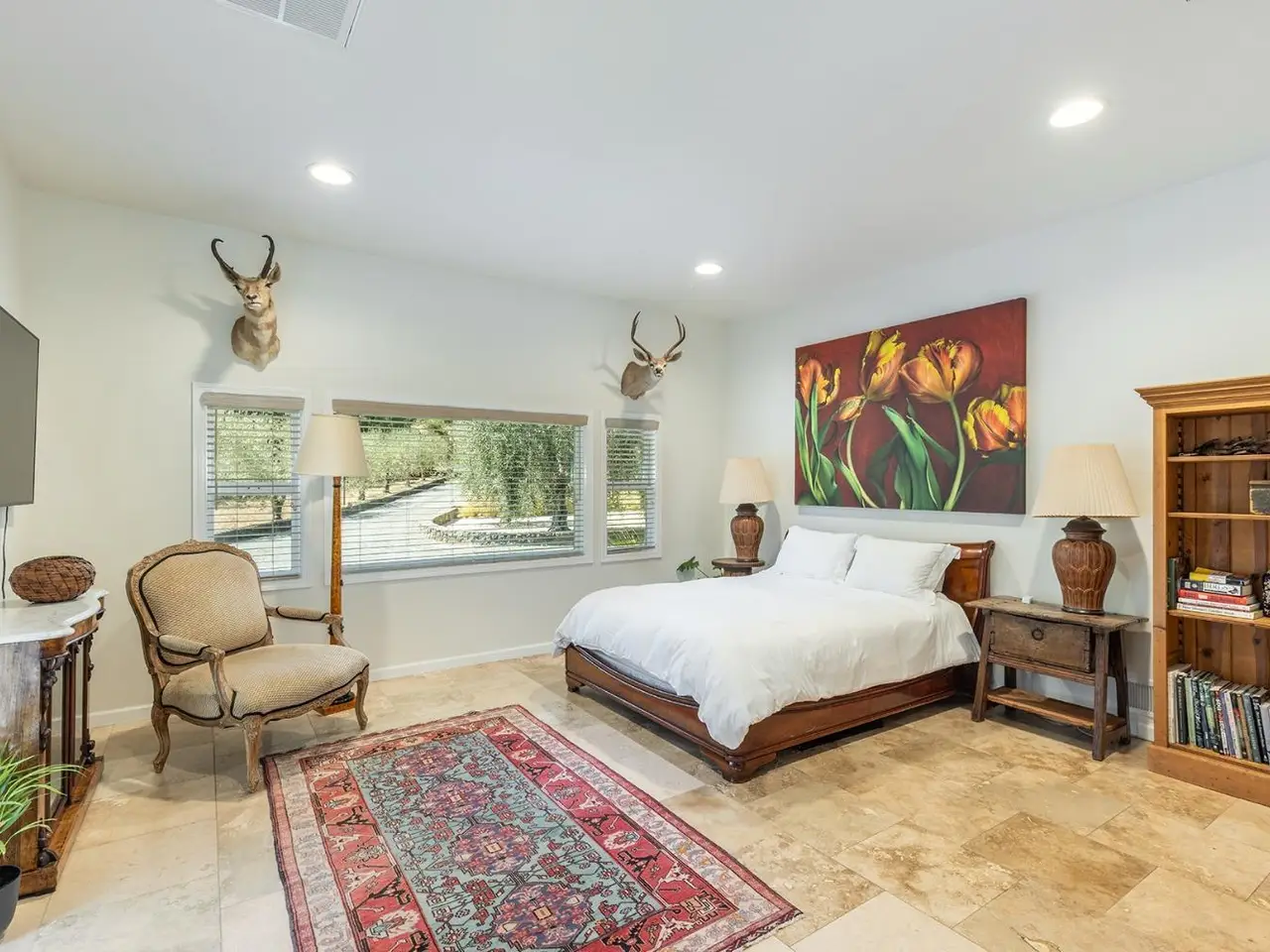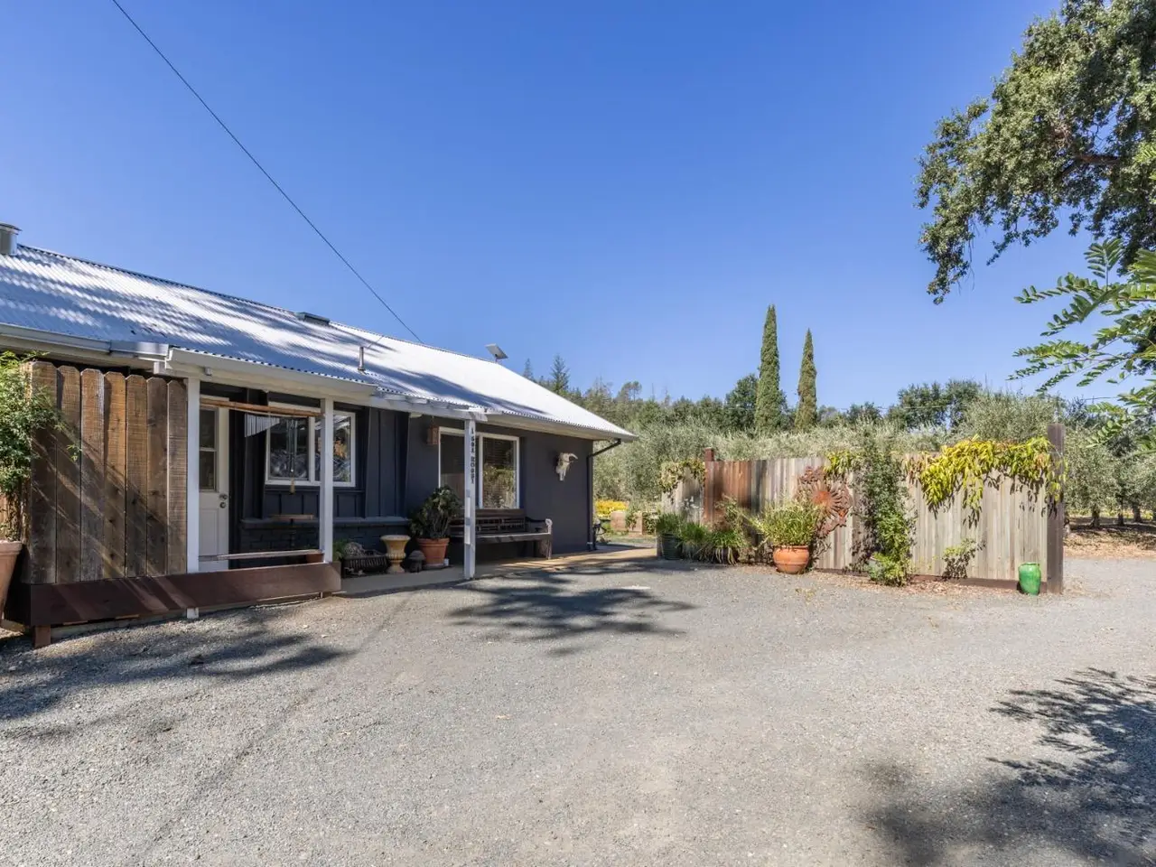 Nestled in a serene landscape featuring over 200 mature olive trees, this updated single-level main house plus additional single level 2nd dwelling and additional structures sit on a private 2.57 acre oasis. Just 4 miles from St. Helena and 2.5 miles to stunning Lake Hennessey, this Napa Valley compound exudes charm and tranquility. The main residence includes 2 bedrooms and 2.5 bathrooms within approximately 2,110 square feet, offering a spacious and inviting layout. Rustic hardwood and large-format stone floors enhance the interior, while expansive sliding patio doors seamlessly connect indoor and outdoor spaces. The kitchen features a quaint breakfast nook, granite countertops, high-end appliances, bar-top seating, and a large walk-in pantry, making it both functional and stylish. A private flex room with a separate entrance provides flexibility, ideal for a third bedroom, office, craft room, or gym. Step outside to discover a truly special outdoor space, complete with a covered back patio perfect for gatherings. Enjoy breathtaking views of the manicured olive orchard, neighboring vineyards and mountains beyond. Access the charming 910+/- square foot guest house and 805+/- sf storage building near the back of the property via a gravel pathway or a separate entrance off Rossi Rd.