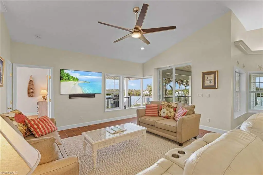 This home has it all. It sits on a gorgeous interior bay with big views. You can safely keep your boats behind your house. It has a large dock with space for four boats with two boat lifts. There is a large backyard with a pool and spa with a paver patio. Below the home is a large carport for your cars and toys, plus almost 2300 square feet of storage, workshop, craft room, or whatever. Take a look at the interior photos. There is too much to mention, but some of the highlights are a completely remodeled modern kitchen with granite countertops, two islands, and all new appliances, a separate living room and family room, a pass-through fireplace between the family room and primary bedroom, large primary bath with dual sinks and separate tub and shower, home office/library, all paver driveway and patios, huge porches front and rear (sunset views), and much more. The photos do a much better job of describing this home than anyone can. Here are more details: new kitchen-2017; new pool and pool deck-2021; new seawall-2020; replace front porch decking and railing-2018; replace back porch decking and railing-2019; new metal roof-2021; resod backyard-2021; redo guest bathroom tile, counter and cabinets-2020; new recessed lighting-2019; new solar fans in attic-2018; new office cabinets and countertop-2020; new electric at dock-2021; new hurricane windows, front of house-2018; new gutters-2017&2021; new fence-2021; new primary bathroom cabinets, lights, vanity counter, and shower door-2021-2022; new carpet-2022; new hurricane sliders-2023; new floor in sewing room-2023; new shelving in sewing room-2023; new front gutters-2023; pool salt sell replaced-2023; pool pump replaced-2022; new dock pilings and deck-2024; new washer-2020; new dryer-2022; new two-zone lawn sprinkler-2022; carport floor epoxied-2024. Make your appointment today to see this gem.