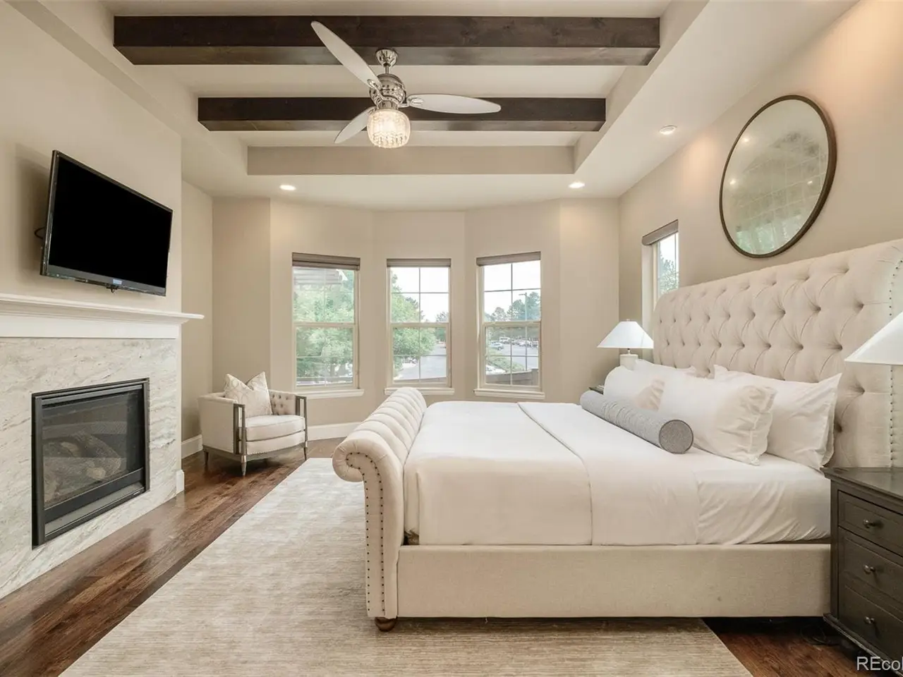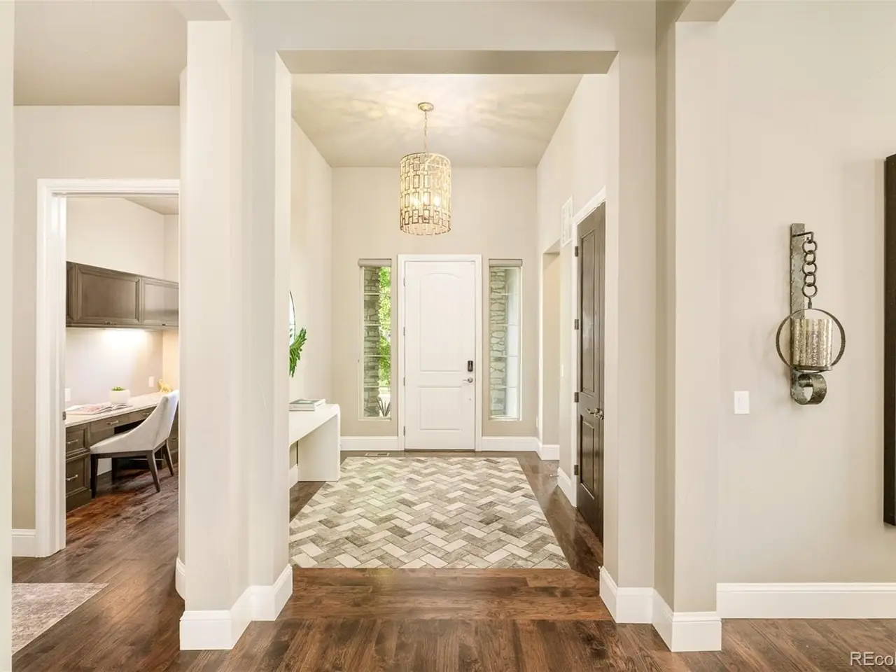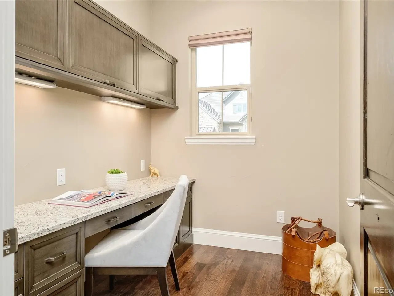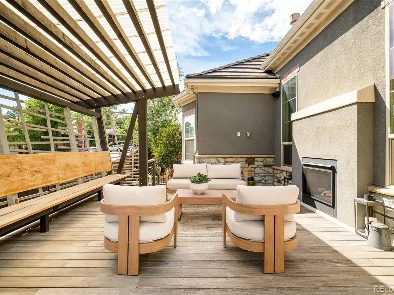 Discover this stunning three-bedroom, four-bathroom home in the highly sought-after Marvella community, where luxury living meets modern convenience. With designer finishes throughout and a thoughtful floor plan, this home is truly move-in ready. The main level showcases a spacious primary suite complete with a spa-like five-piece bathroom and an impressive custom walk-in closet featuring built-ins and a center island. For added convenience, the primary closet connects directly to the main floor laundry room, outfitted with abundant cabinetry and storage. The inviting living room and chef's kitchen form the heart of the home, complemented by both a breakfast nook and a formal dining room. The secondary bedroom on the main level features an en-suite bathroom and walk-in closet for your guest's convenience. A dedicated main-level office makes working from home effortless. Step outside to a private backyard retreat with a custom bench and a cozy double-sided fireplace for year-round enjoyment. Downstairs, the finished basement is an entertainer's dream, which is ideal for a game room or media space. It seamlessly flows into a wet bar and tasting room, complete with a striking wall of wine racks for your collection. This level also offers a bedroom, bathroom, and a versatile oversized bonus room with built-in cabinetry - perfect for a gym, playroom, or creative space. Nestled in a prime Centennial location, this home provides easy access to top-rated schools, shopping, dining, and recreational amenities.