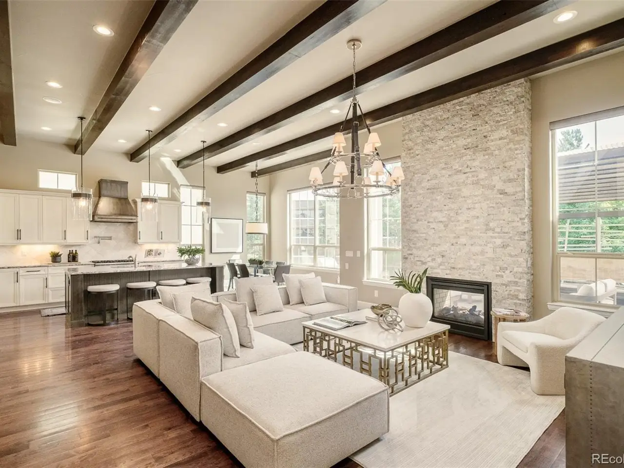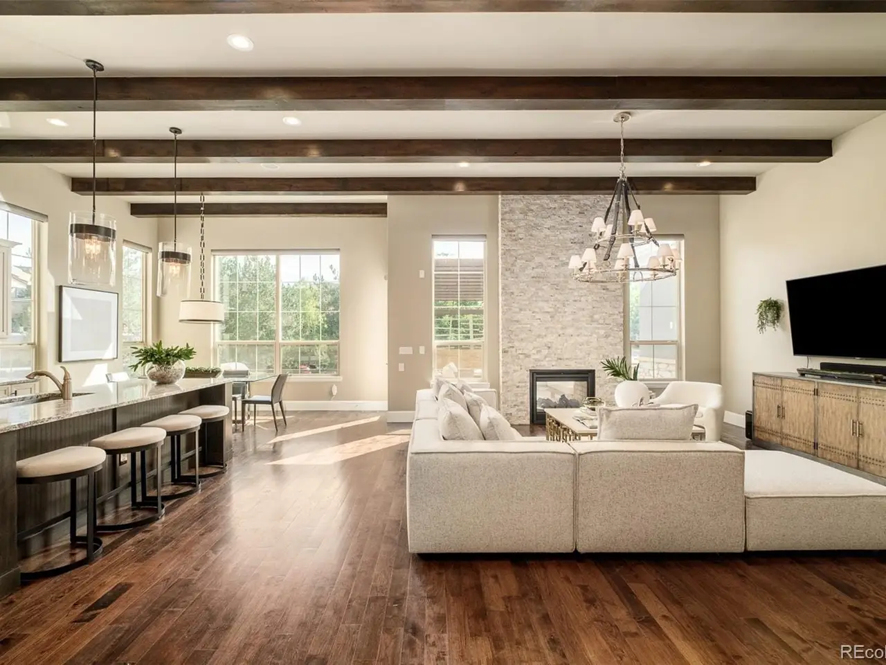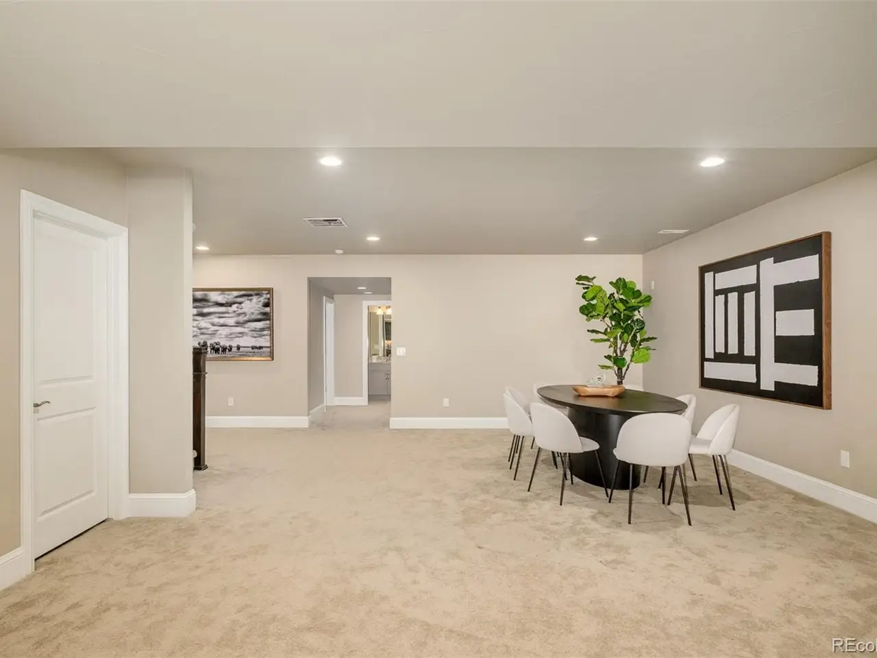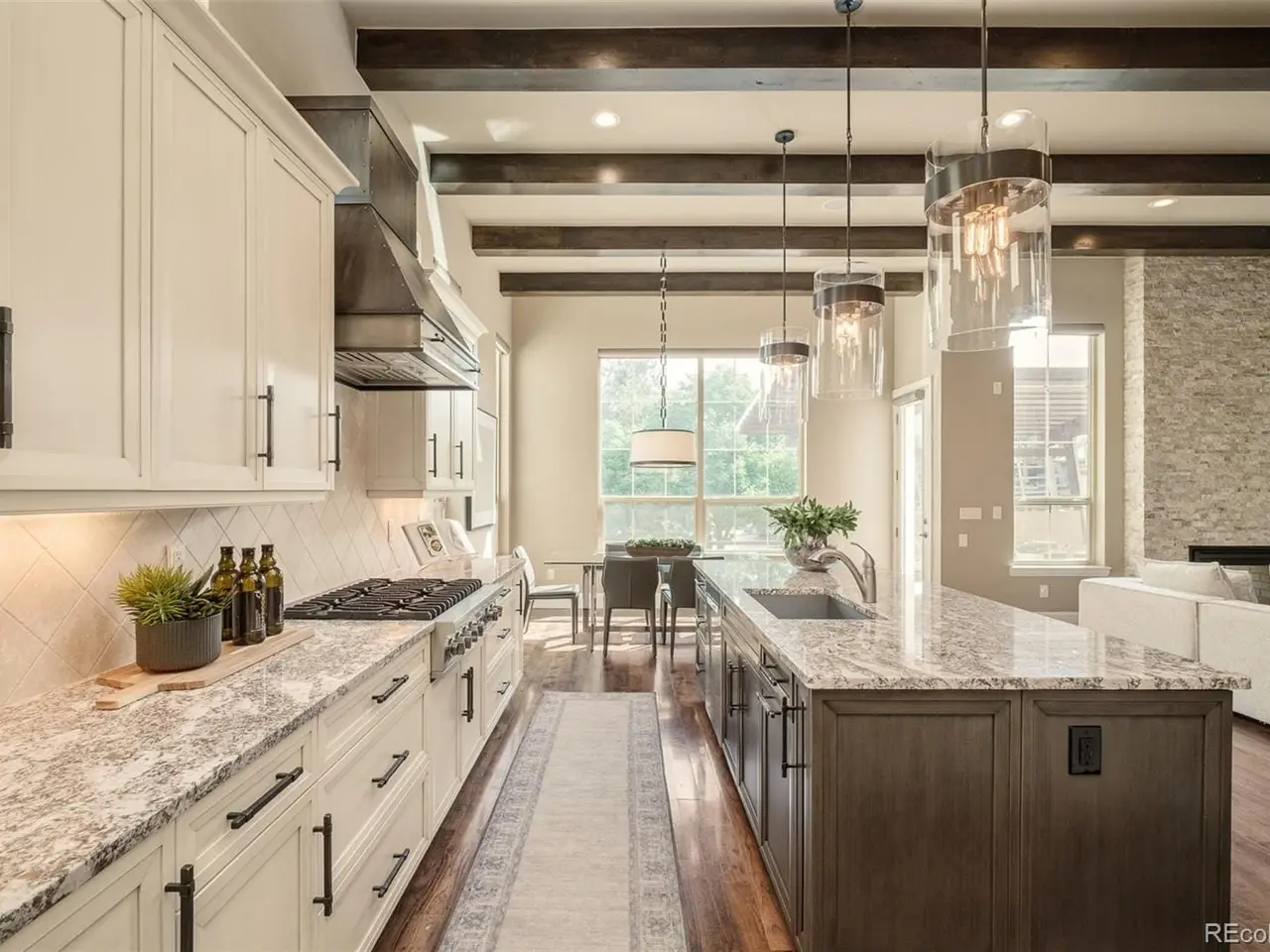 Discover this stunning three-bedroom, four-bathroom home in the highly sought-after Marvella community, where luxury living meets modern convenience. With designer finishes throughout and a thoughtful floor plan, this home is truly move-in ready. The main level showcases a spacious primary suite complete with a spa-like five-piece bathroom and an impressive custom walk-in closet featuring built-ins and a center island. For added convenience, the primary closet connects directly to the main floor laundry room, outfitted with abundant cabinetry and storage. The inviting living room and chef's kitchen form the heart of the home, complemented by both a breakfast nook and a formal dining room. The secondary bedroom on the main level features an en-suite bathroom and walk-in closet for your guest's convenience. A dedicated main-level office makes working from home effortless. Step outside to a private backyard retreat with a custom bench and a cozy double-sided fireplace for year-round enjoyment. Downstairs, the finished basement is an entertainer's dream, which is ideal for a game room or media space. It seamlessly flows into a wet bar and tasting room, complete with a striking wall of wine racks for your collection. This level also offers a bedroom, bathroom, and a versatile oversized bonus room with built-in cabinetry - perfect for a gym, playroom, or creative space. Nestled in a prime Centennial location, this home provides easy access to top-rated schools, shopping, dining, and recreational amenities.