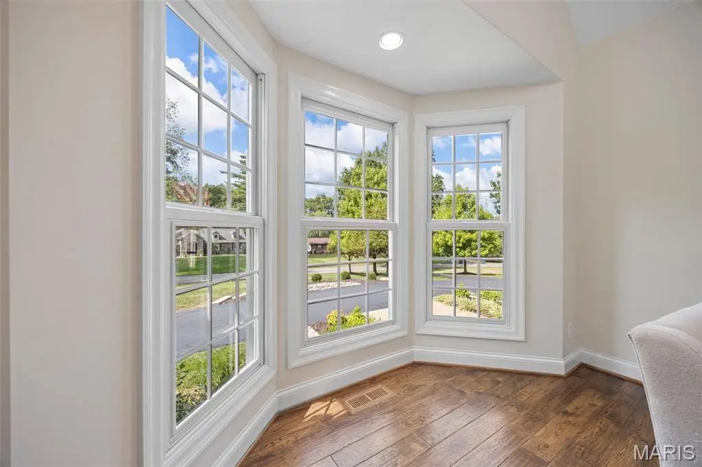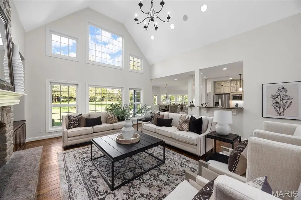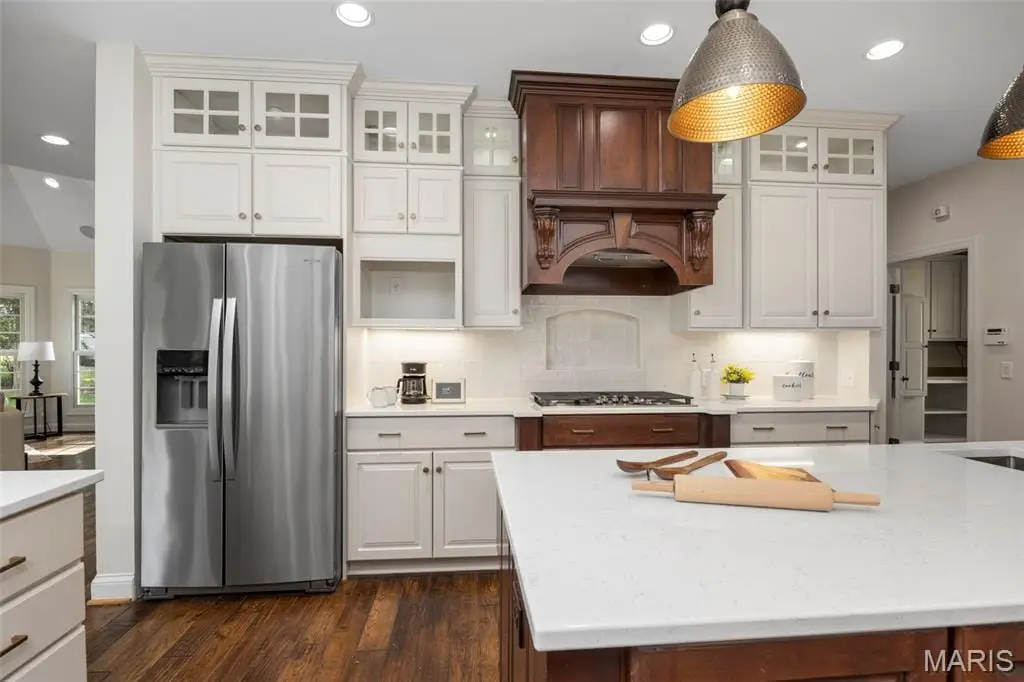 This exceptional estate masterfully blends timeless elegance with modern comforts on a pristine, professionally landscaped one-acre lot. Mature trees and lush gardens frame the circle drive, while a side-entry three-car garage with carriage-style doors offers both charm and convenience. Inside, a dramatic two-story foyer sets the tone, leading to formal dining and a soaring great room with floor-to-ceiling stone fireplace, custom built-ins, and a breathtaking wall of windows that flood the home with natural light. The newly remodeled chefs kitchen is a true centerpiece, featuring quartz surfaces, bespoke cabinetry, double ovens, a five-burner gas cooktop, and a butler’s wet bar - ideal for hosting in style. Gather in the hearth room with its inviting fireplace or in the breakfast room, where serene backyard views create a perfect start to the day. The main-level primary suite is a private sanctuary, complete with a sitting area, a spa-inspired bath, and a custom-designed walk-in closet. Two additional bedrooms with a Jack & Jill bath share this level, along with a spacious home office, a designer laundry suite, and thoughtful built-ins including mudroom cubbies with direct garage access. Upstairs, two more bedrooms and a full bath provide versatility for family or guests, with a balcony overlooking the great room. The finished lower level is an entertainers dream: a full wet bar with icemaker and beverage center, a cozy fireplace, billiards and recreation areas, and a full bath - all with convenient walk-up access. Additional luxuries include extensive millwork and casings throughout, three-zone high-efficiency HVAC, whole-house audio, central vacuum, security system, and future-ready features such as basement laundry rough-in. This residence is more than a home – it’s a lifestyle of sophistication, privacy, and enduring quality. (Kitchen and Primary Suite have been remodeled)
